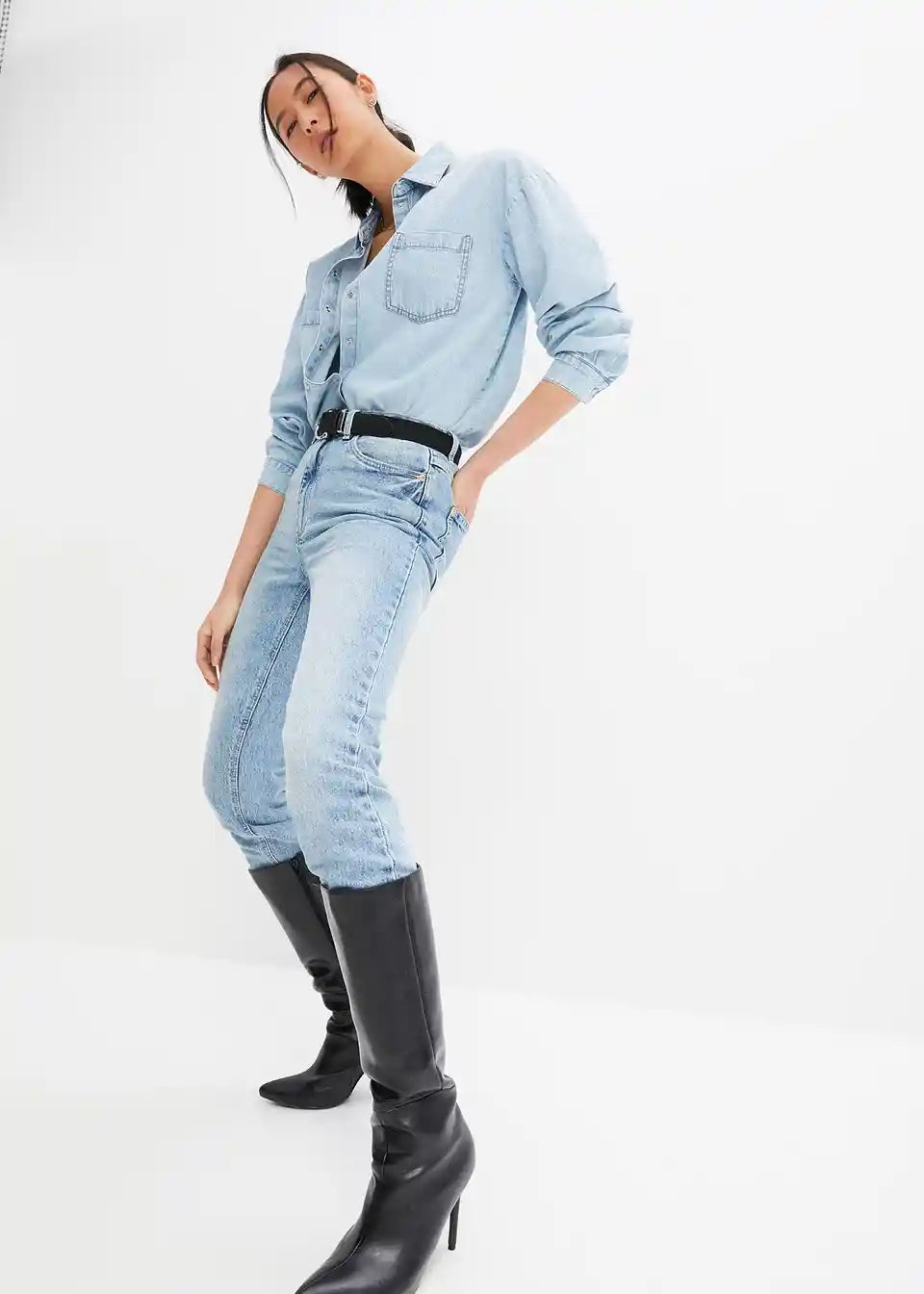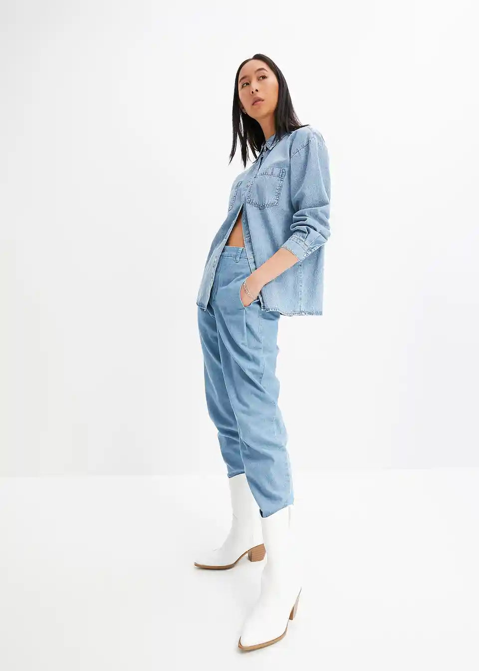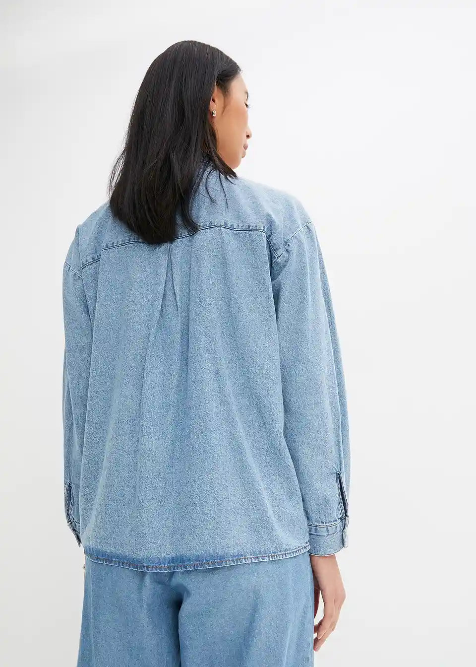 Ohlapna Jeans srajca z žepi in Kent ovratnikom