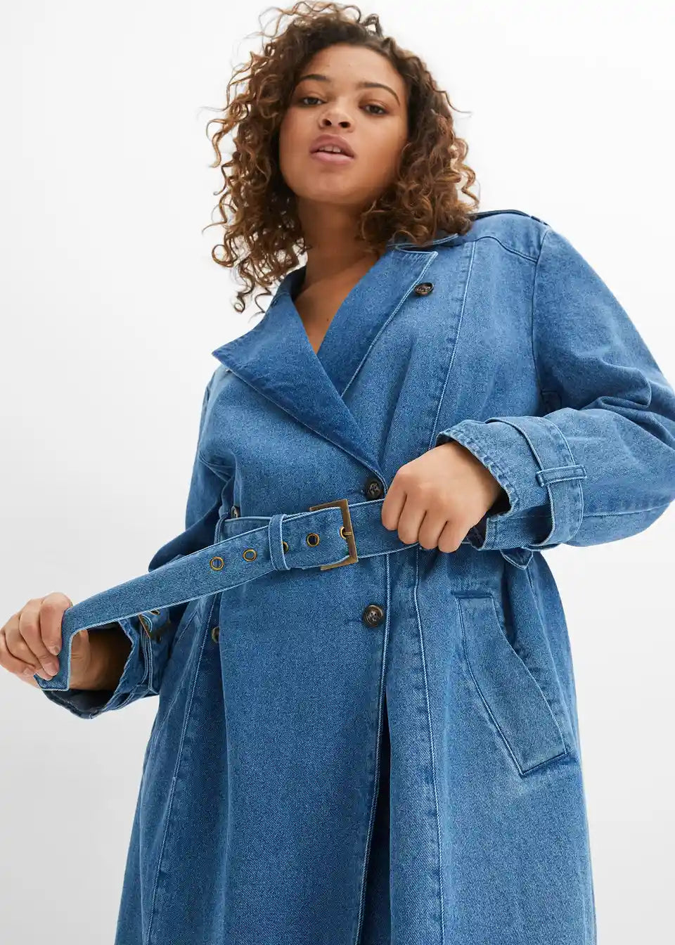 Trendovski Jeans Trenčkot z Pasom