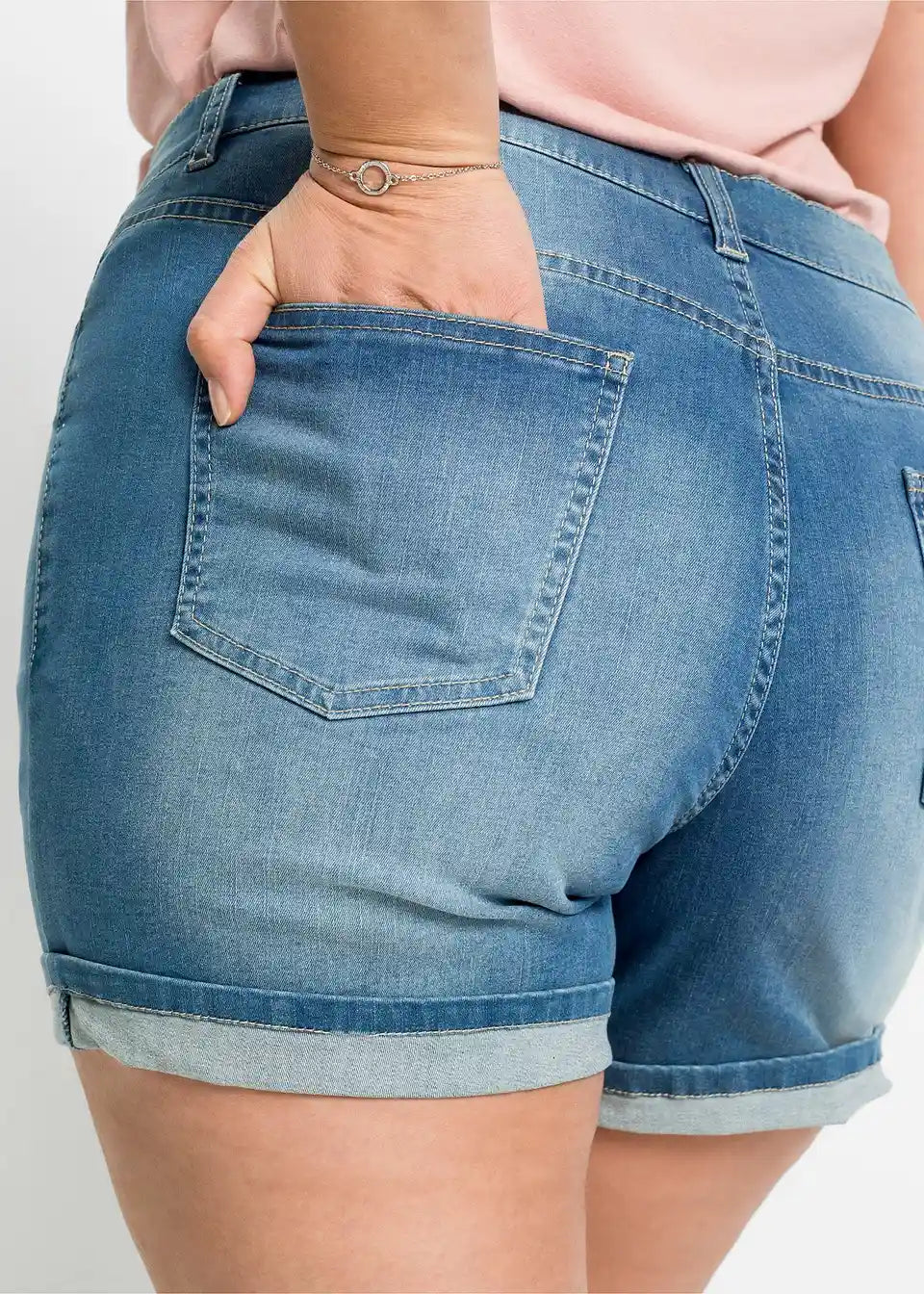 Kratke kavbojke s srednje visokim pasom z okraskom