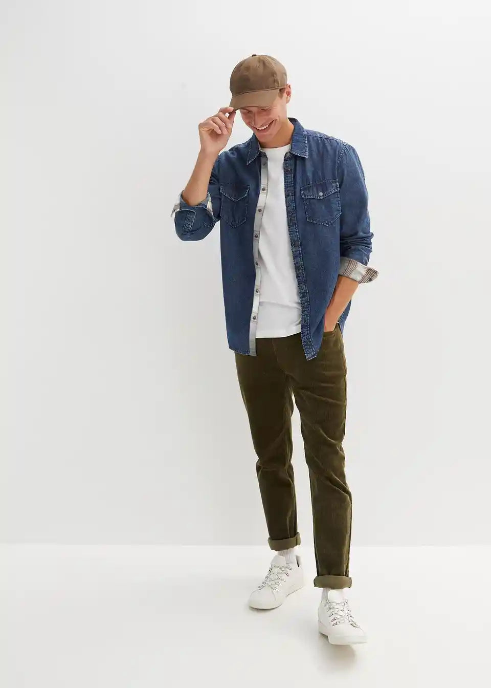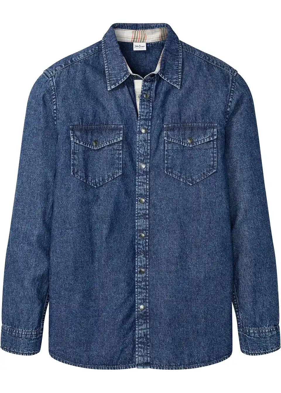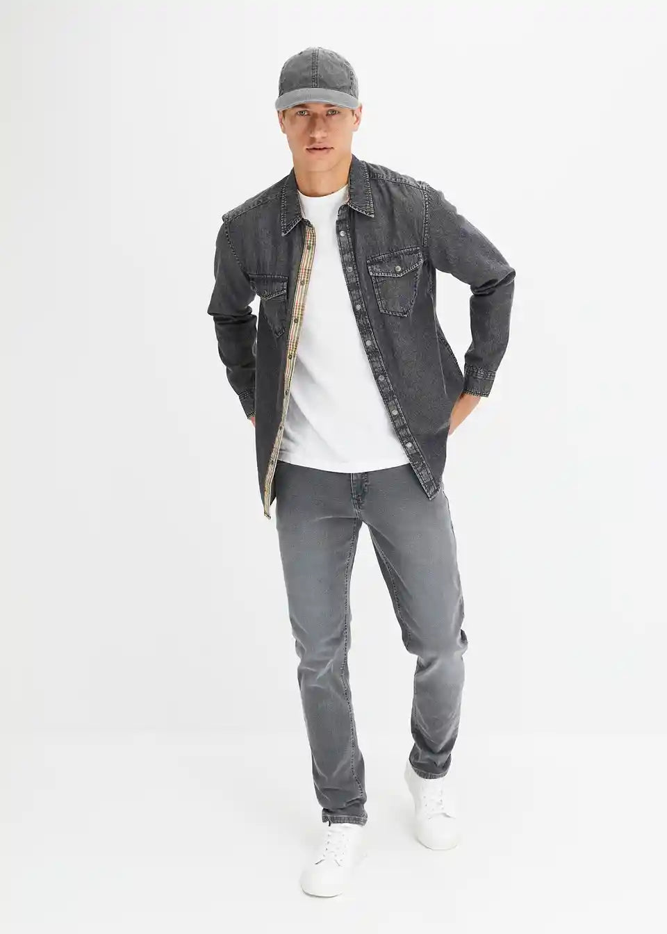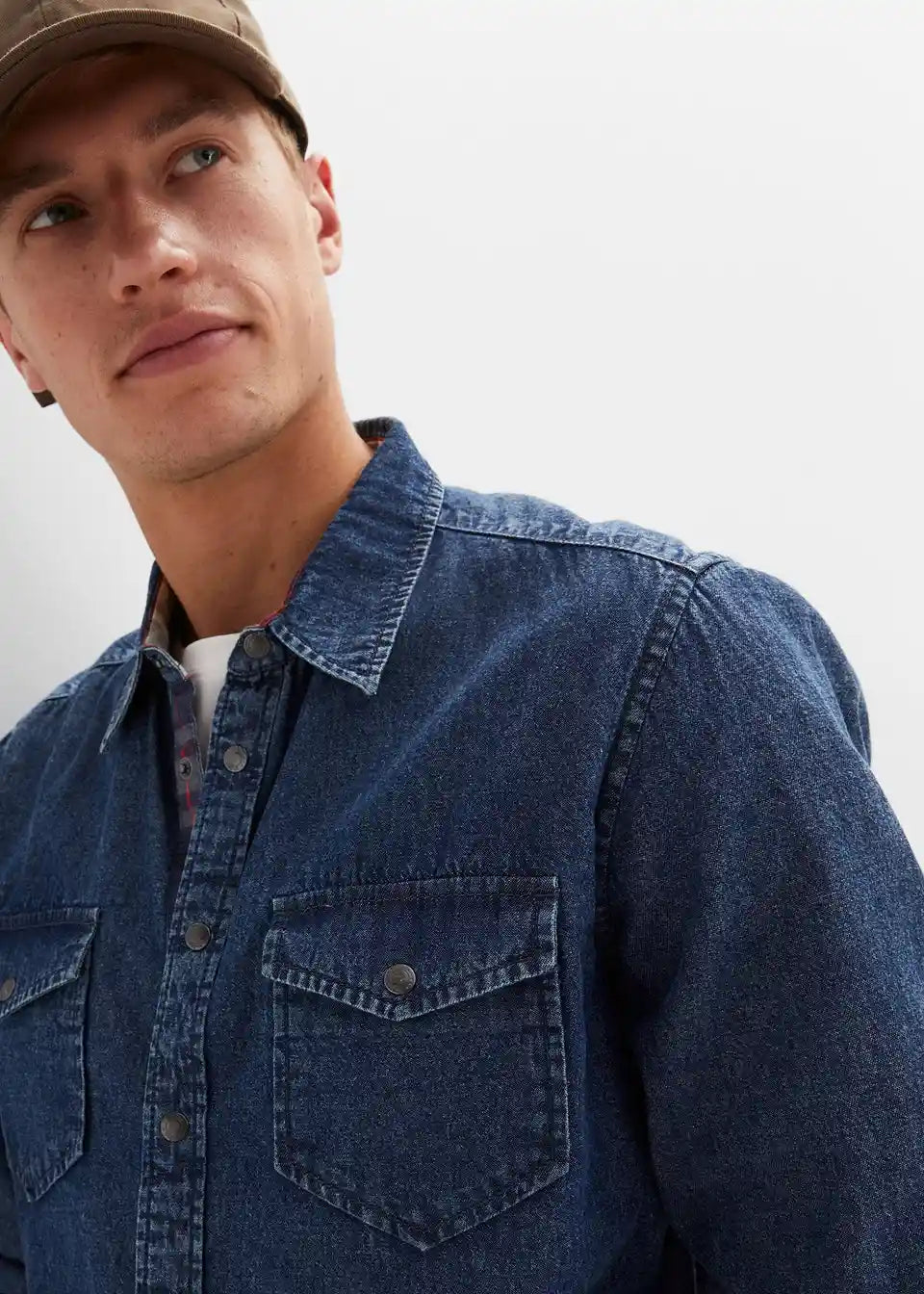 Moderna jeanssrajca s kontrastnimi detajli na notranji manšeti in notranjem ovratniku