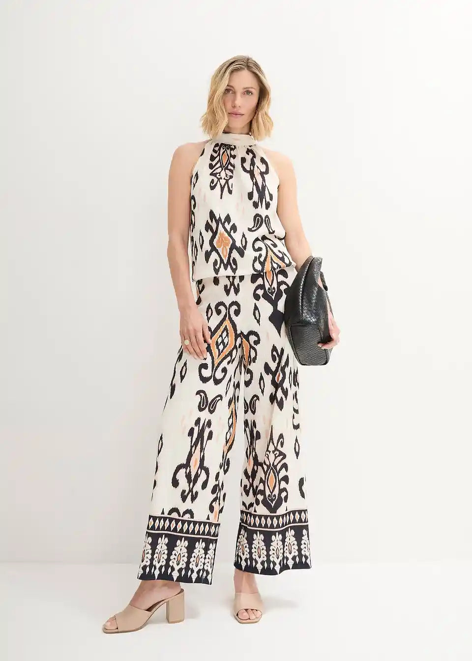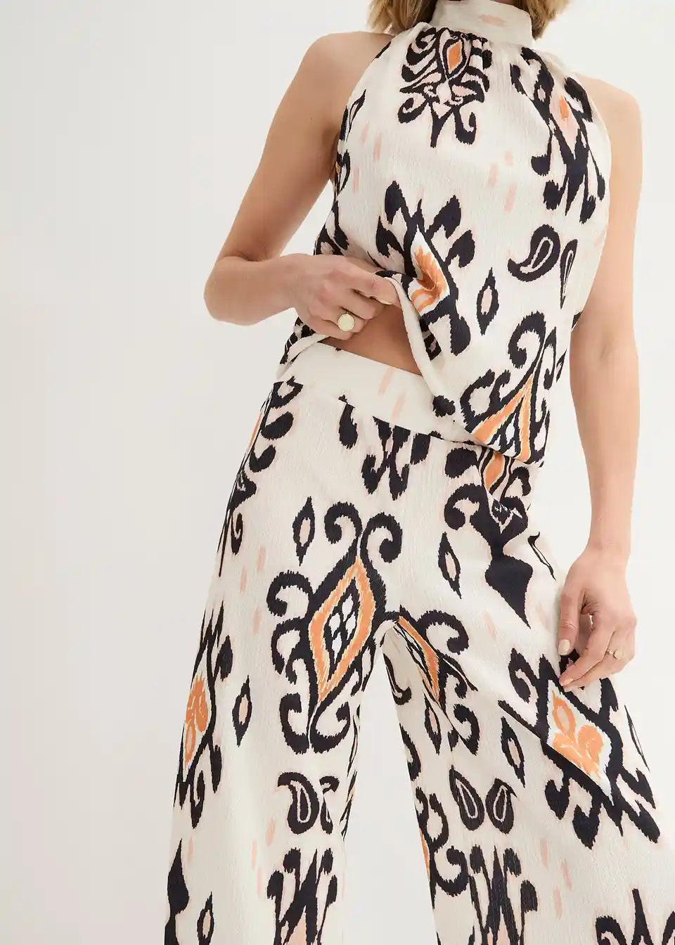 Eleganter Jersey hlače z ornamentnim potiskom