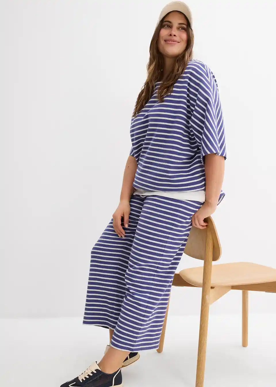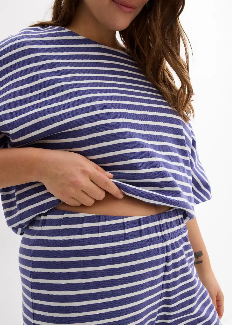 Bombažne hlače z visokim pasom. Ohlapen model z elastičnim pasom v 7/8 dolžini.