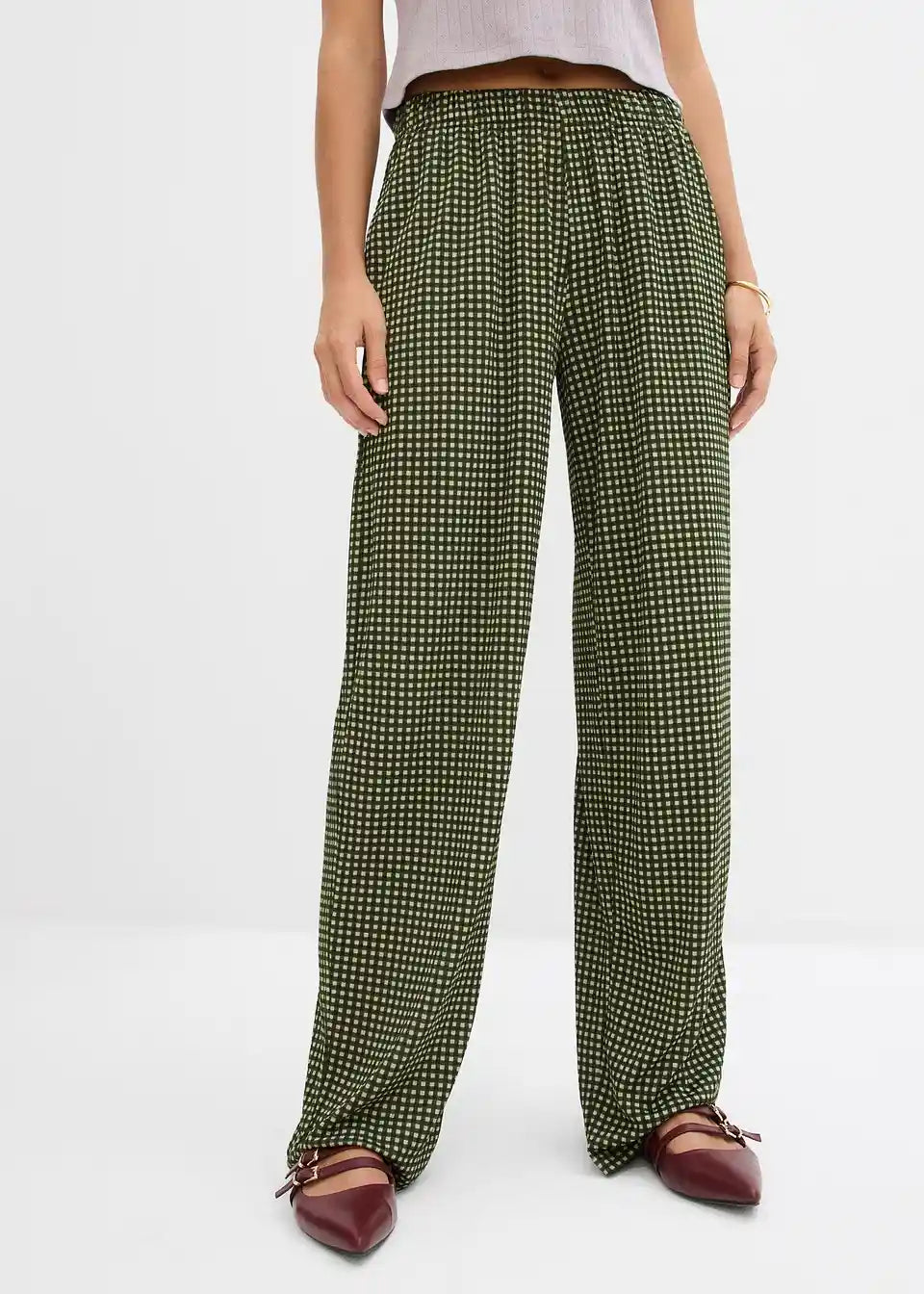 Ležerne jersey hlače z vzorcem Vichy