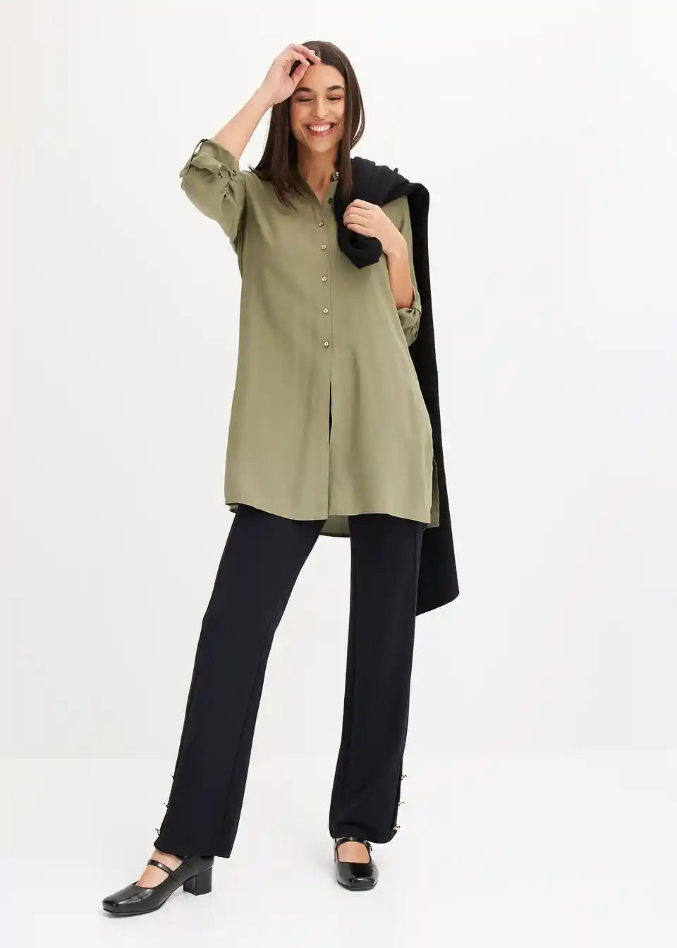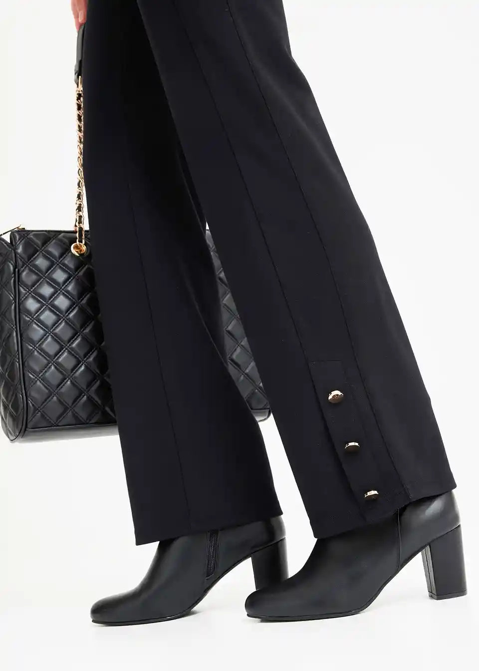 Elegantne Jersey hlače z okrasnimi gumbi na hlačnici