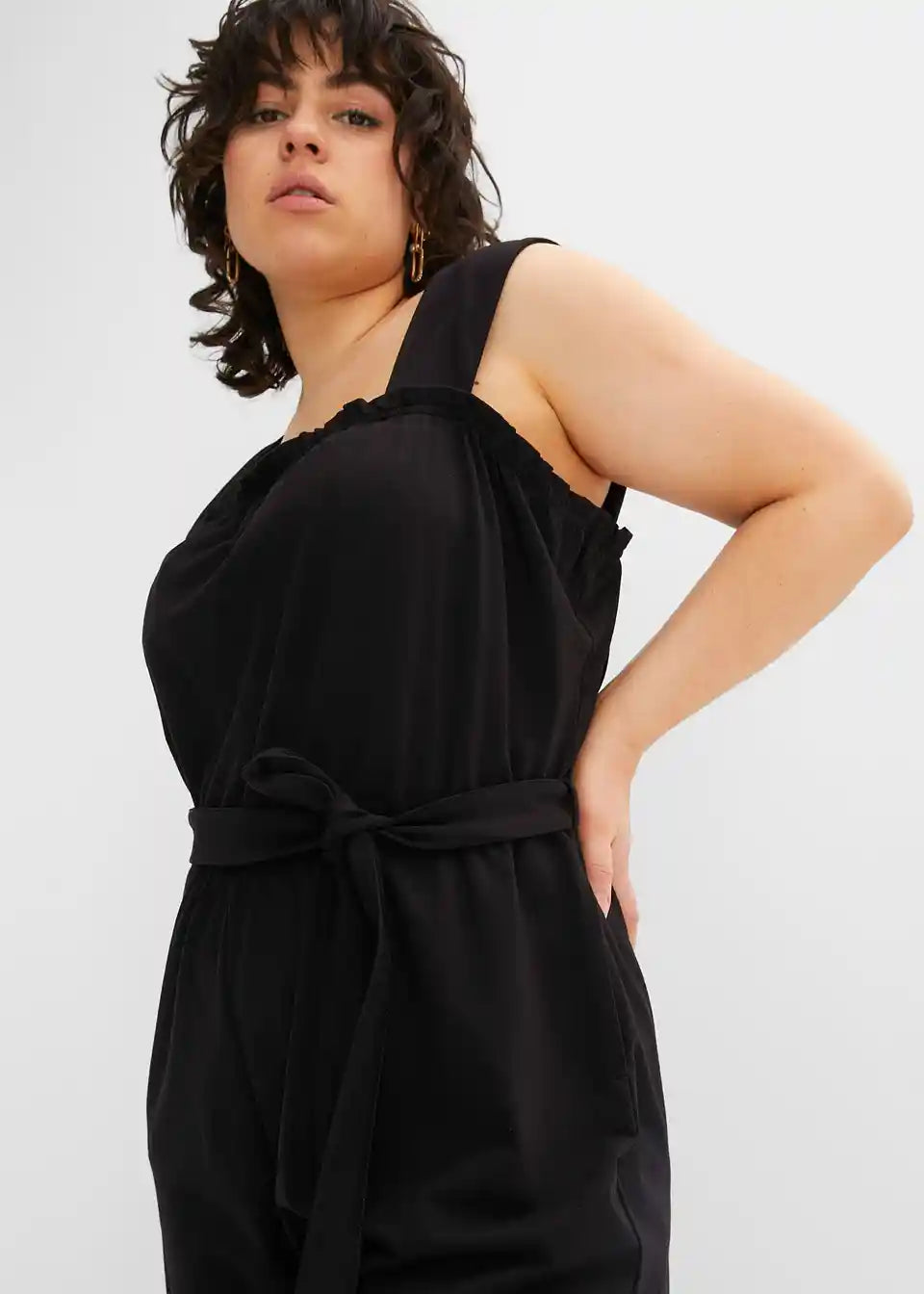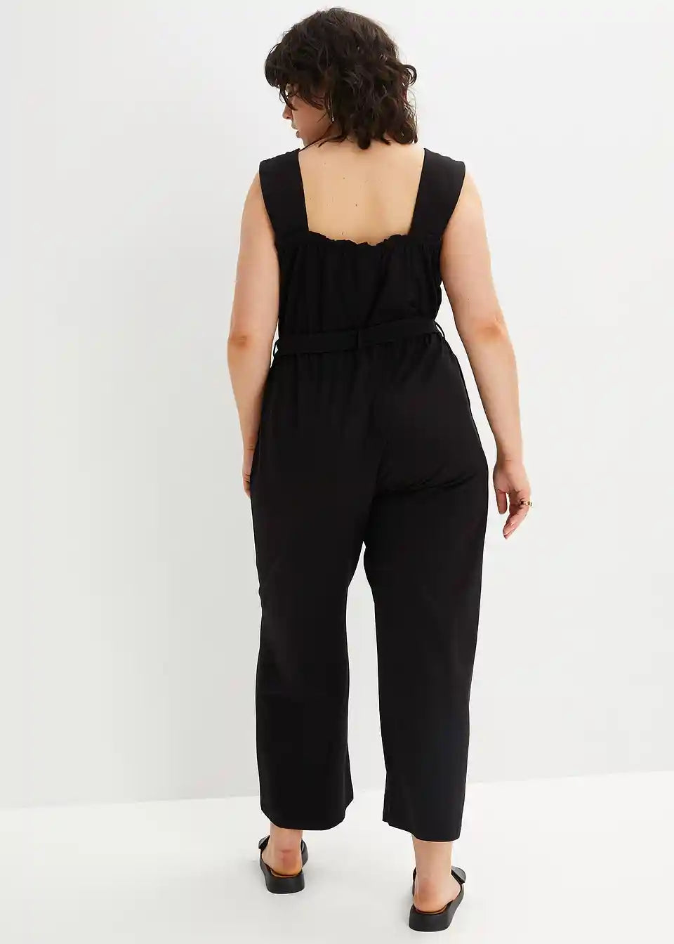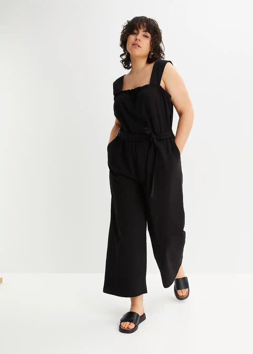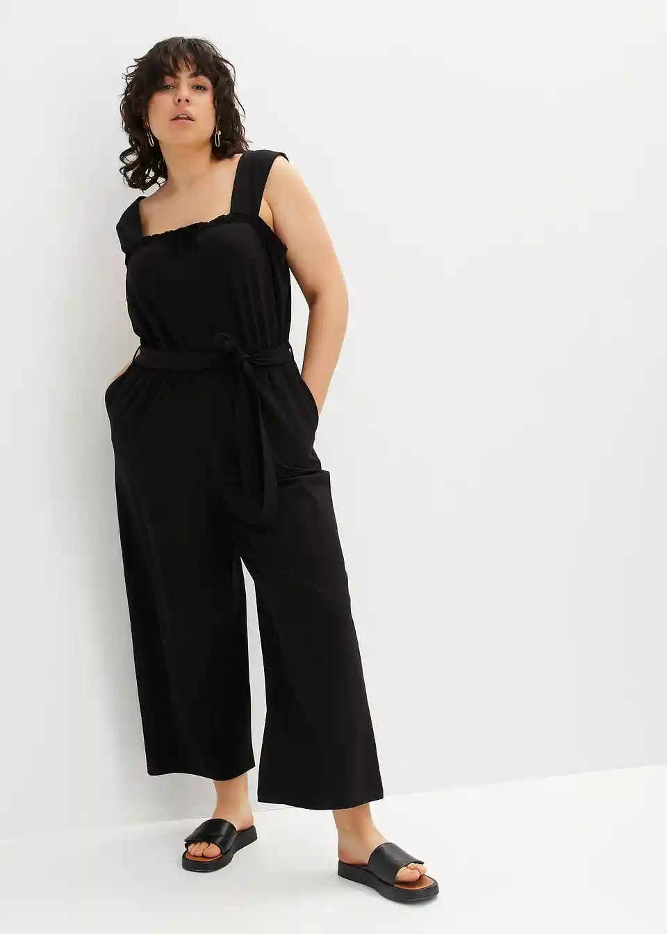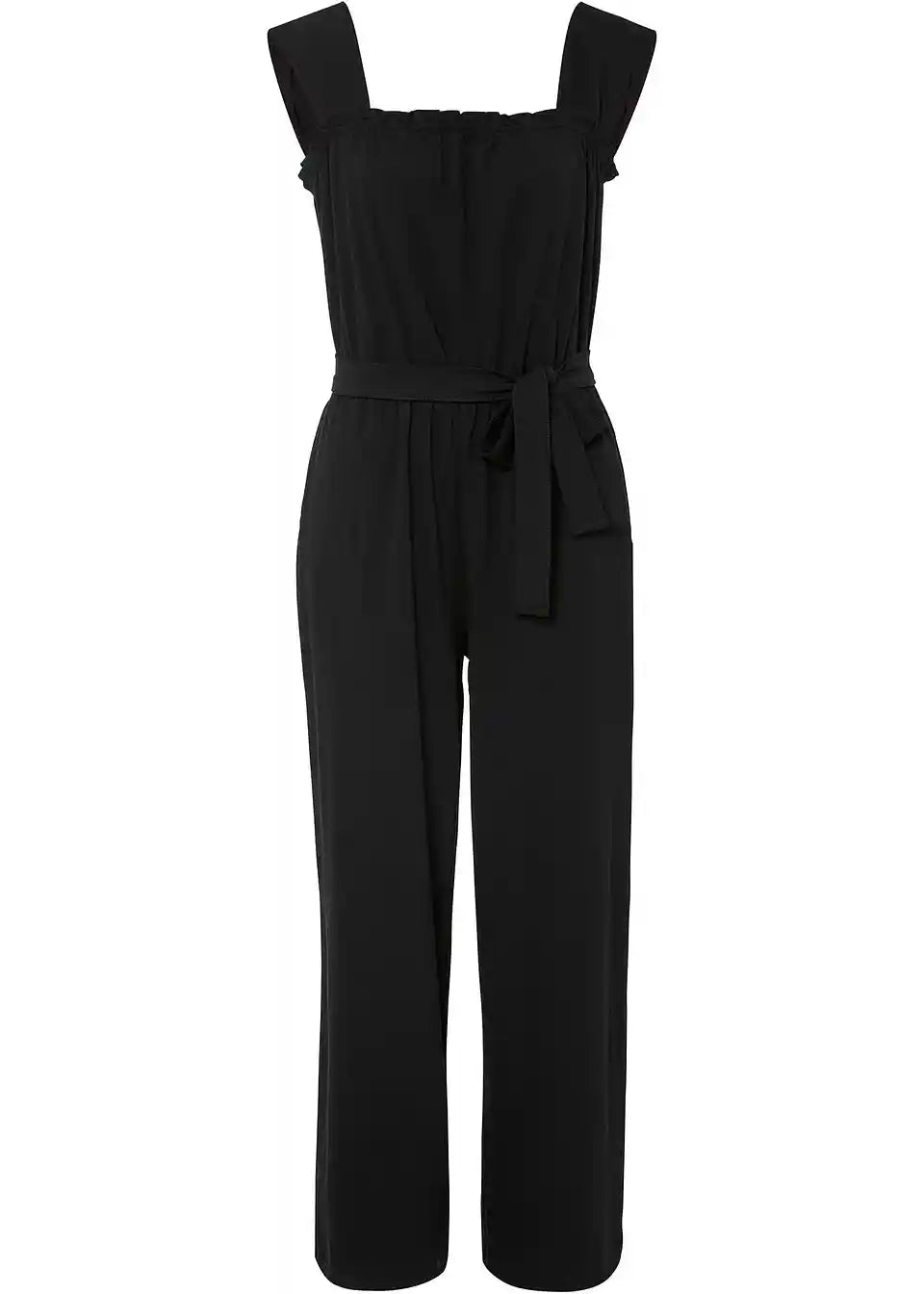Udoben Jersey Jumpsuit s širokimi naramnicami in širokimi hlačnicami