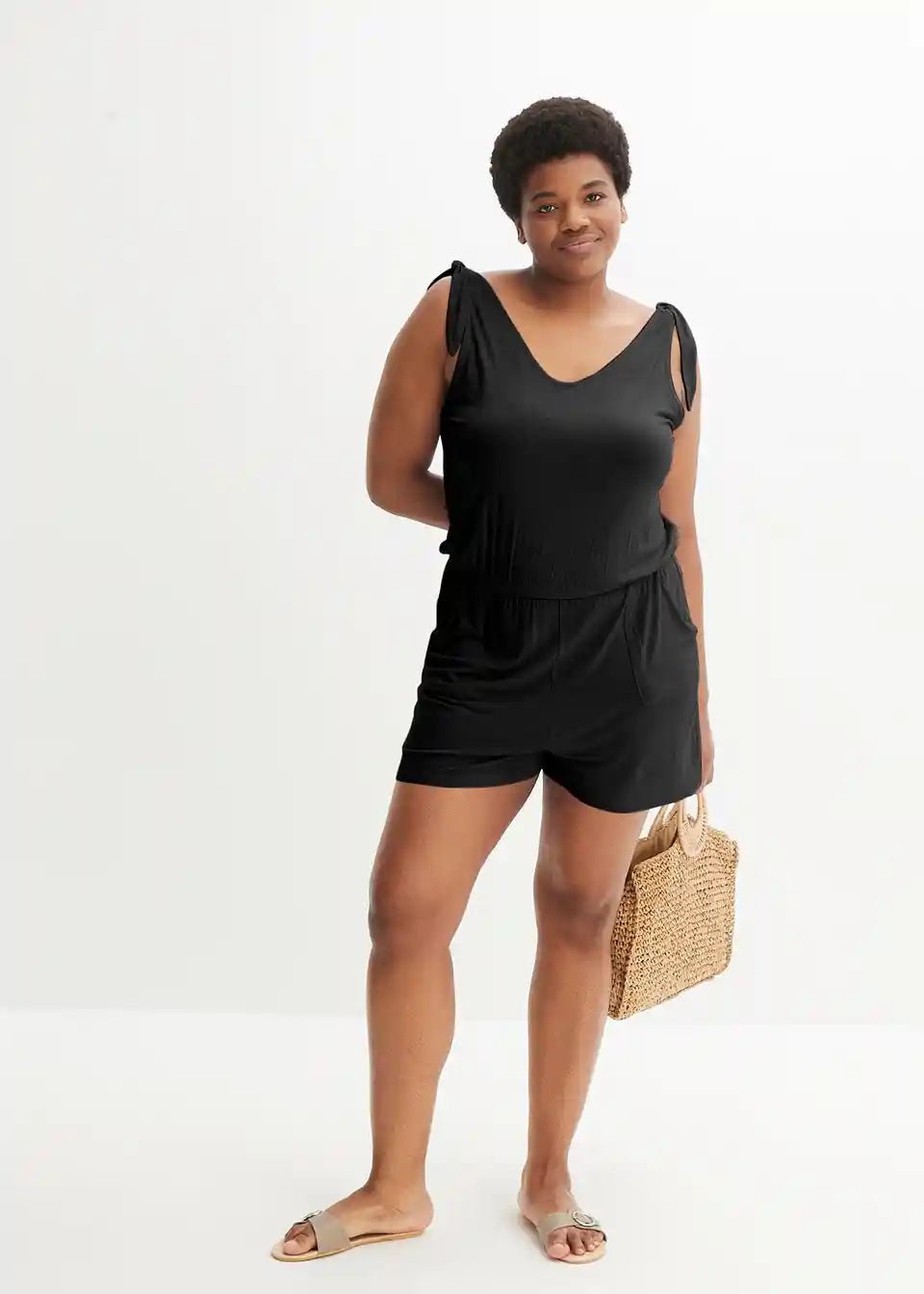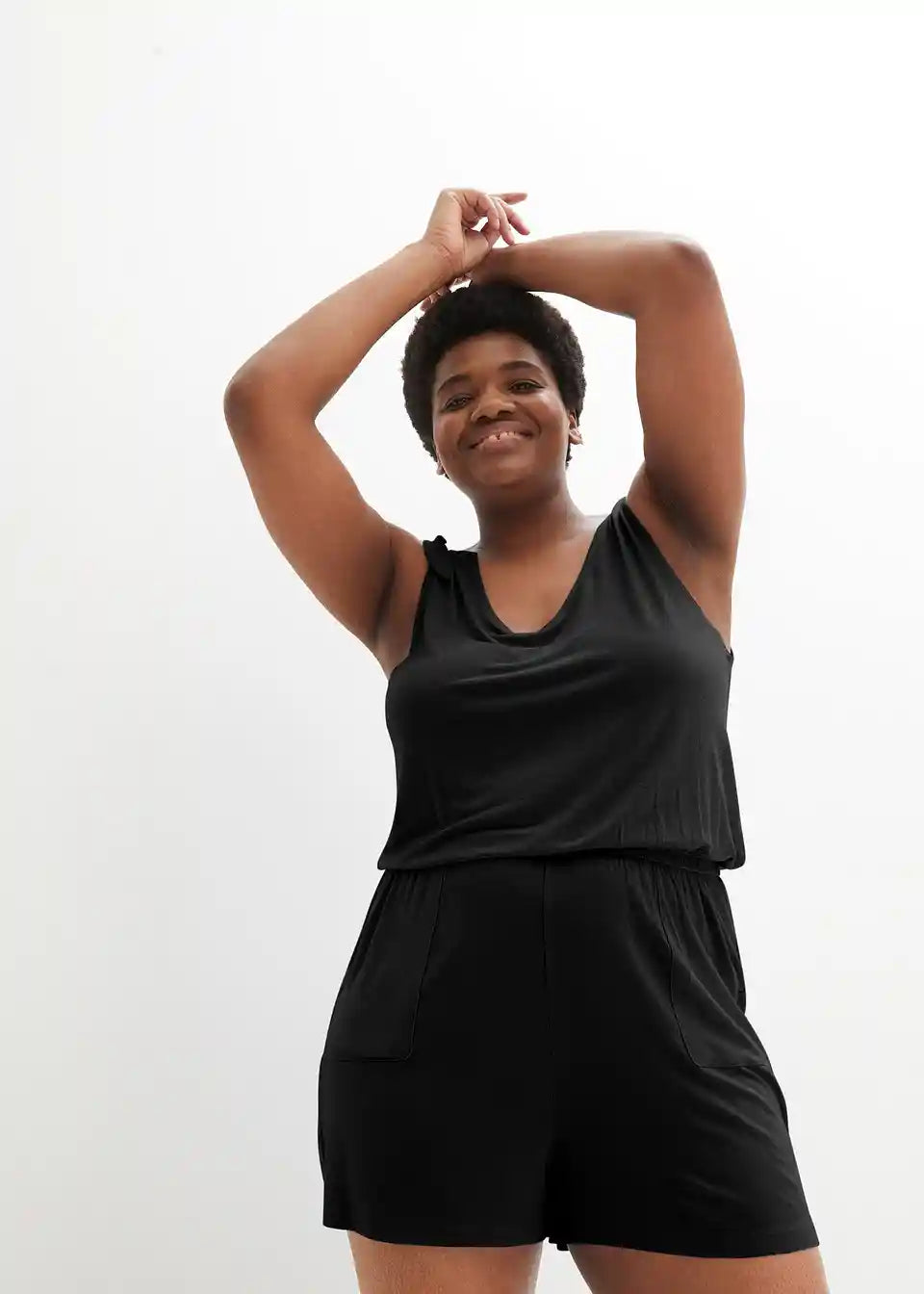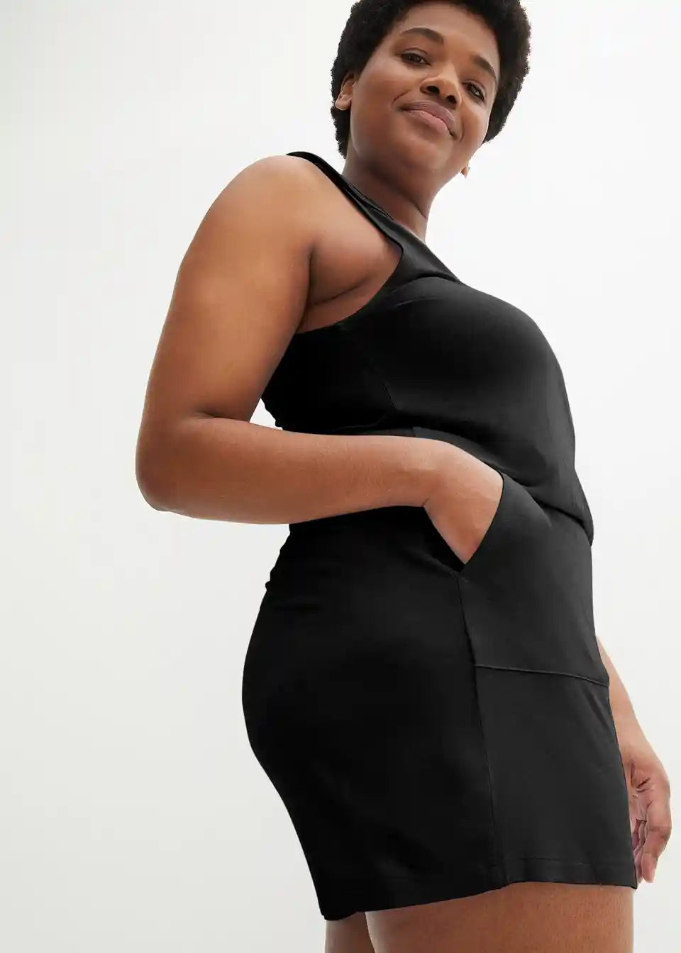 Stajliš Jersey kombinezon z bočnimi žepi in V-izrezom.