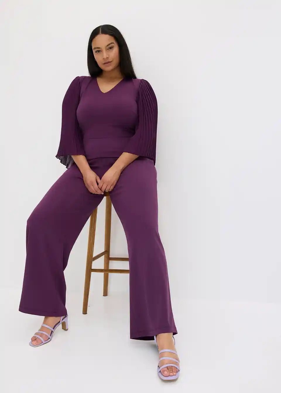 Sodoben in ženstven: Jersey kombinezon s plisiranimi rokavi iz finega šifona