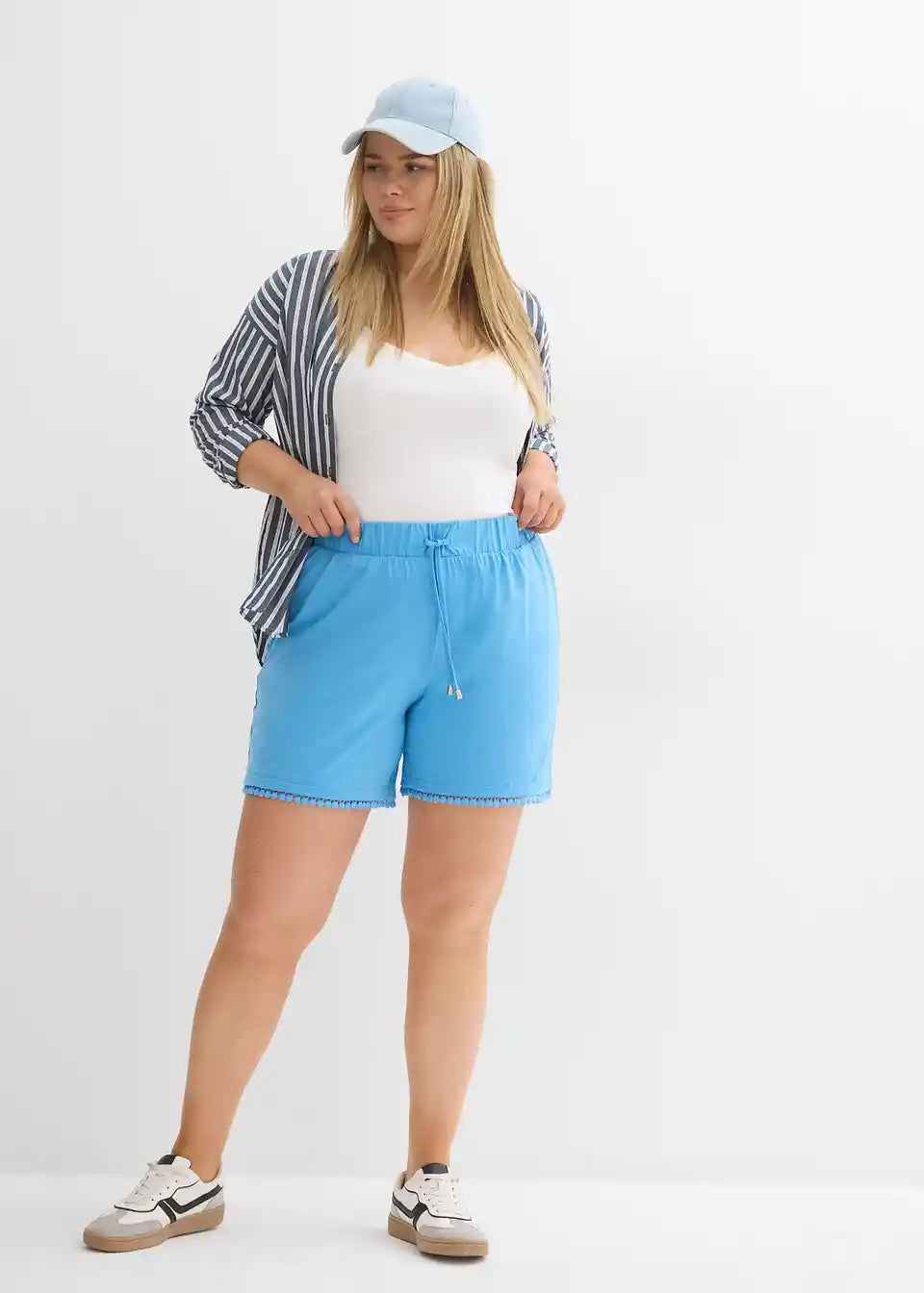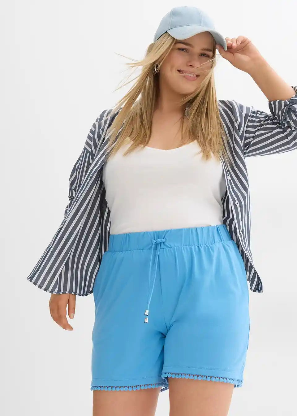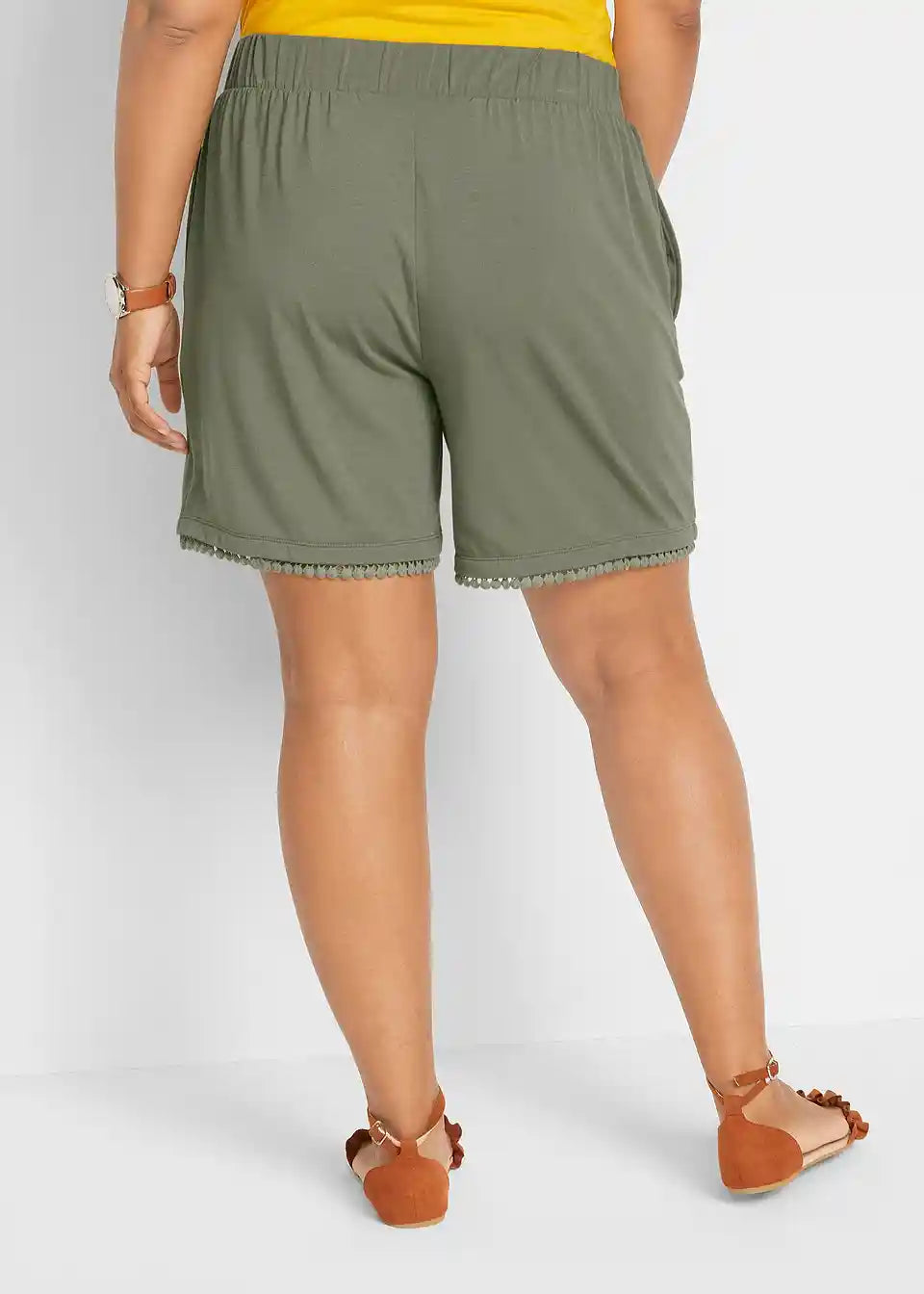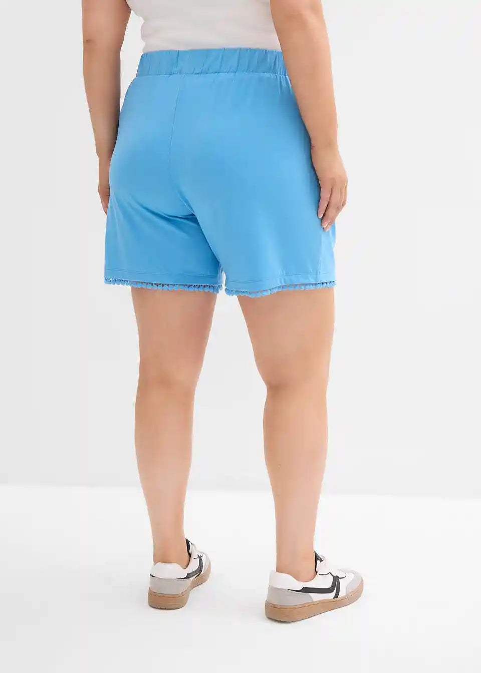 Udobno krojene jersey kratke hlače s prikupnim čipkastim robom in udobnim pasom okoli celotnega obsega