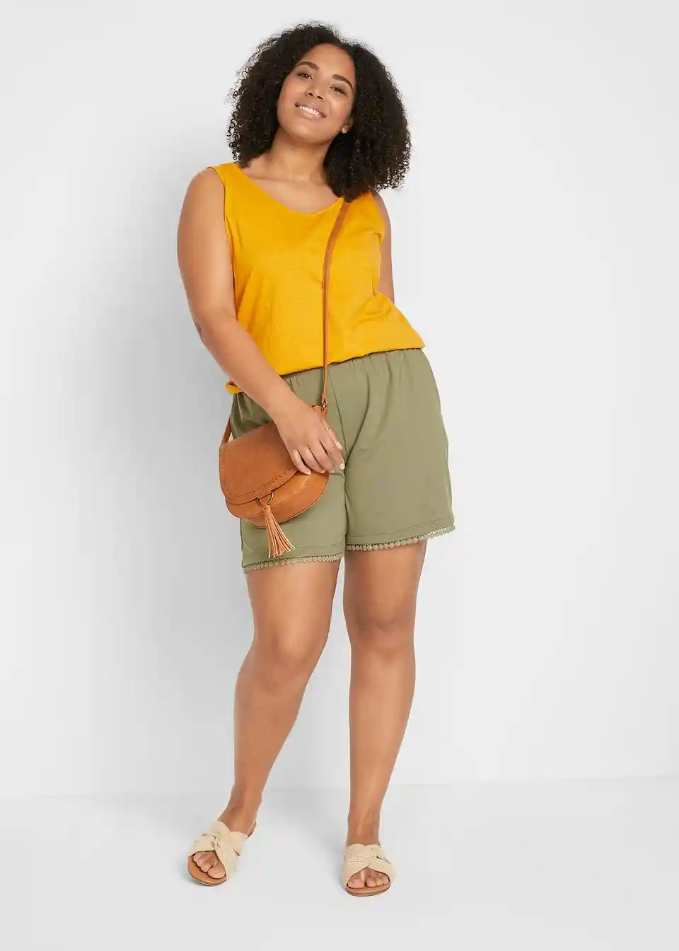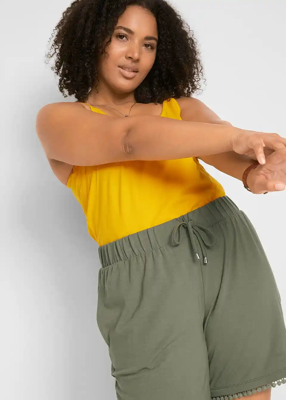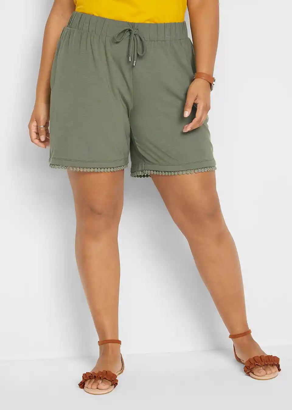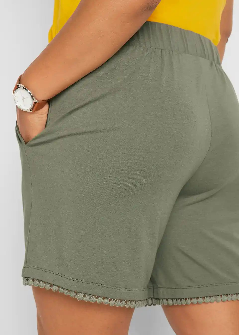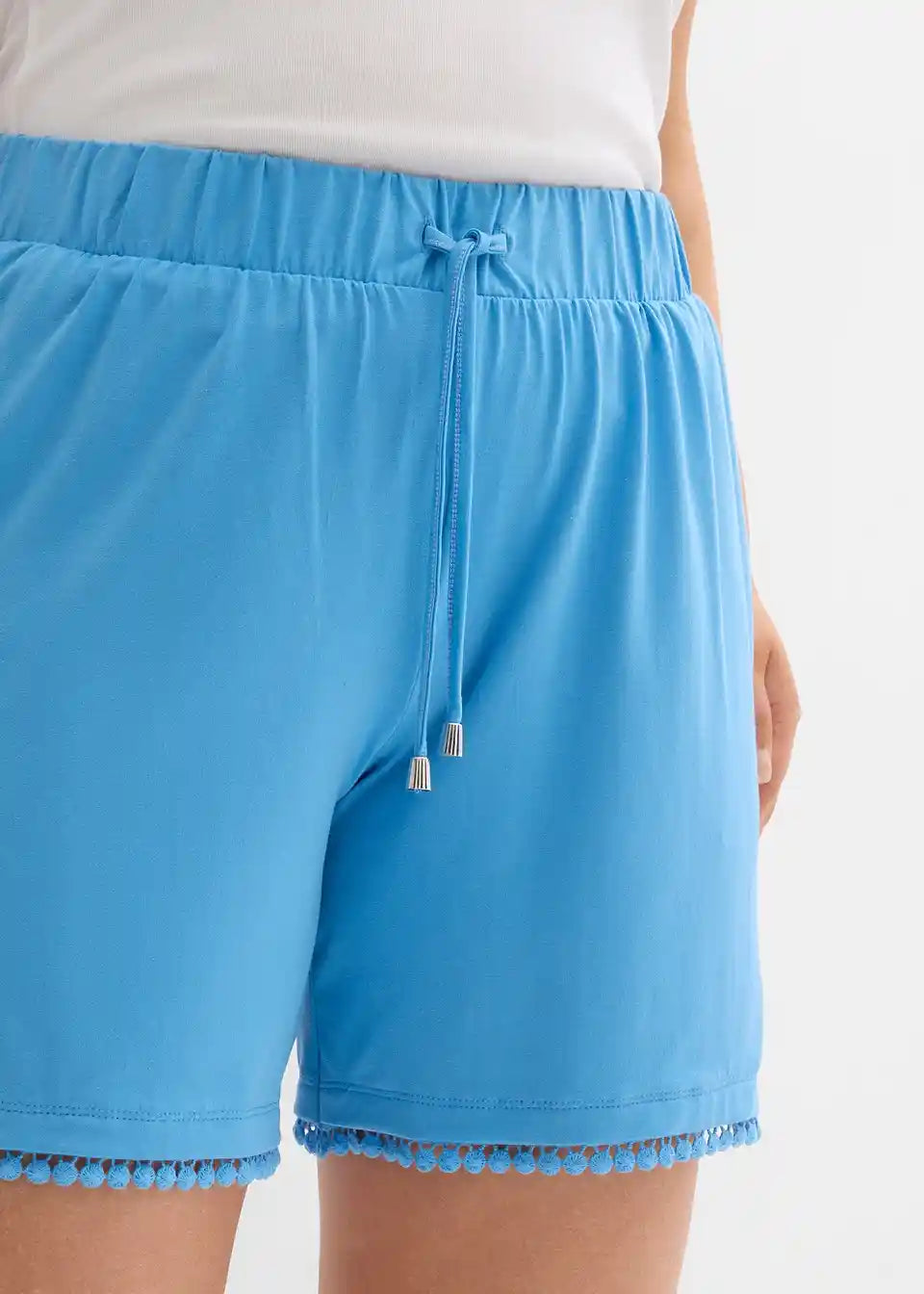 Kratke hlače iz jerseyja z udobnim pasom in čipko iz viskozne mešanice