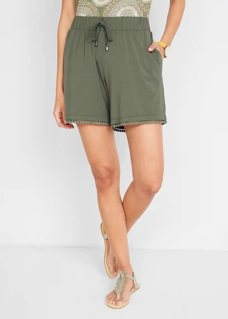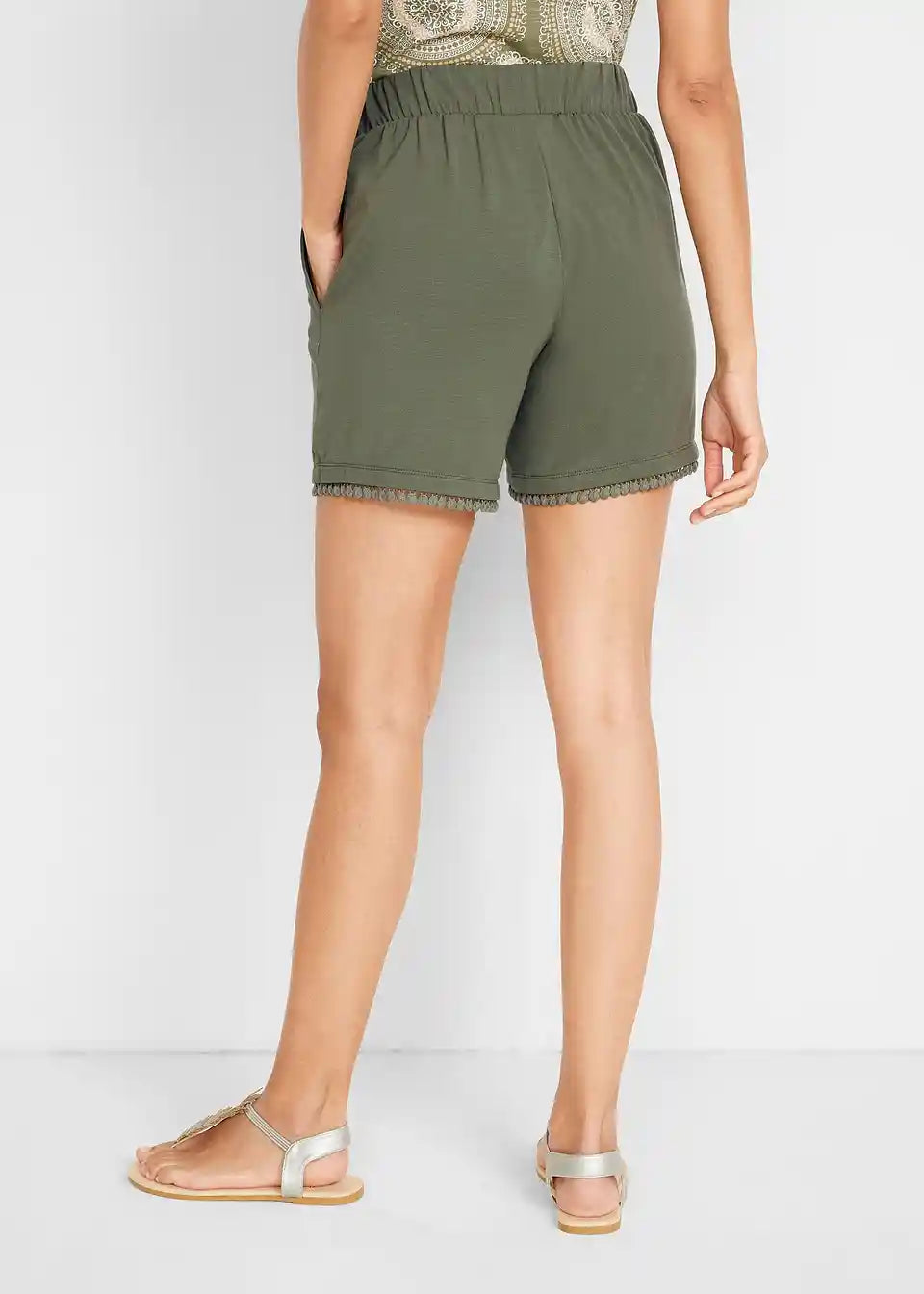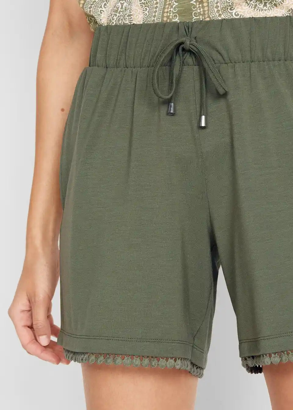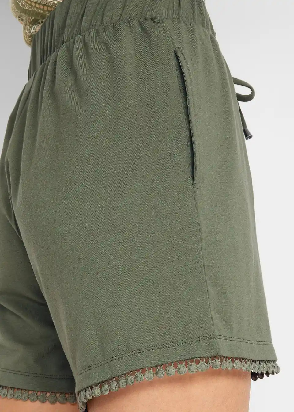 Kratke hlače iz jerseyja z udobnim pasom in čipko iz viskozne mešanice