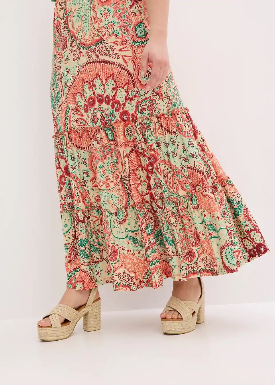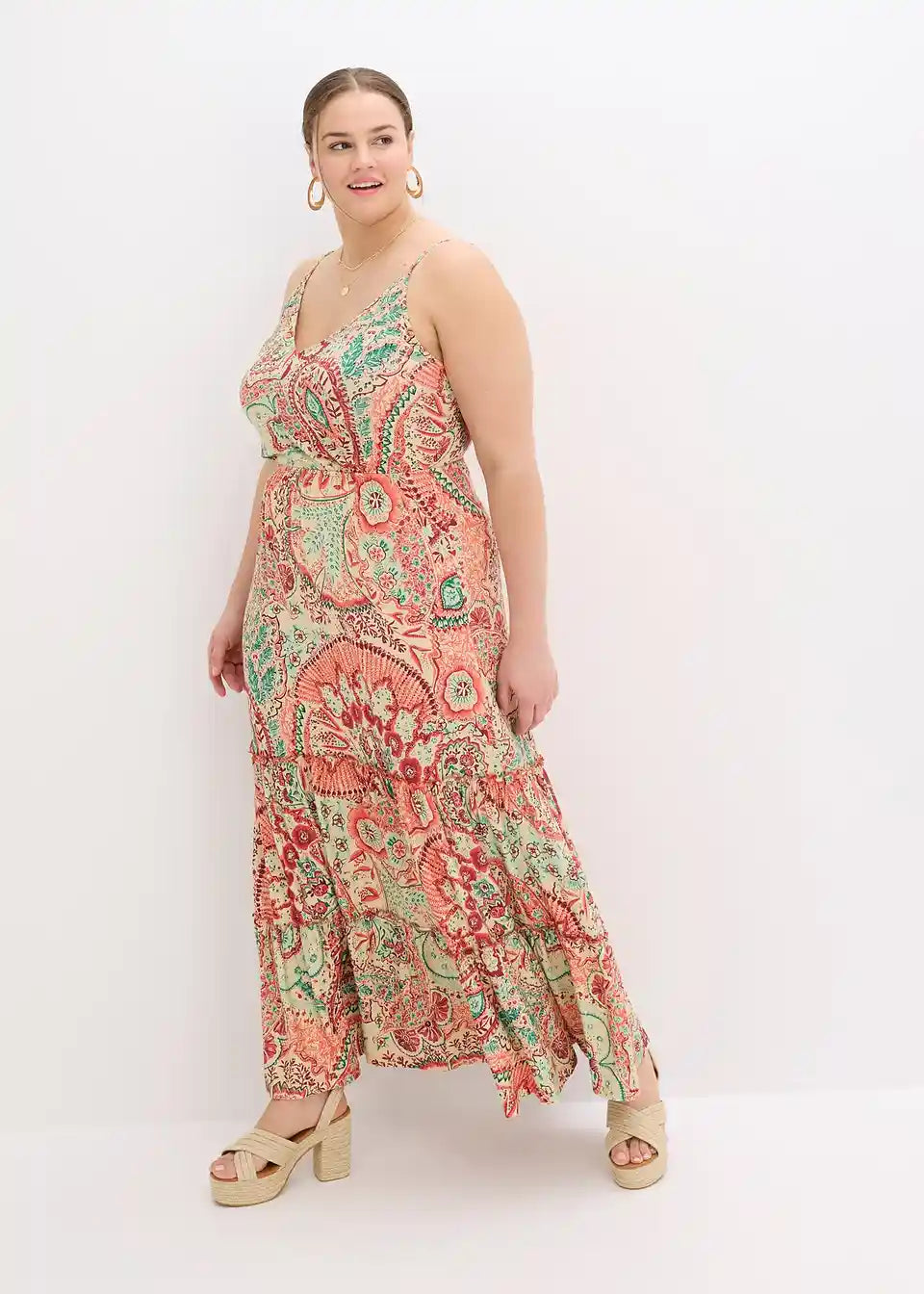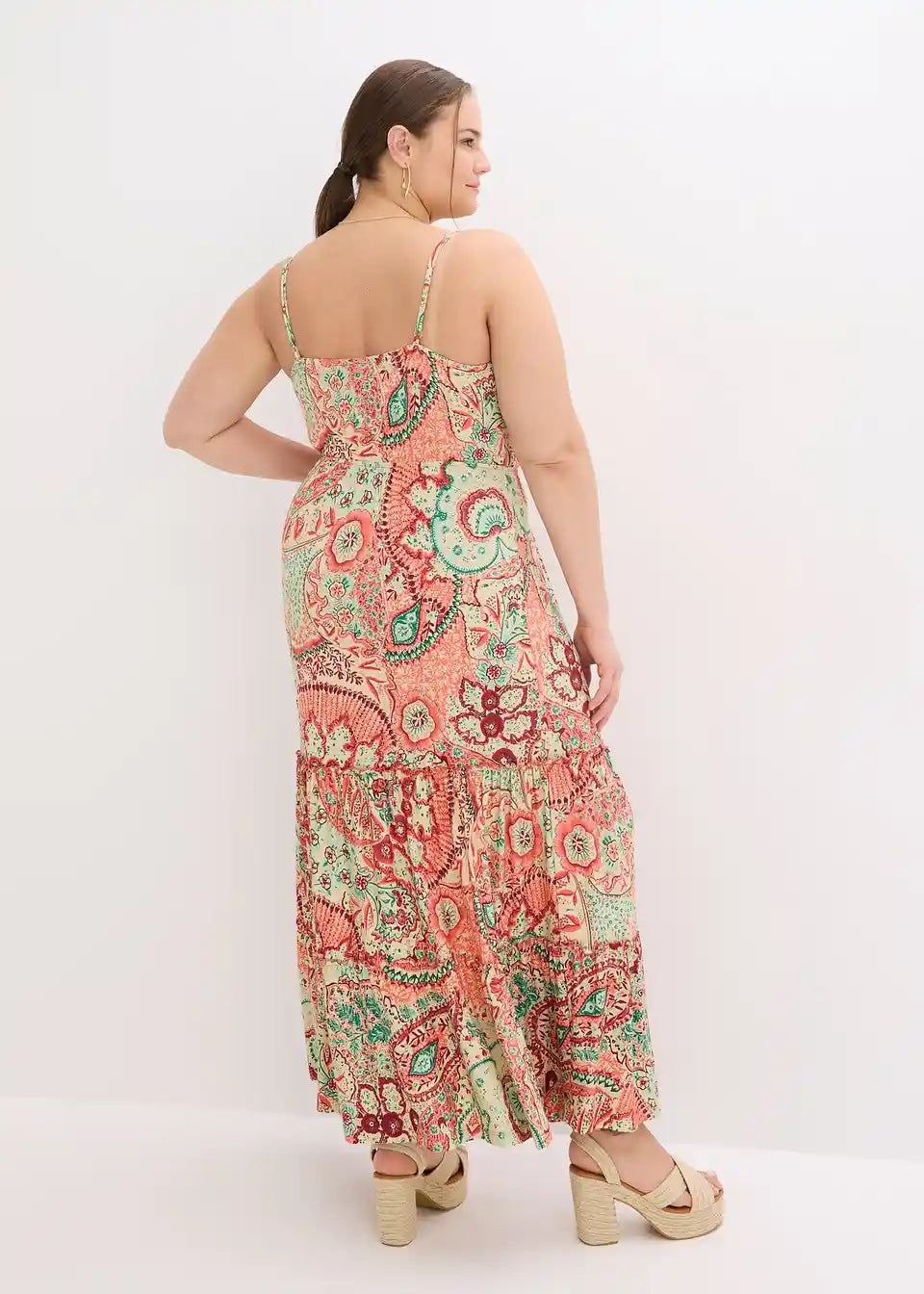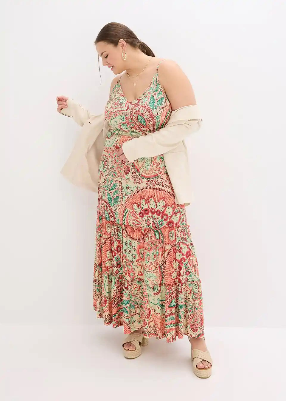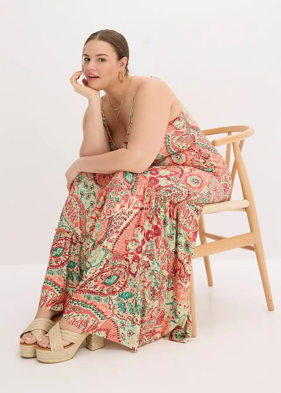 tiskana jersey naramna obleka iz mehkega viskoznega mešanice s spaghetti naramnicami