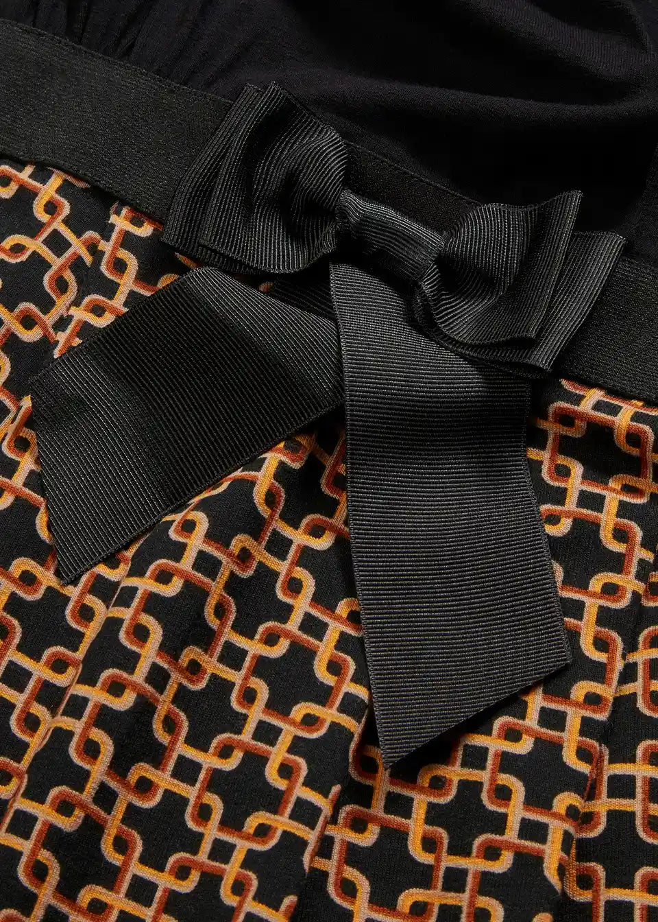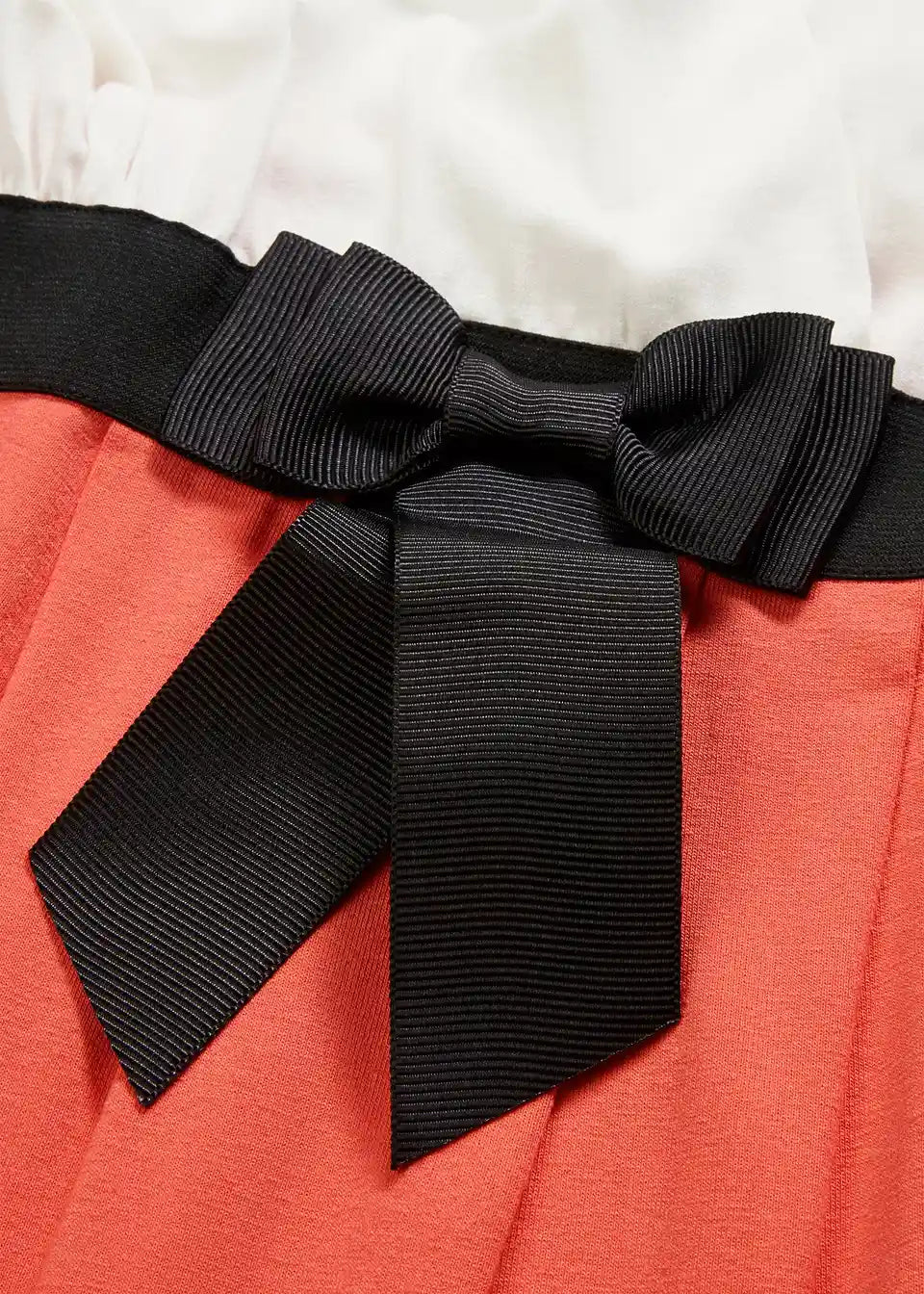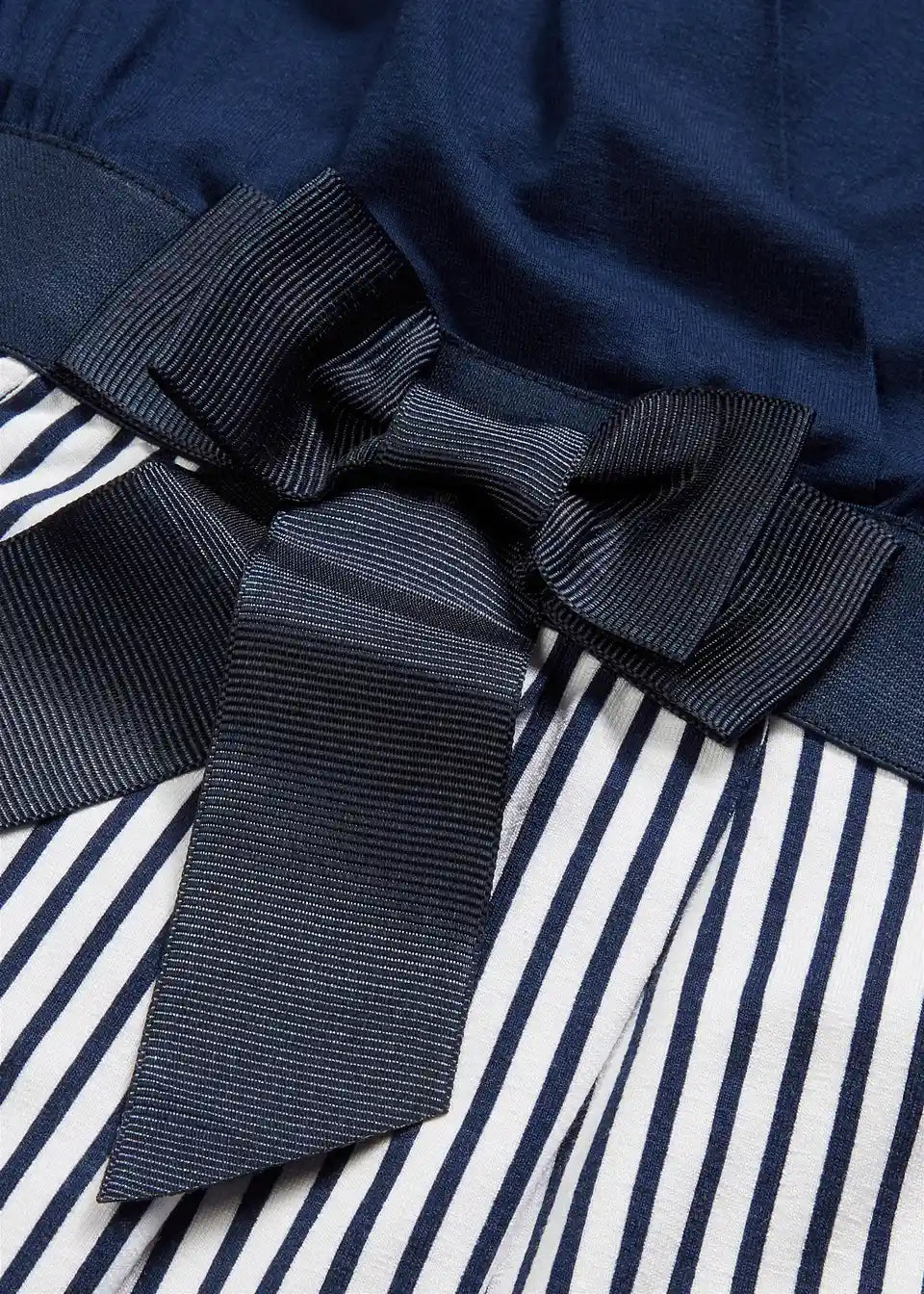 Majica obleka z dvignjenim pasom in prišitim pasom s pentljo