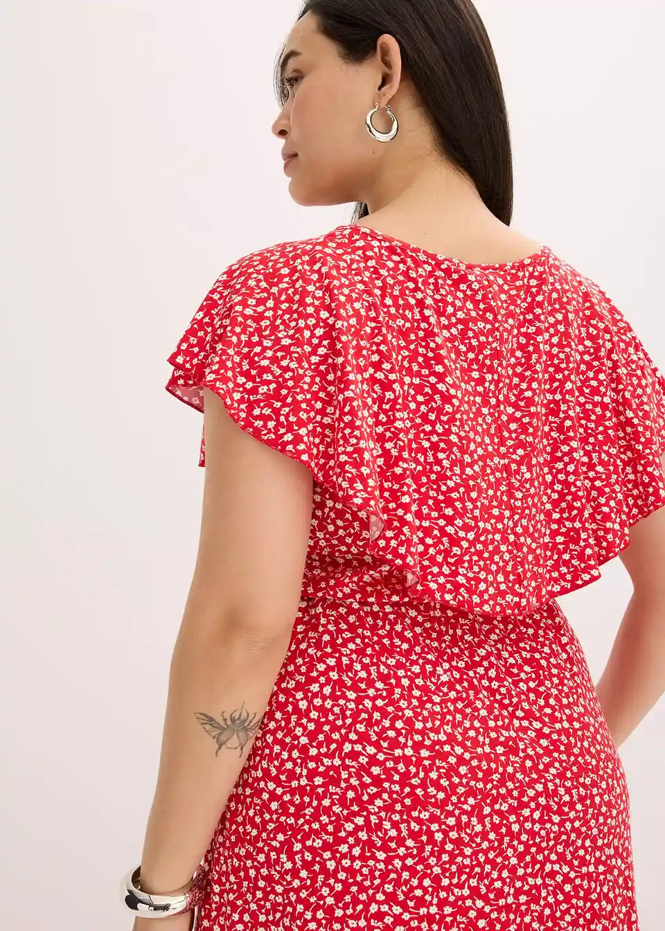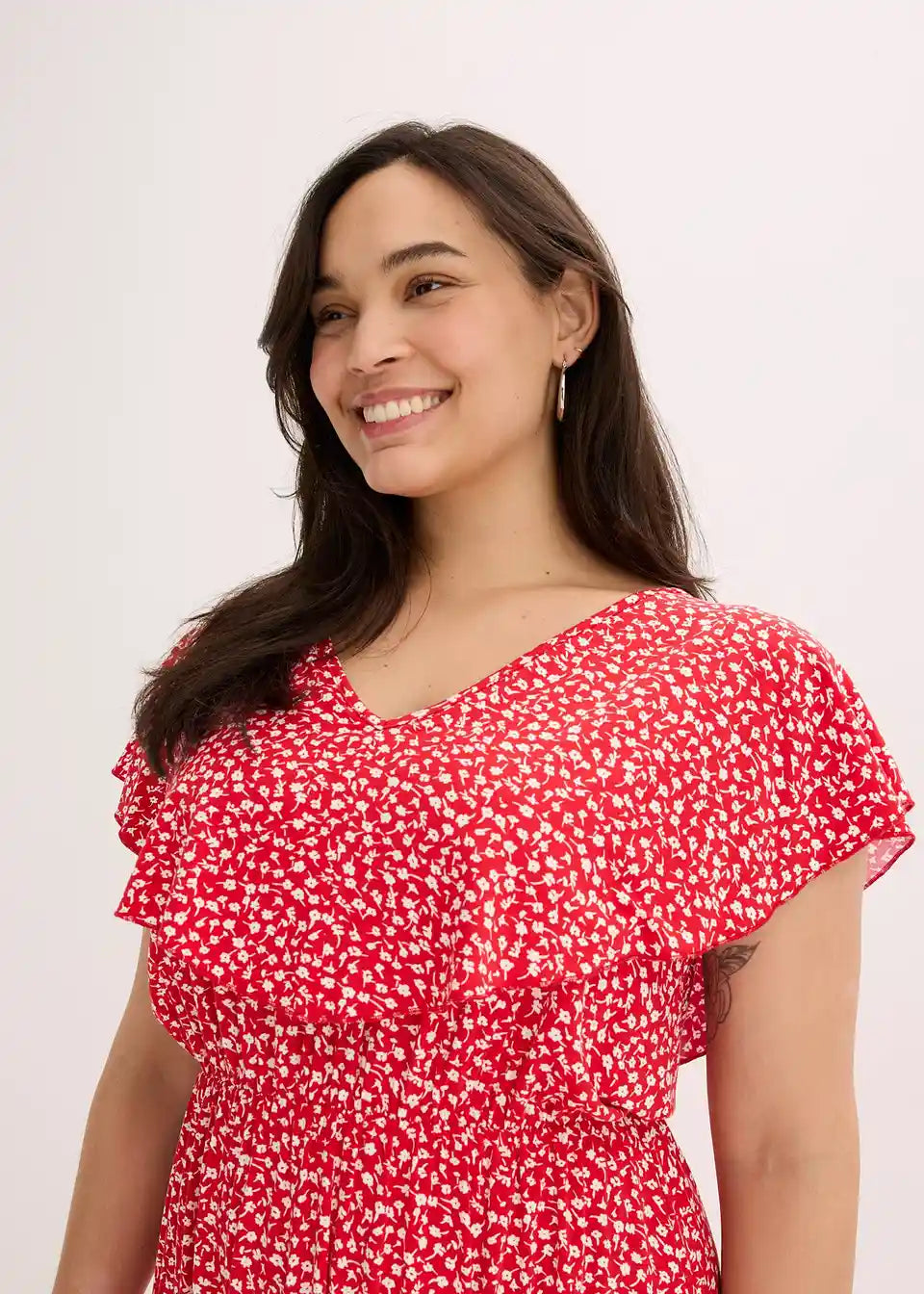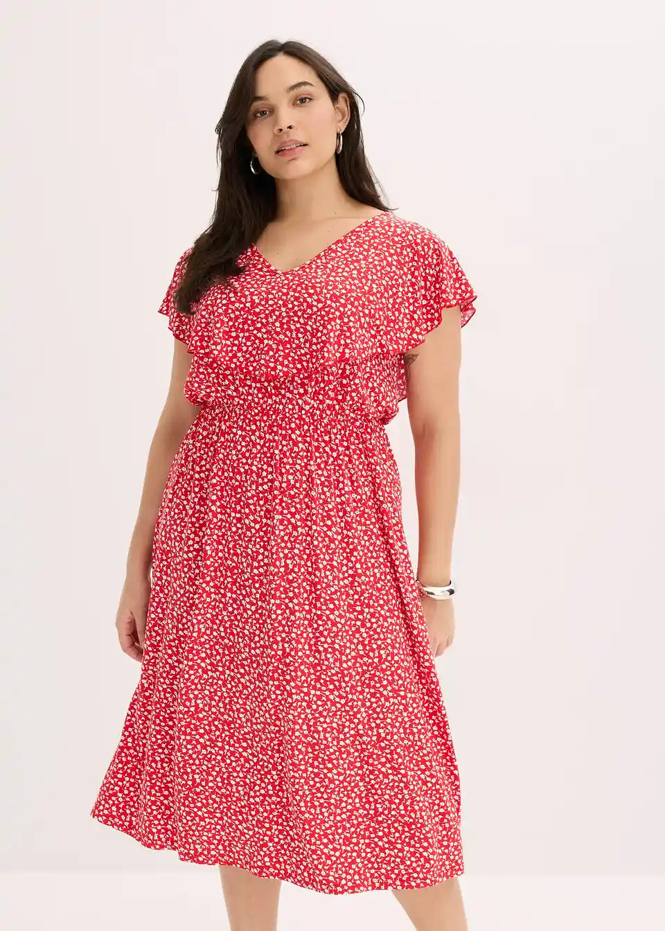 Čudovita obleka z elastiko v pasu in volanom ob izrezu