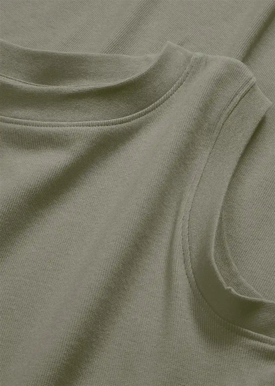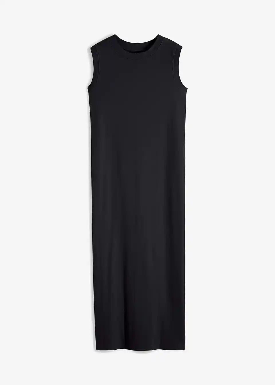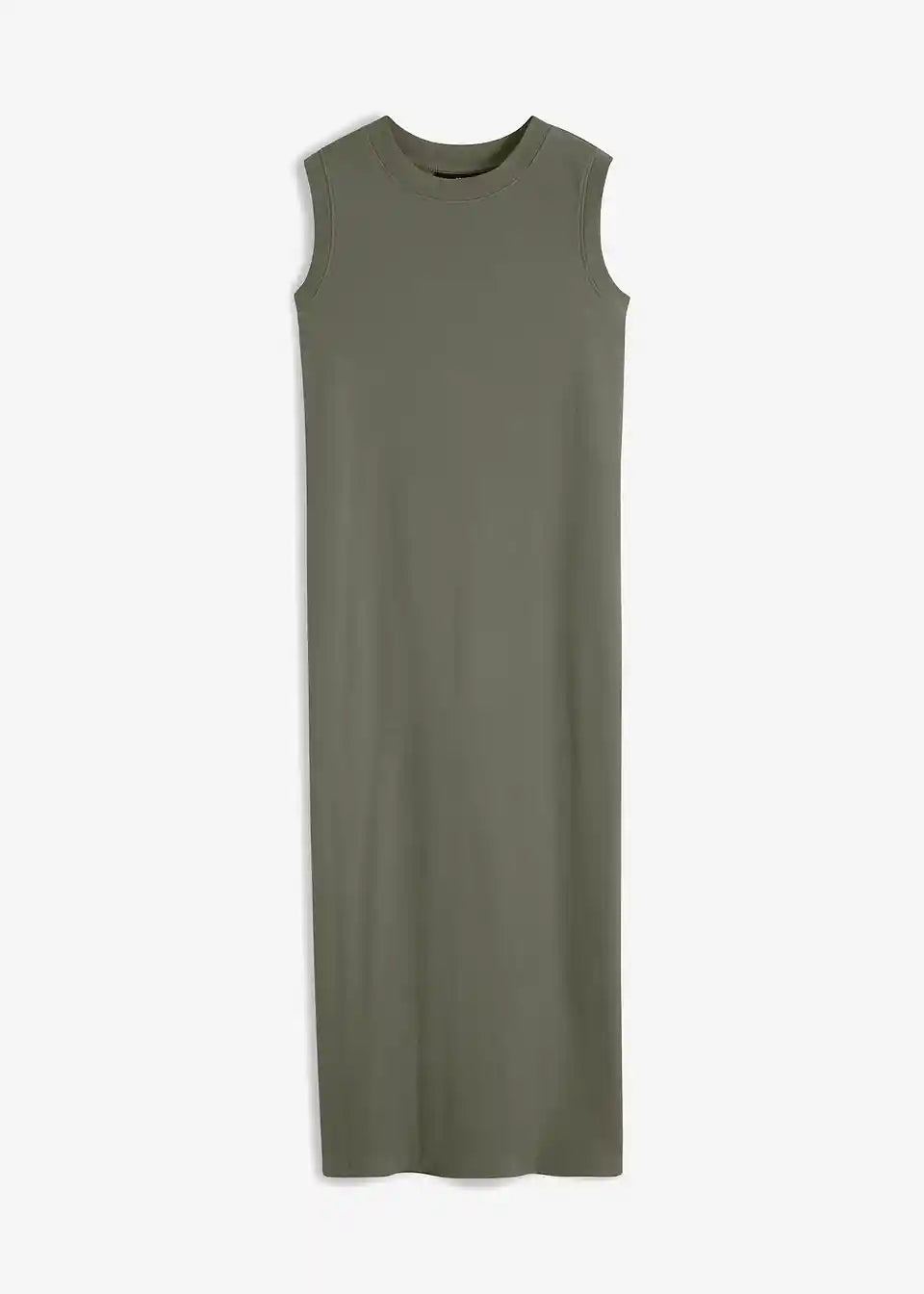 Obleka iz rebrastega jerseyja z okroglim rebrastim izrezom in razporkom