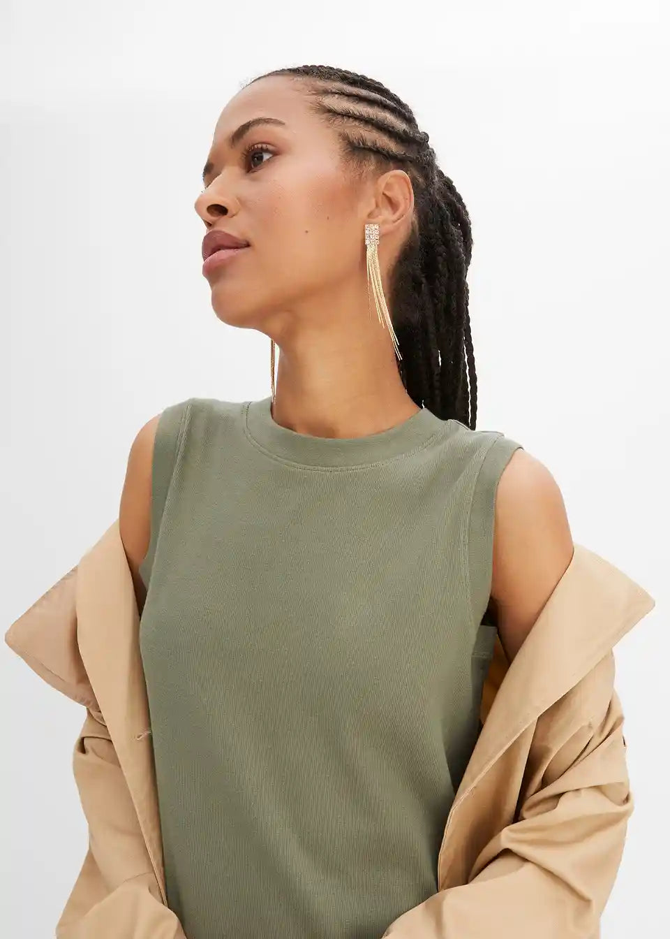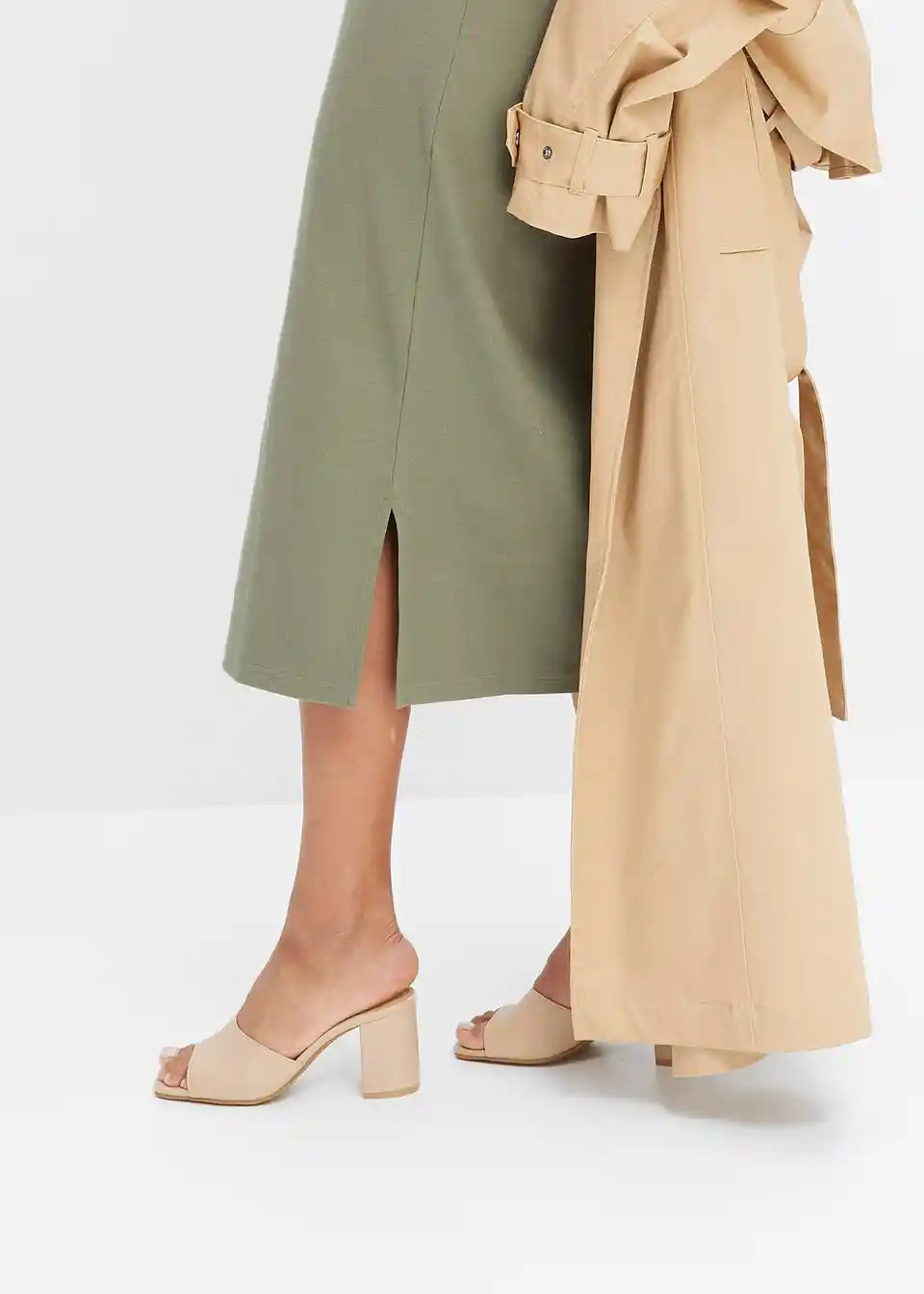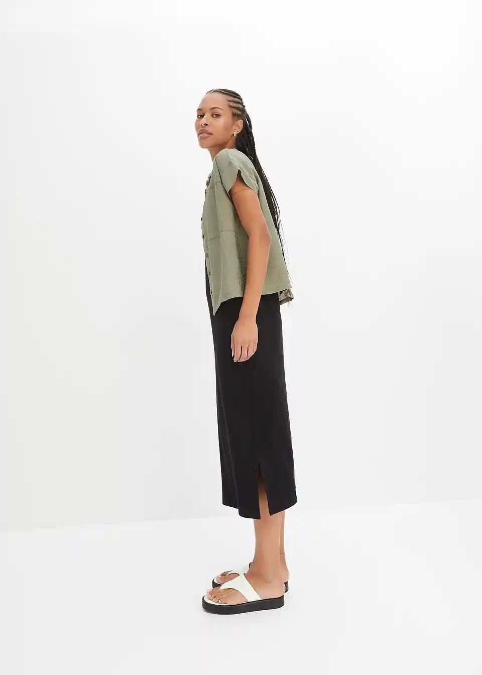 Obleka iz rebrastega jerseyja z okroglim rebrastim izrezom in razporkom