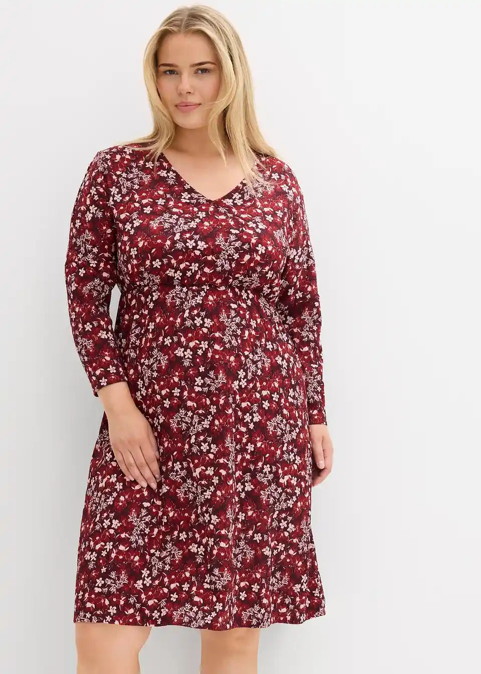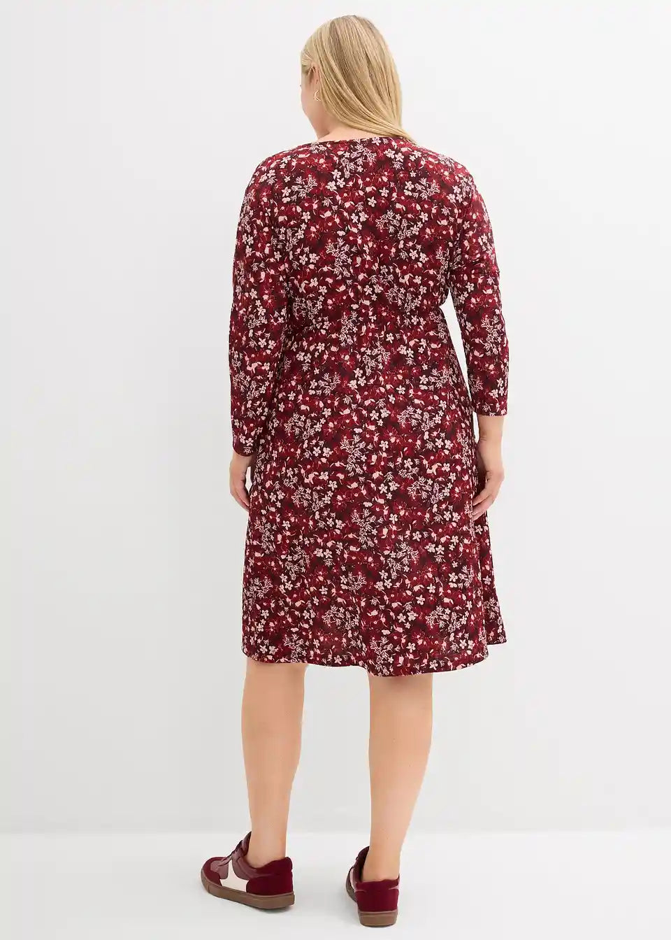 Jersey obleka iz rahlo strukturiranega materiala s cvetličnim potiskom