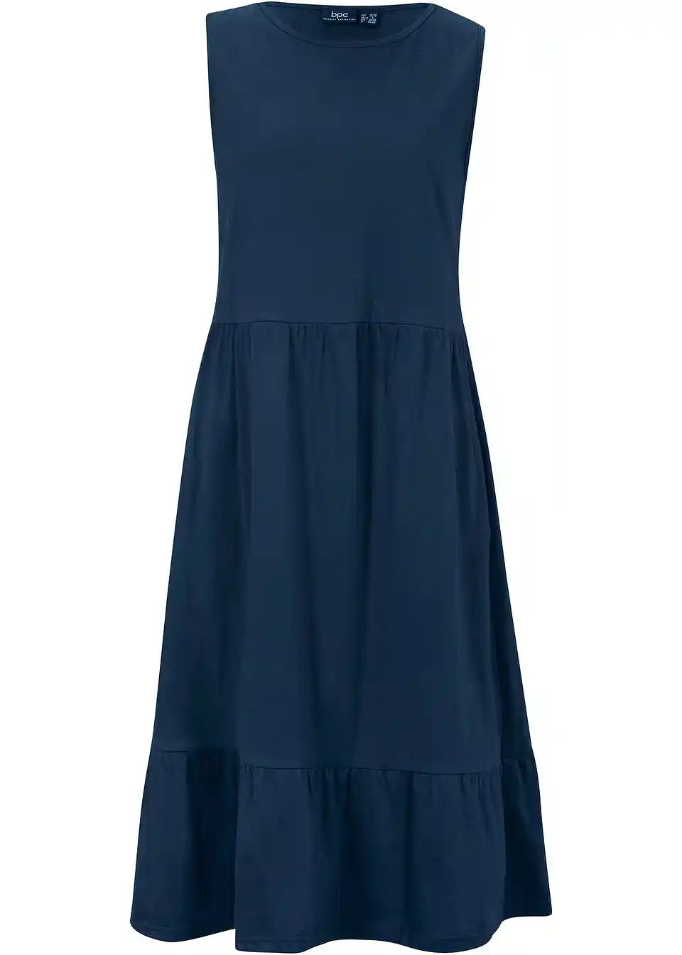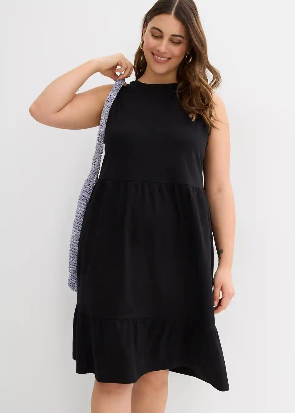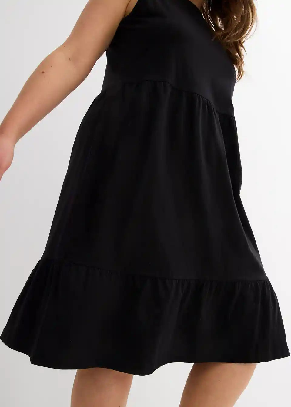 Obleka A-kroja z okroglim izrezom, volančki in delitvenim šivom v pasu