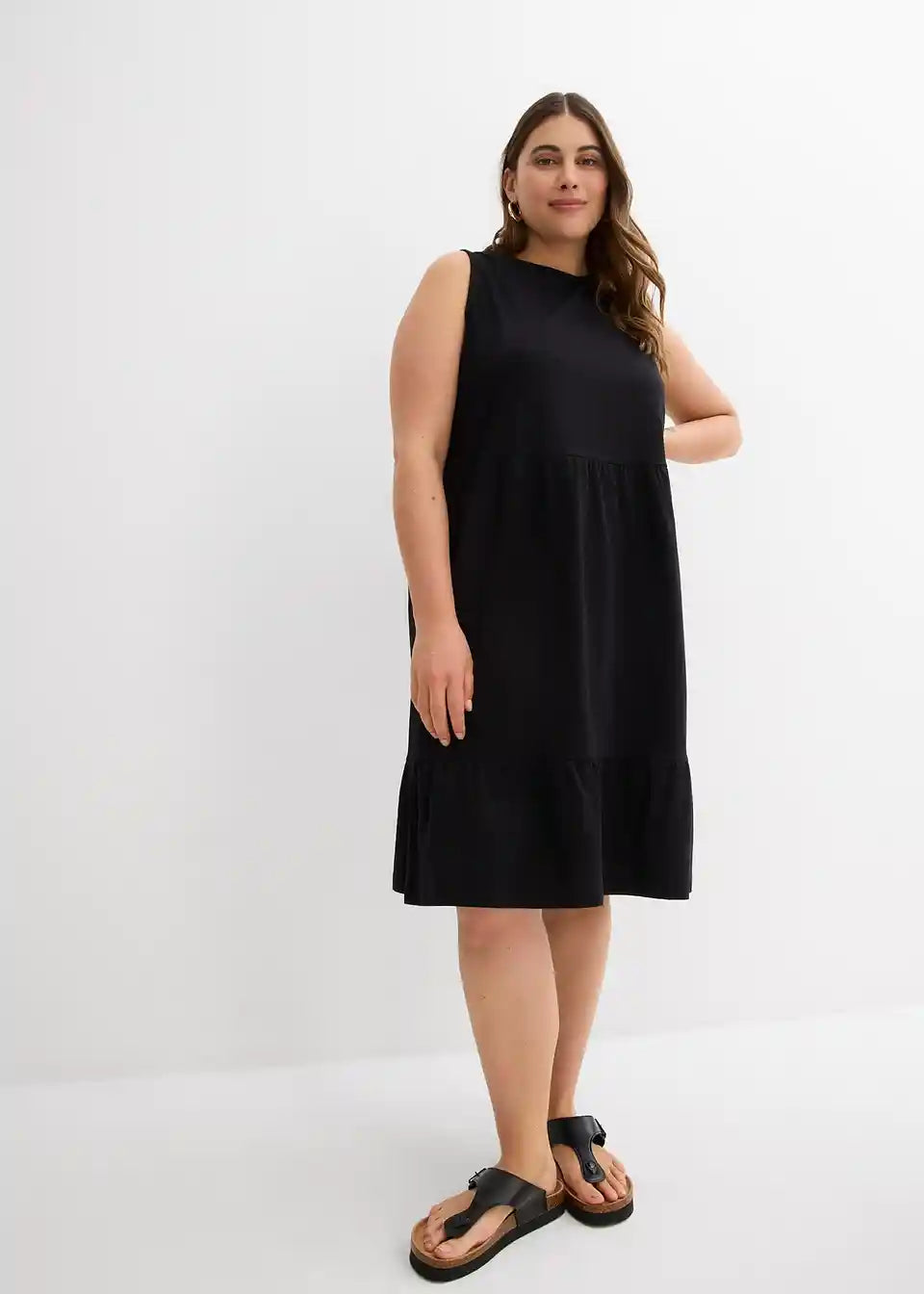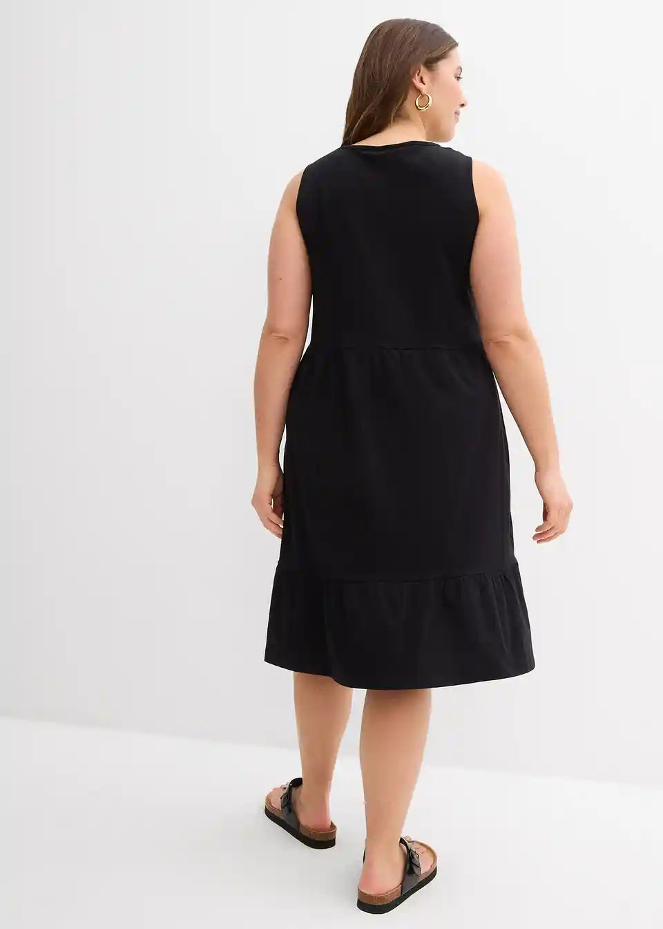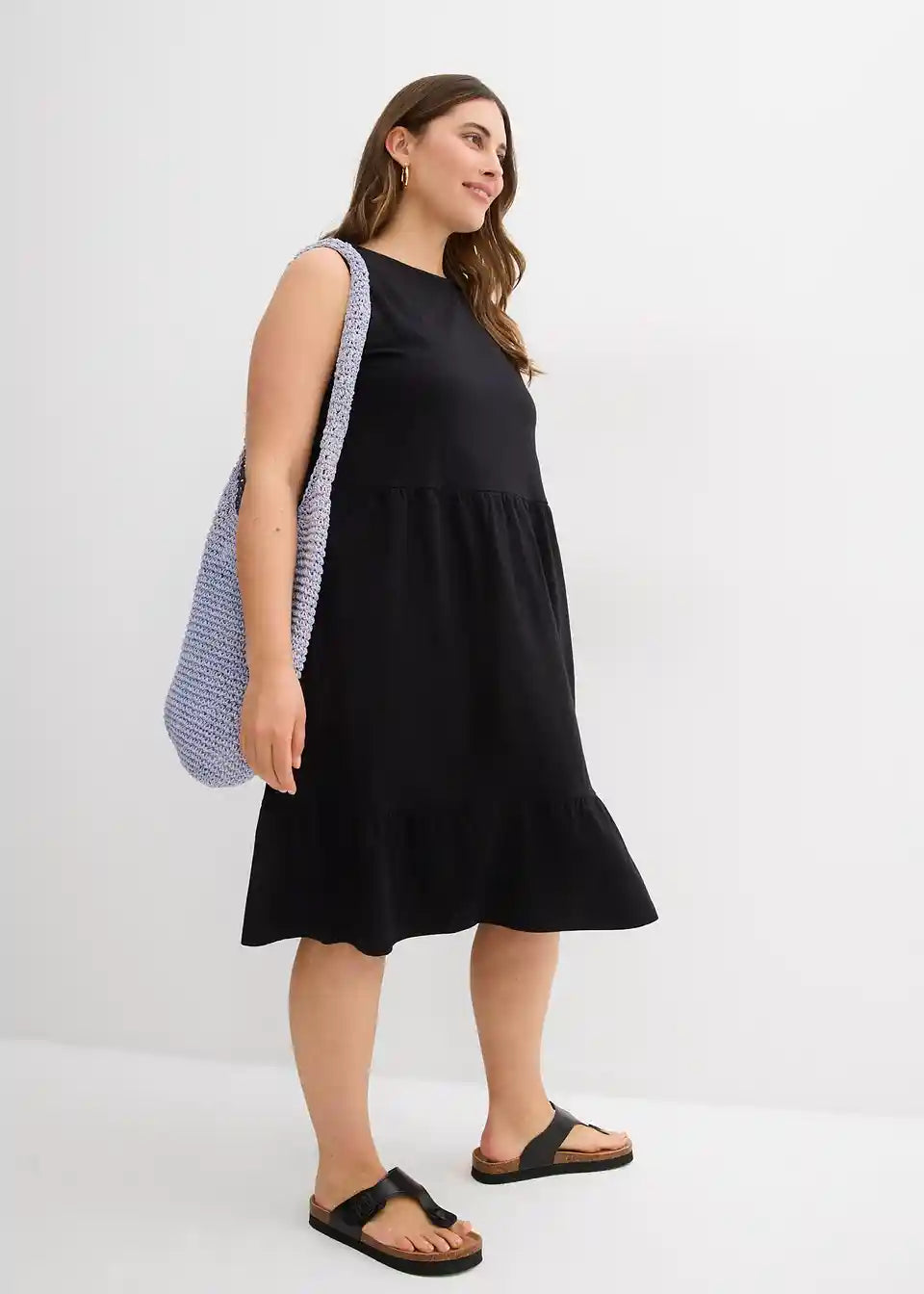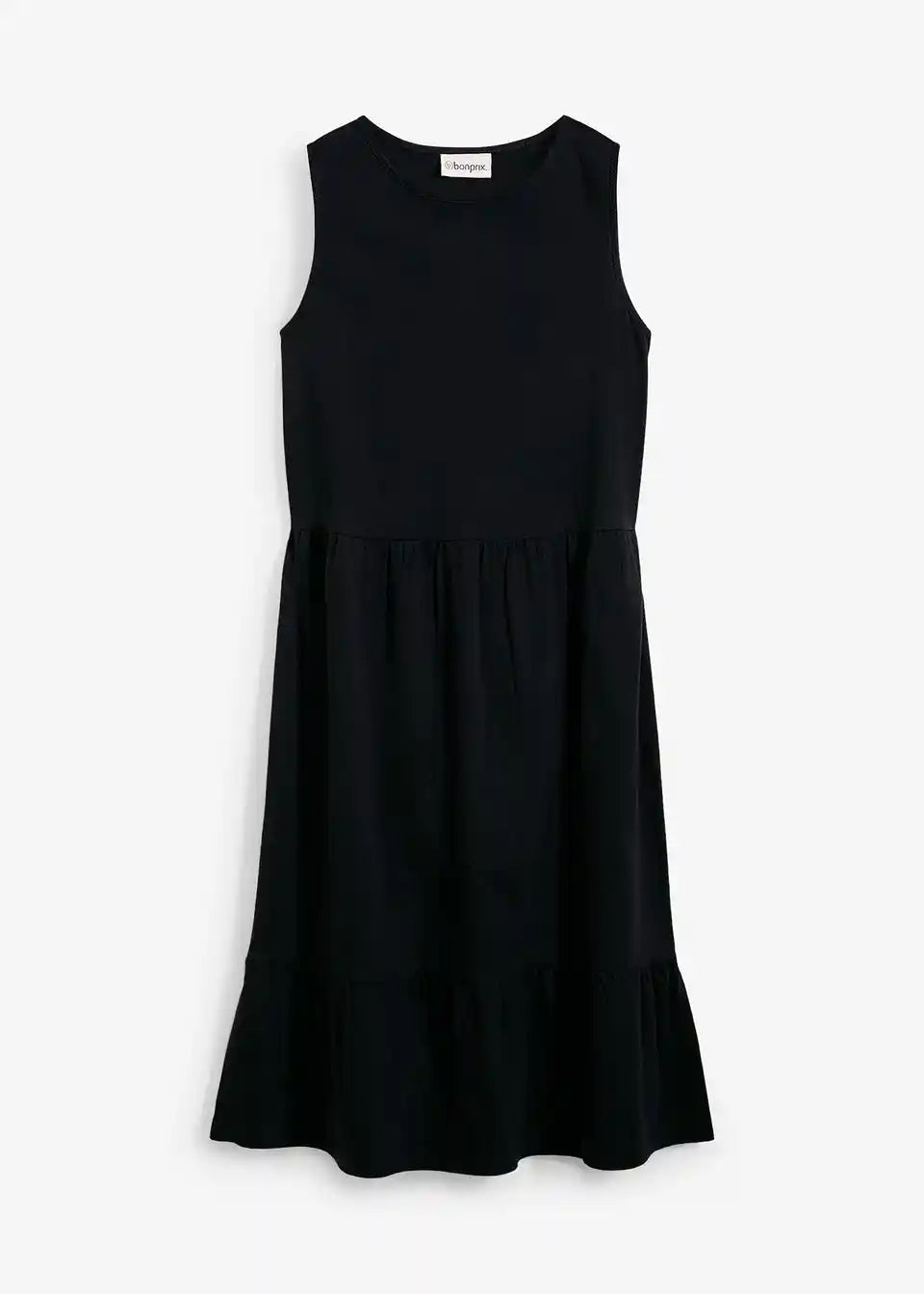 Obleka A-kroja z okroglim izrezom, volančki in delitvenim šivom v pasu