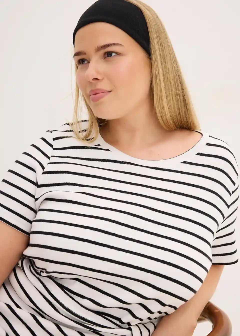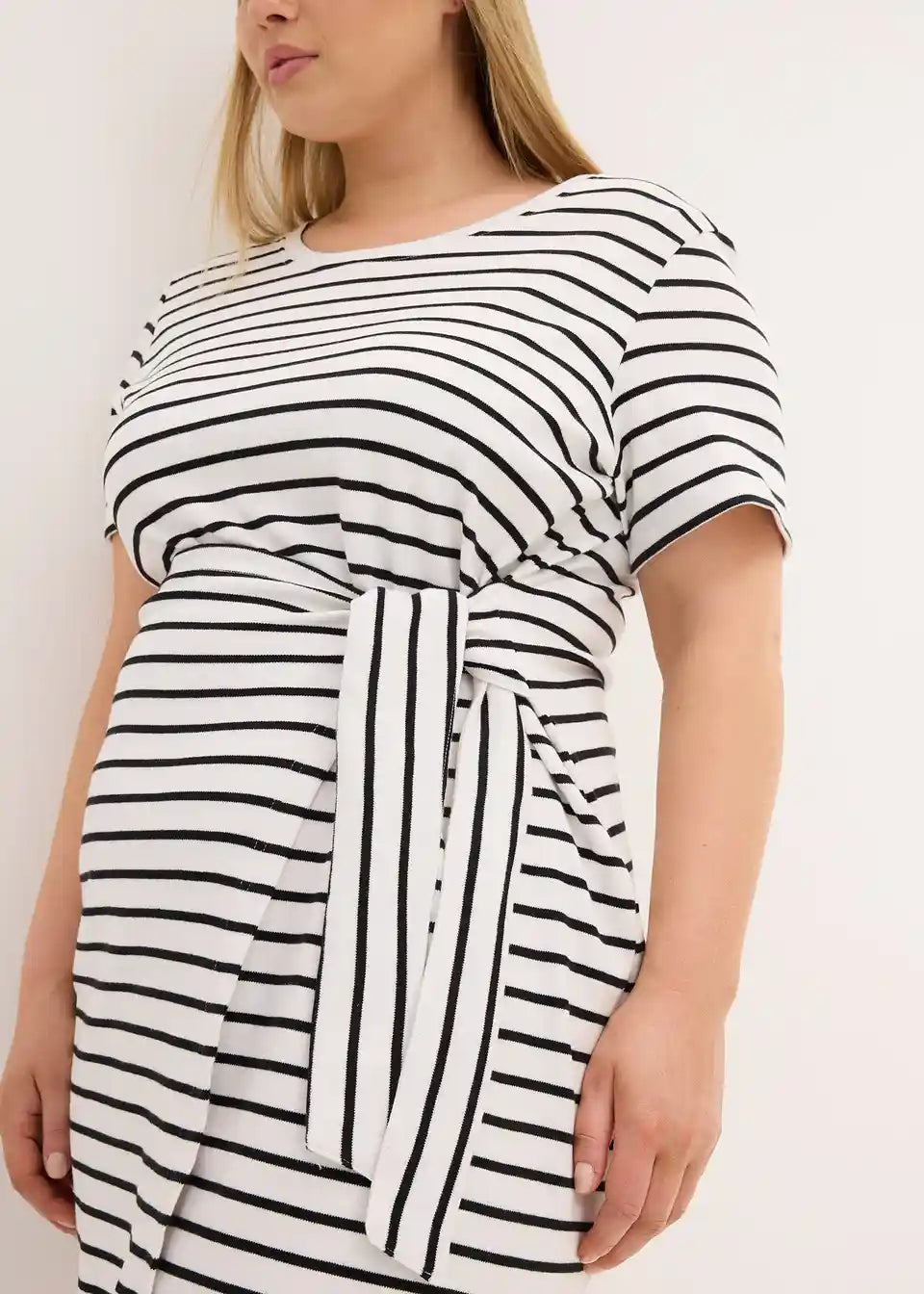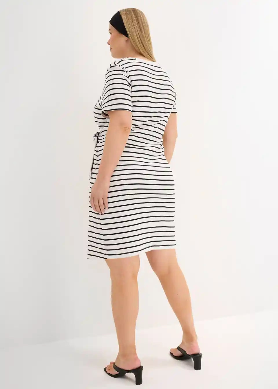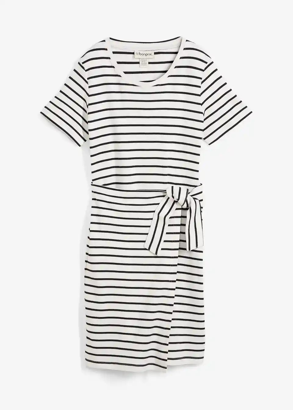 Jersey obleka z okroglim izrezom, oprijetim krojem in ravnim robom