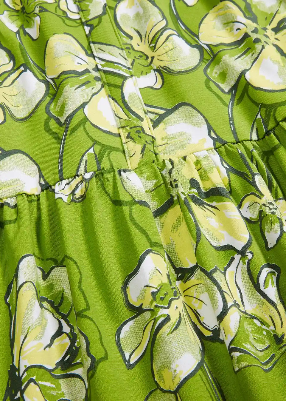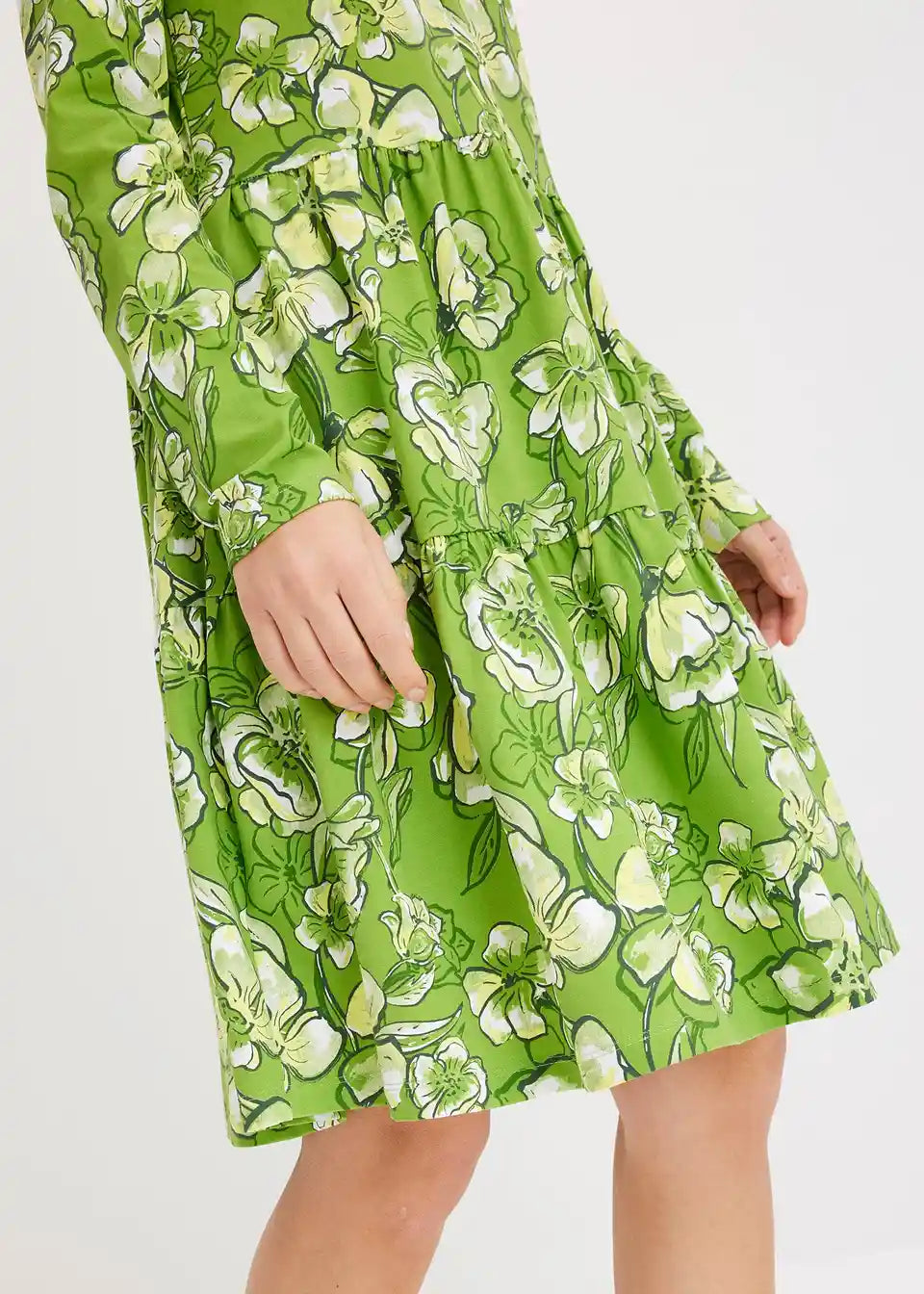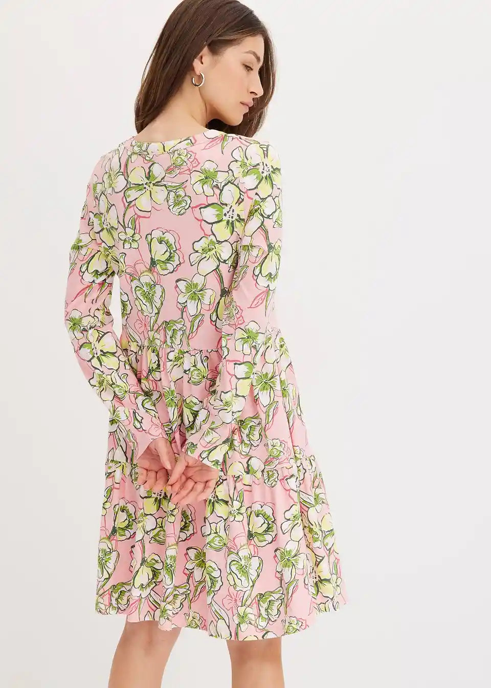Obleka iz mehkega jerseya s čudovitim cvetličnim potiskom