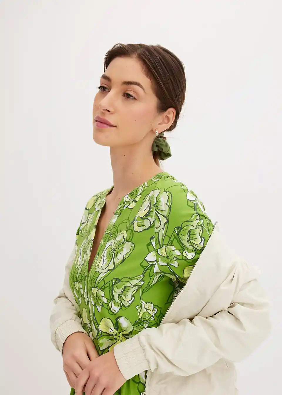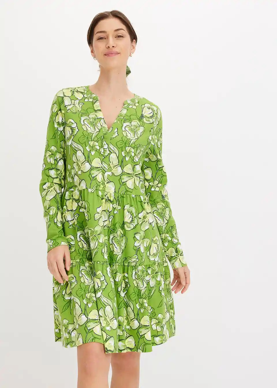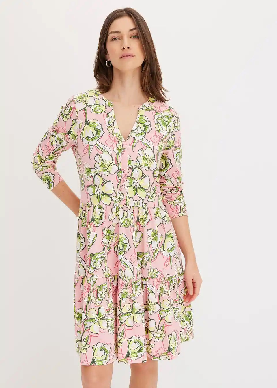 Obleka iz mehkega jerseya s čudovitim cvetličnim potiskom