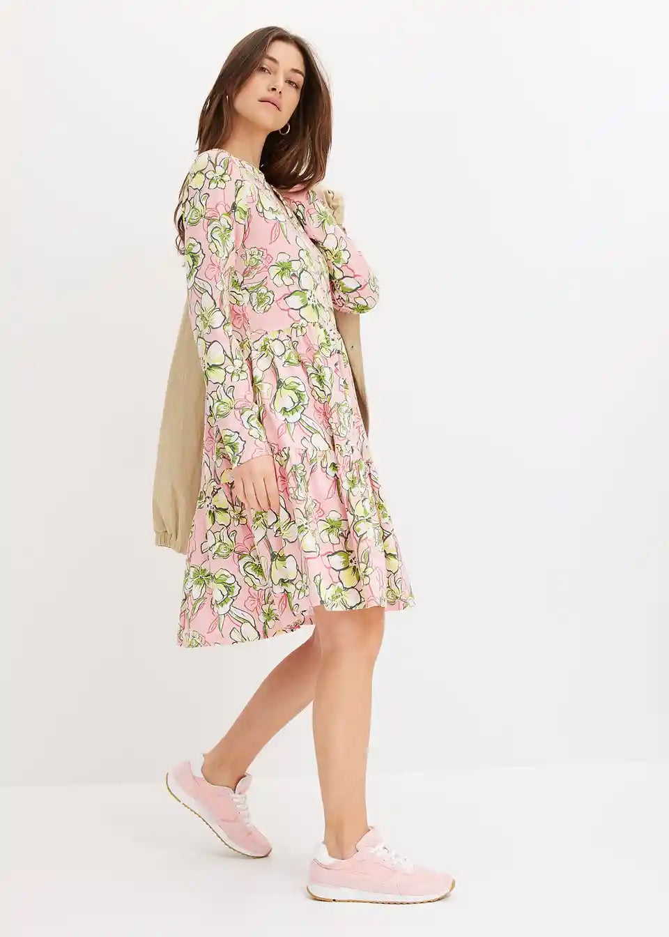 Obleka iz elastičnega jerseyja z deležem bombaža