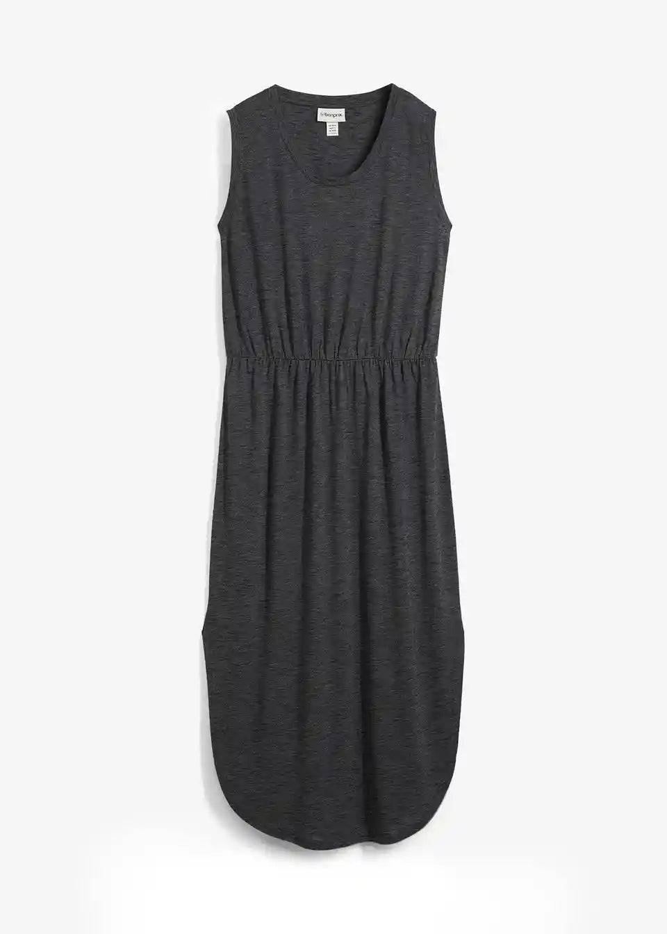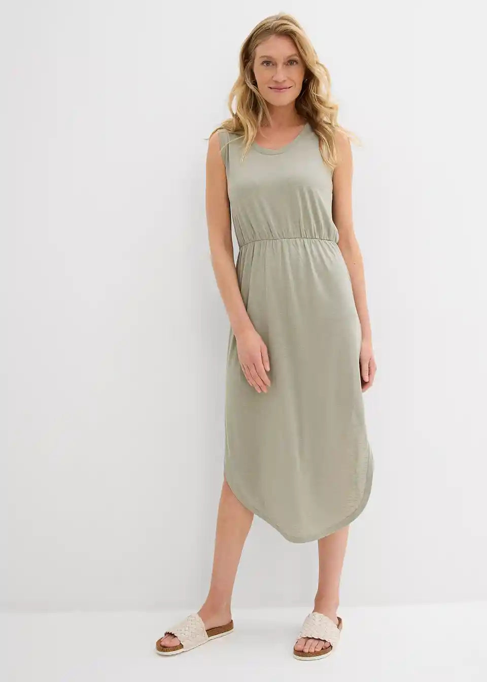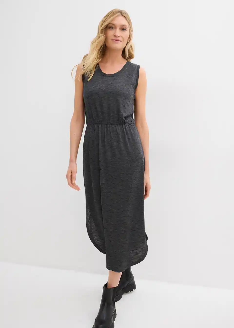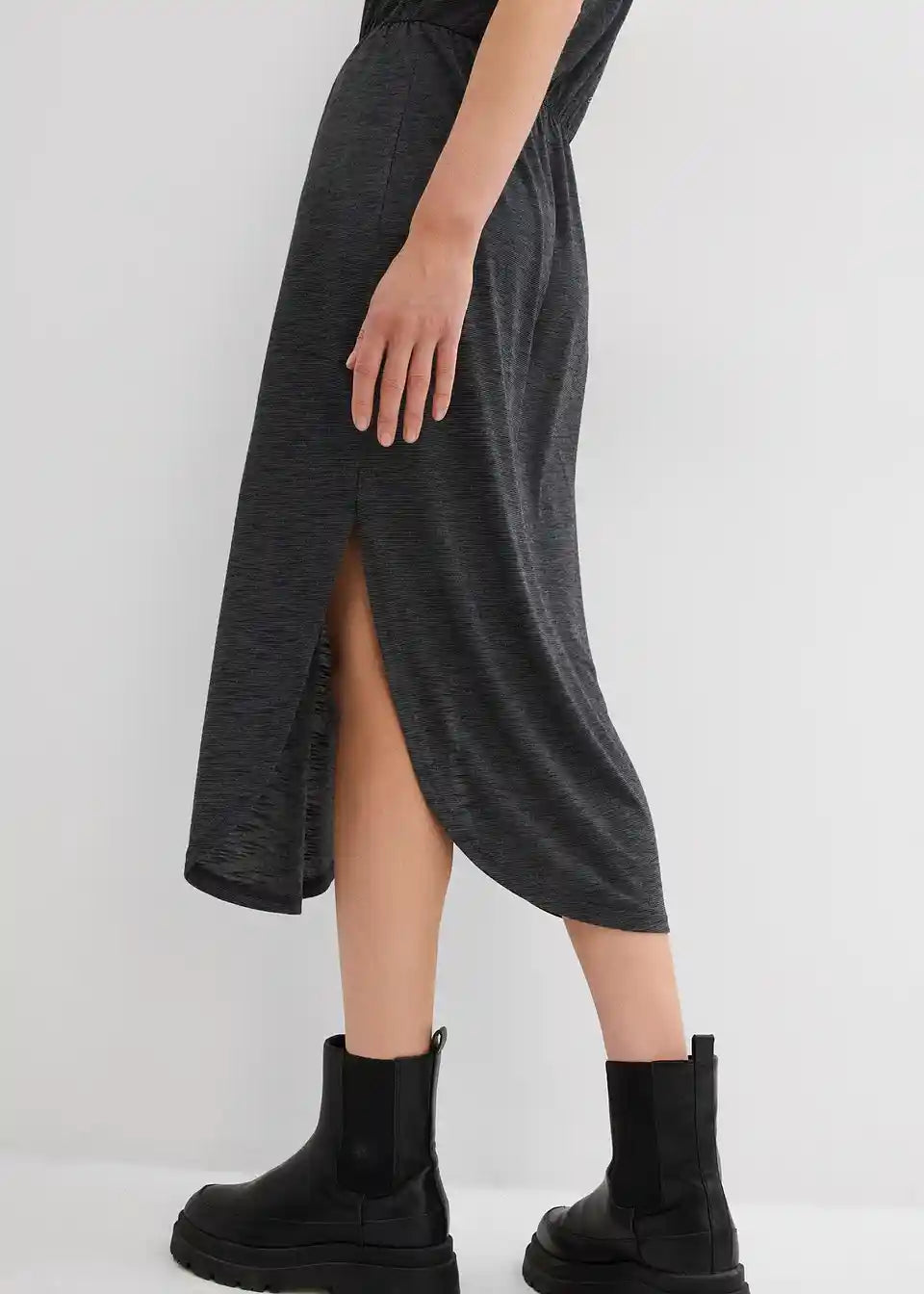 Jersey obleka z okroglim izrezom, ohlapnim in udobnim krojem ter zaobljenim robom
