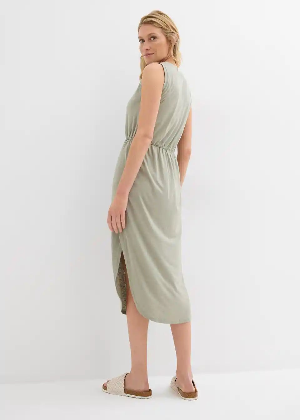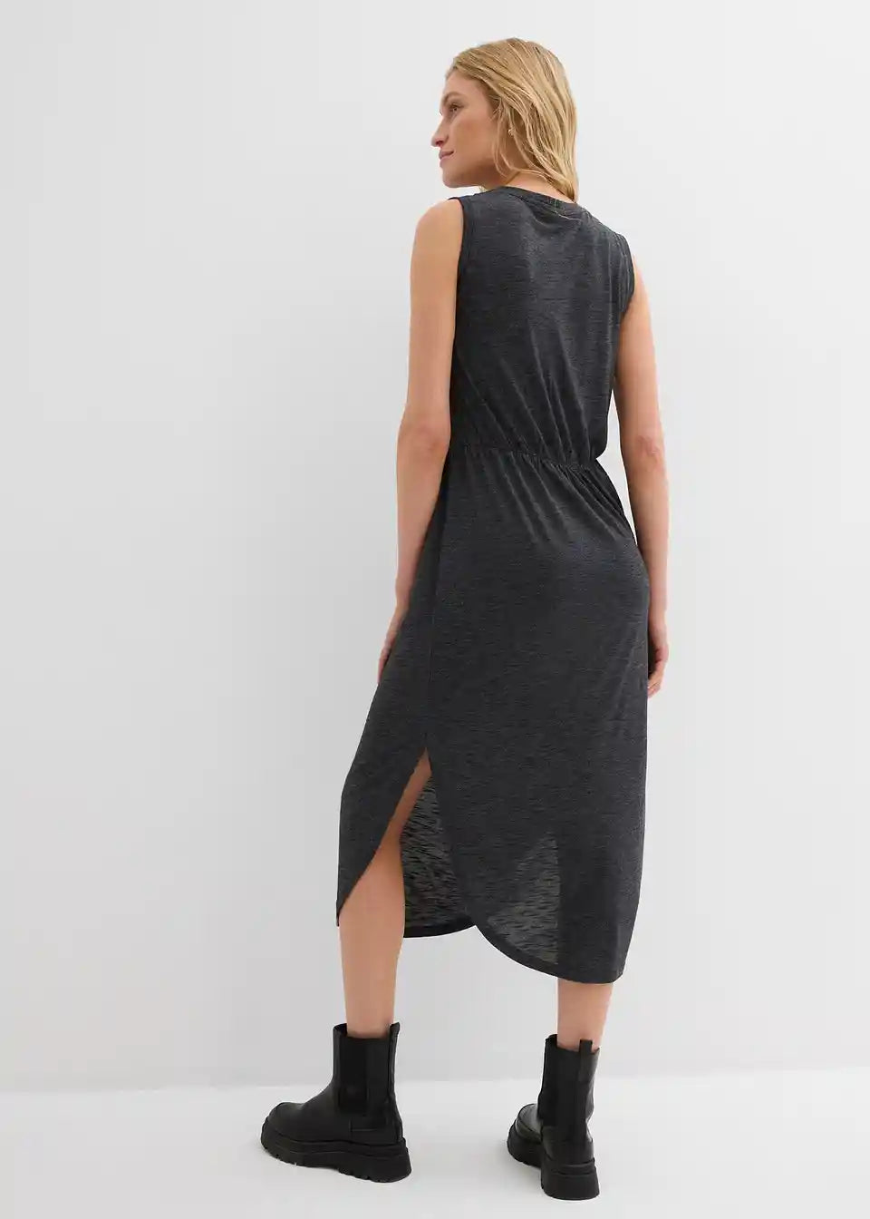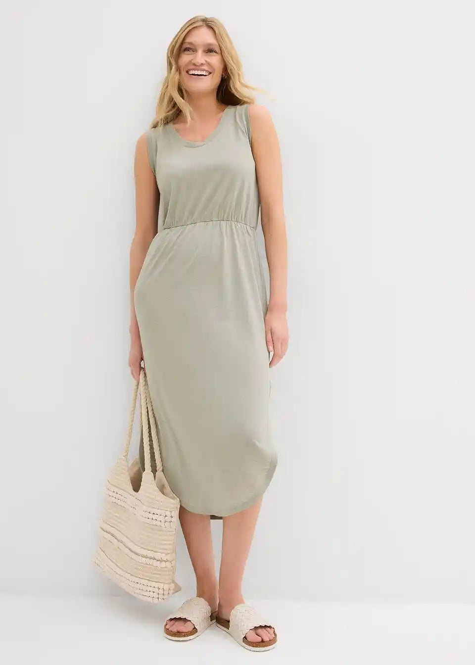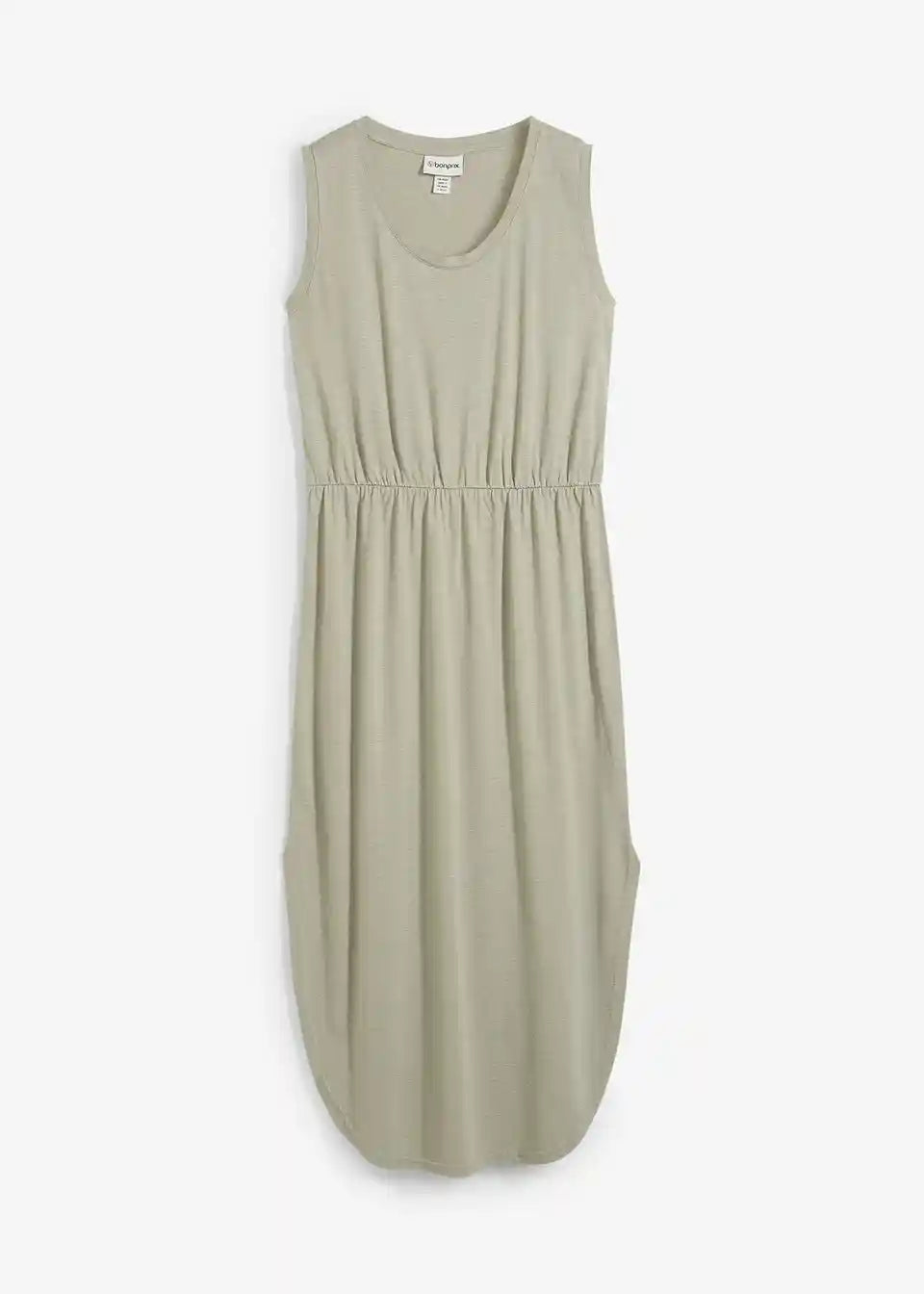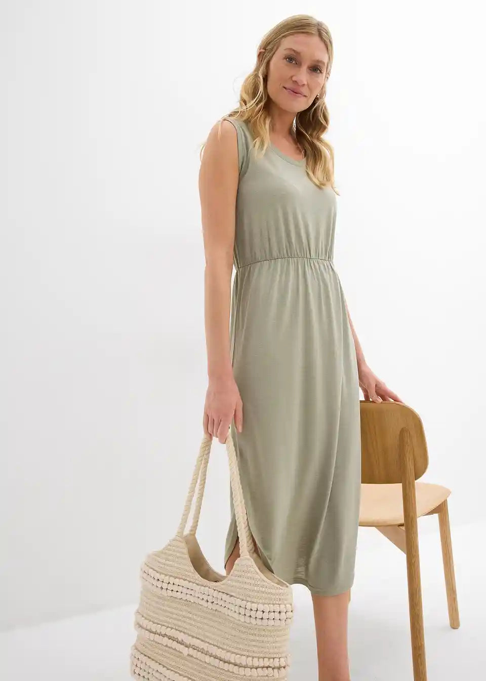Jersey obleka z okroglim izrezom, ohlapnim in udobnim krojem ter zaobljenim robom