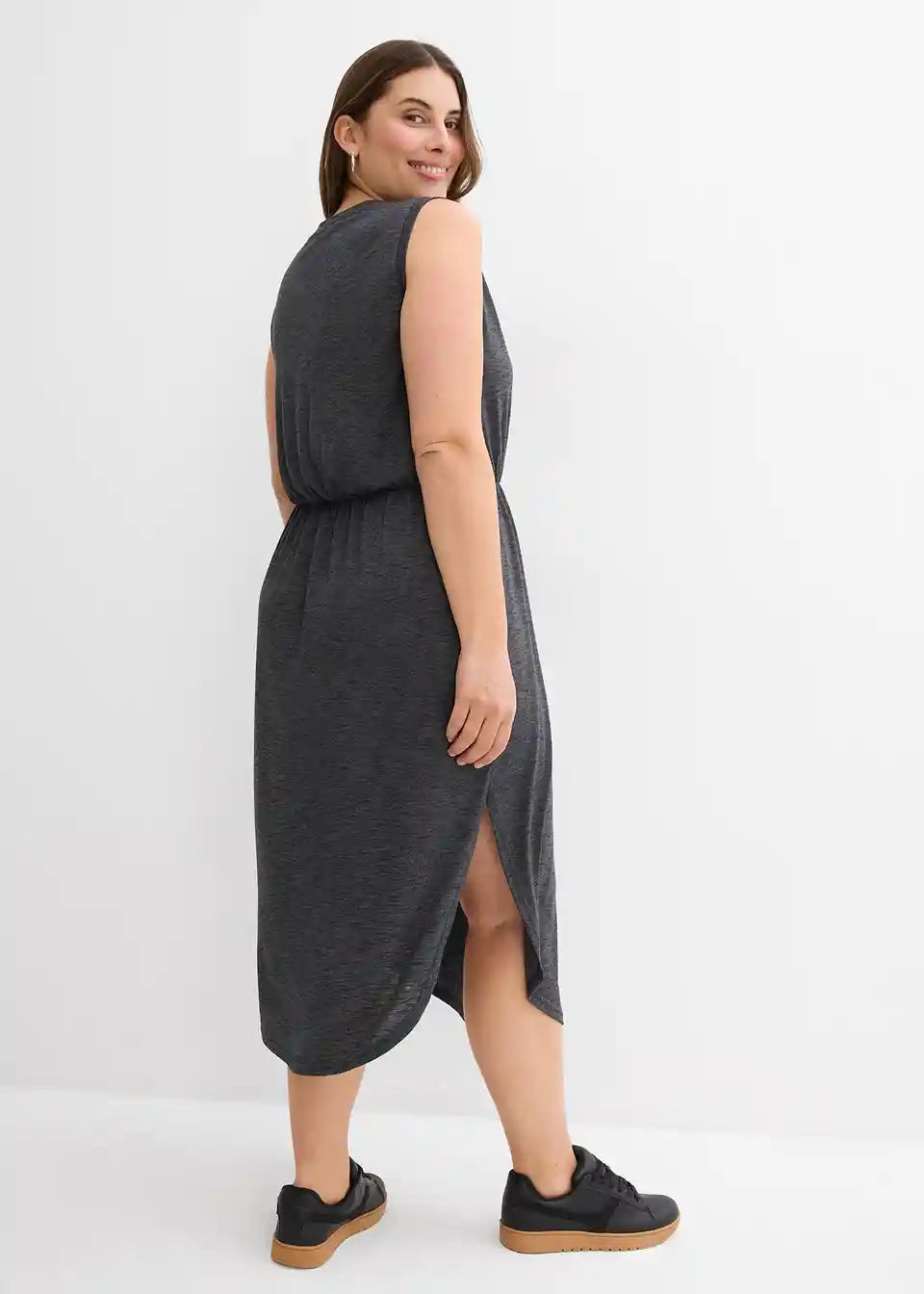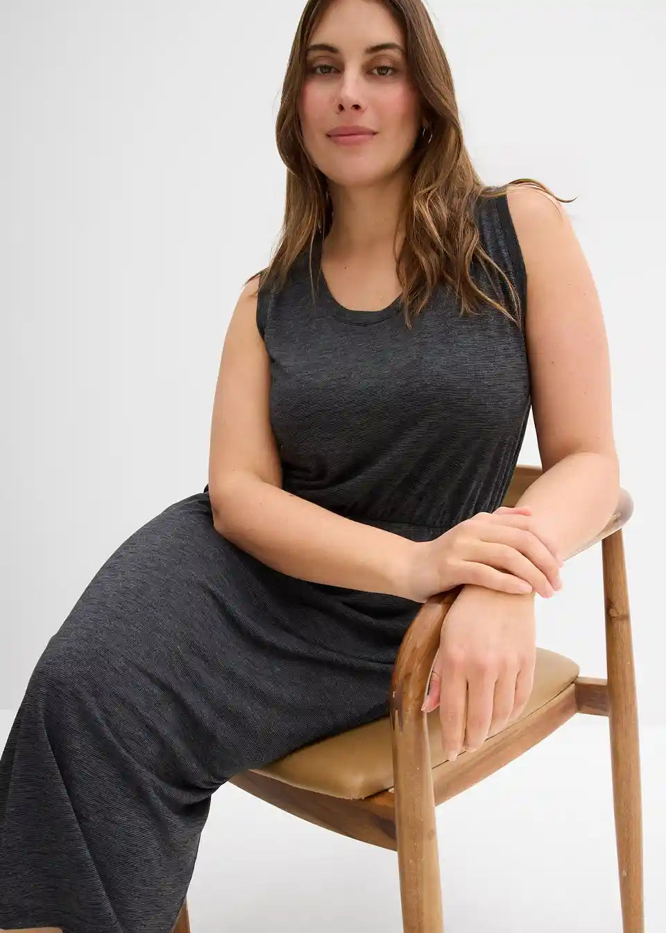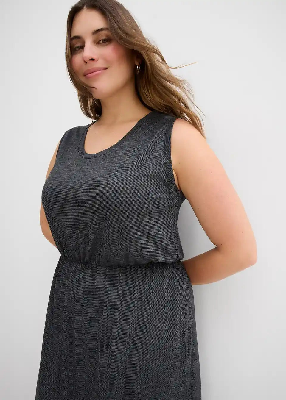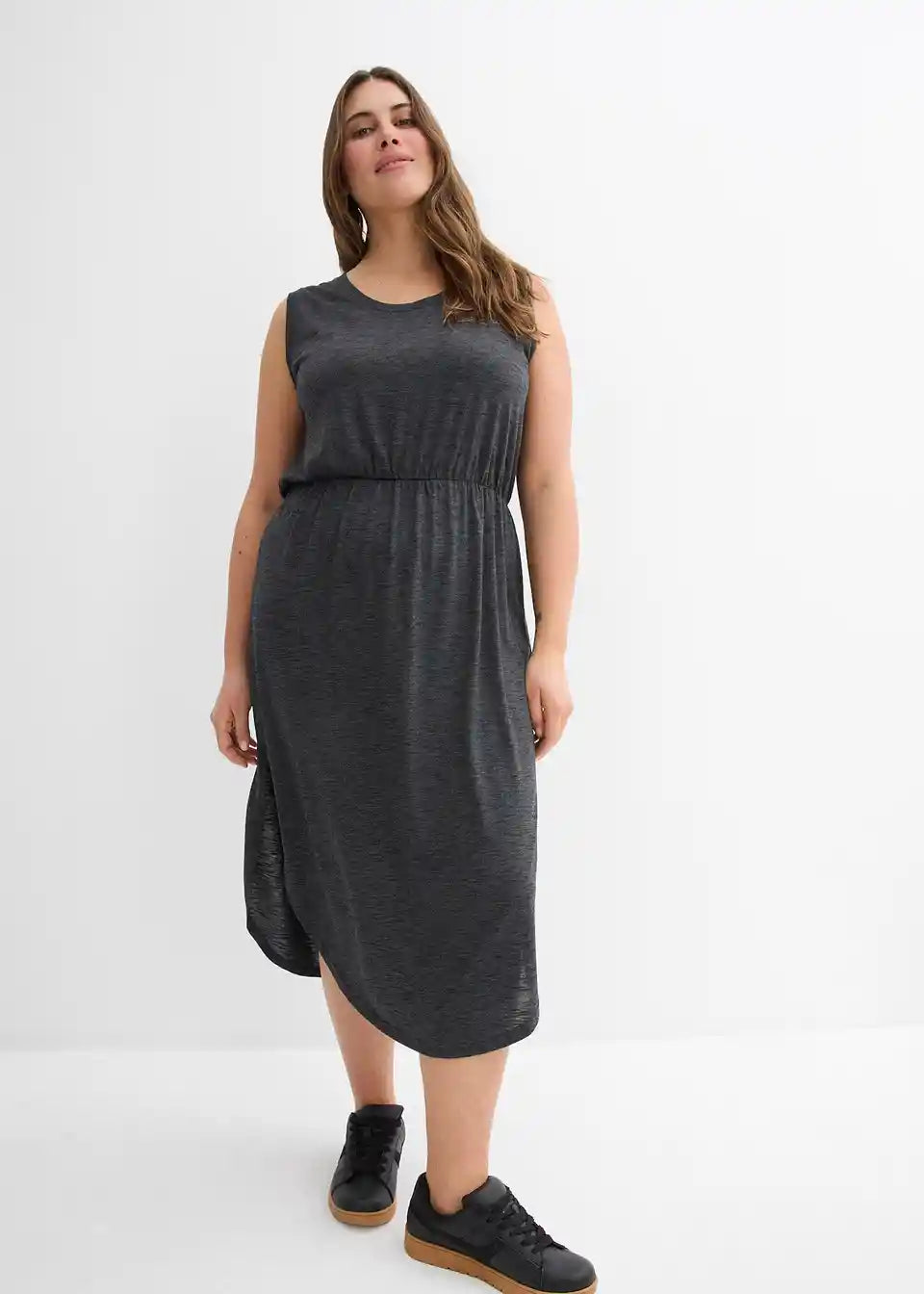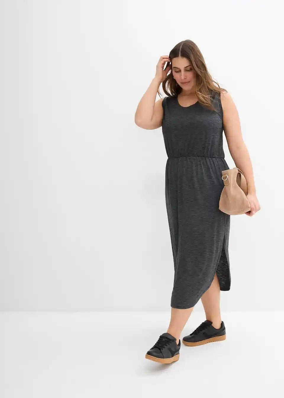 Jersey obleka z okroglim izrezom, ohlapnim in udobnim krojem ter zaobljenim robom