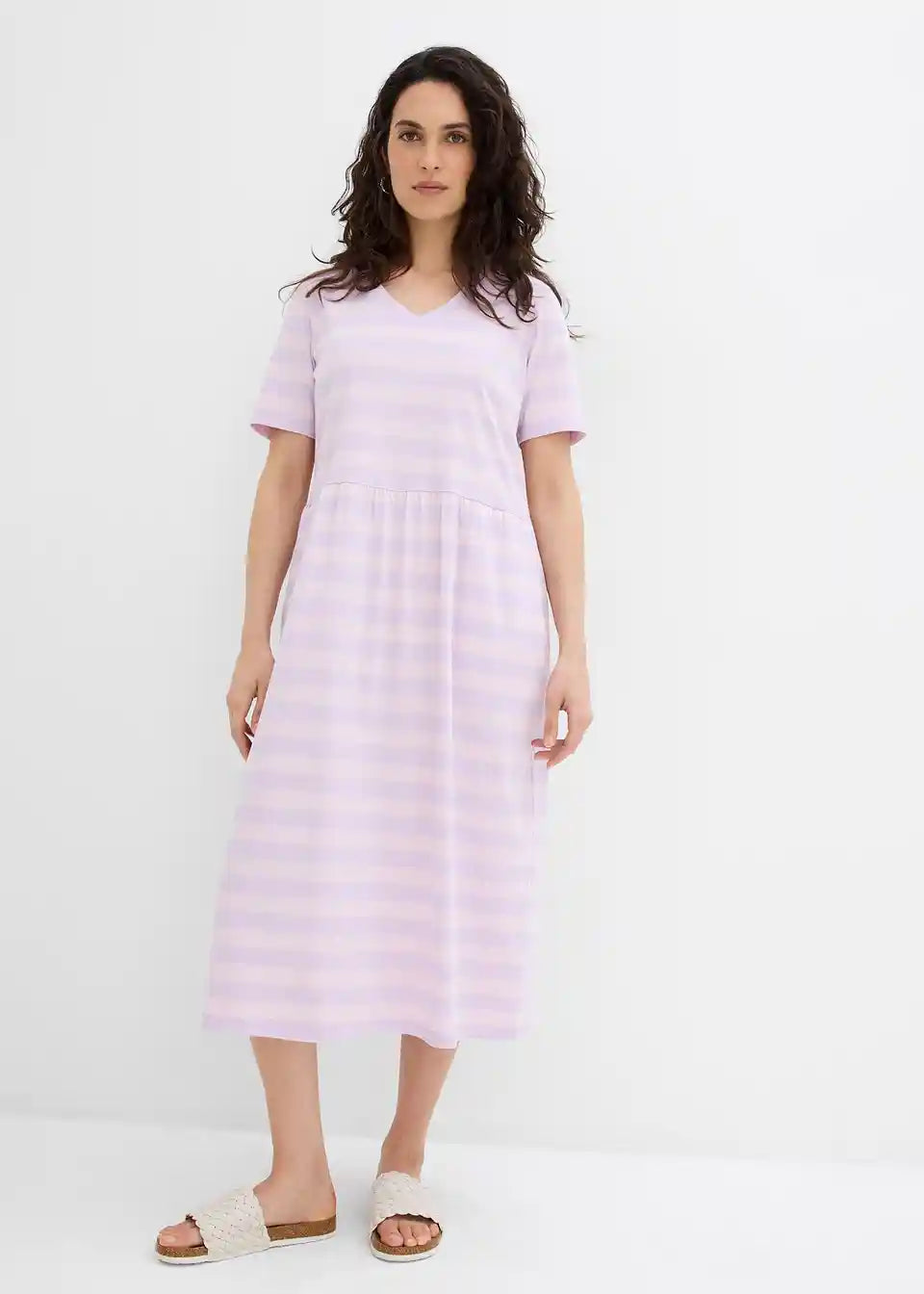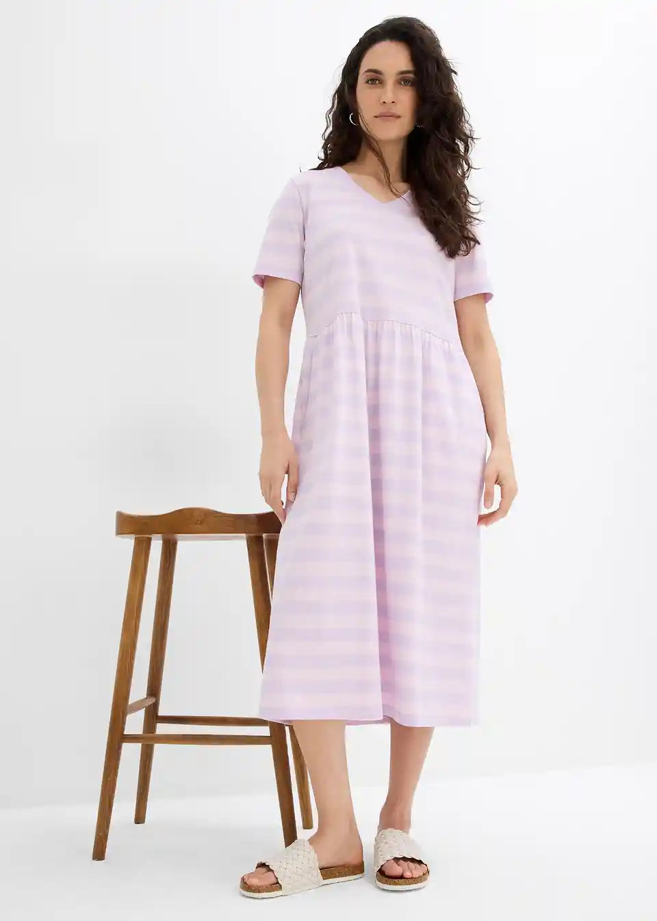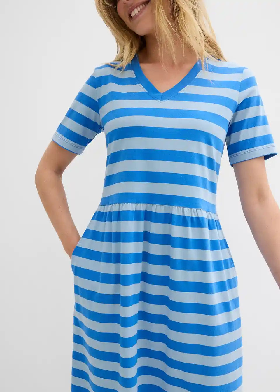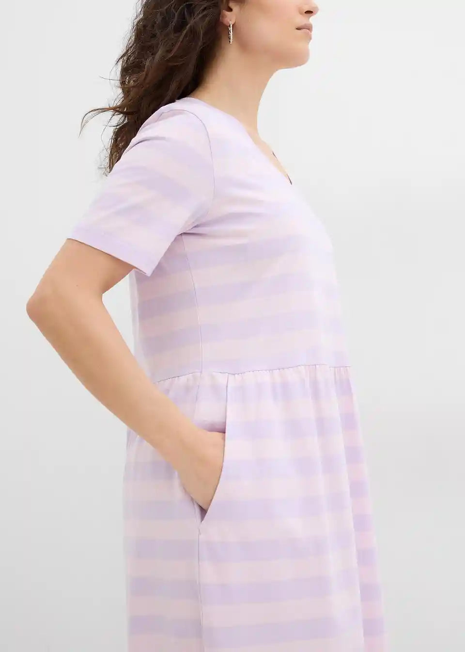 Jersey obleka z rahlo A-linijo in praktičnimi stranskimi žepi