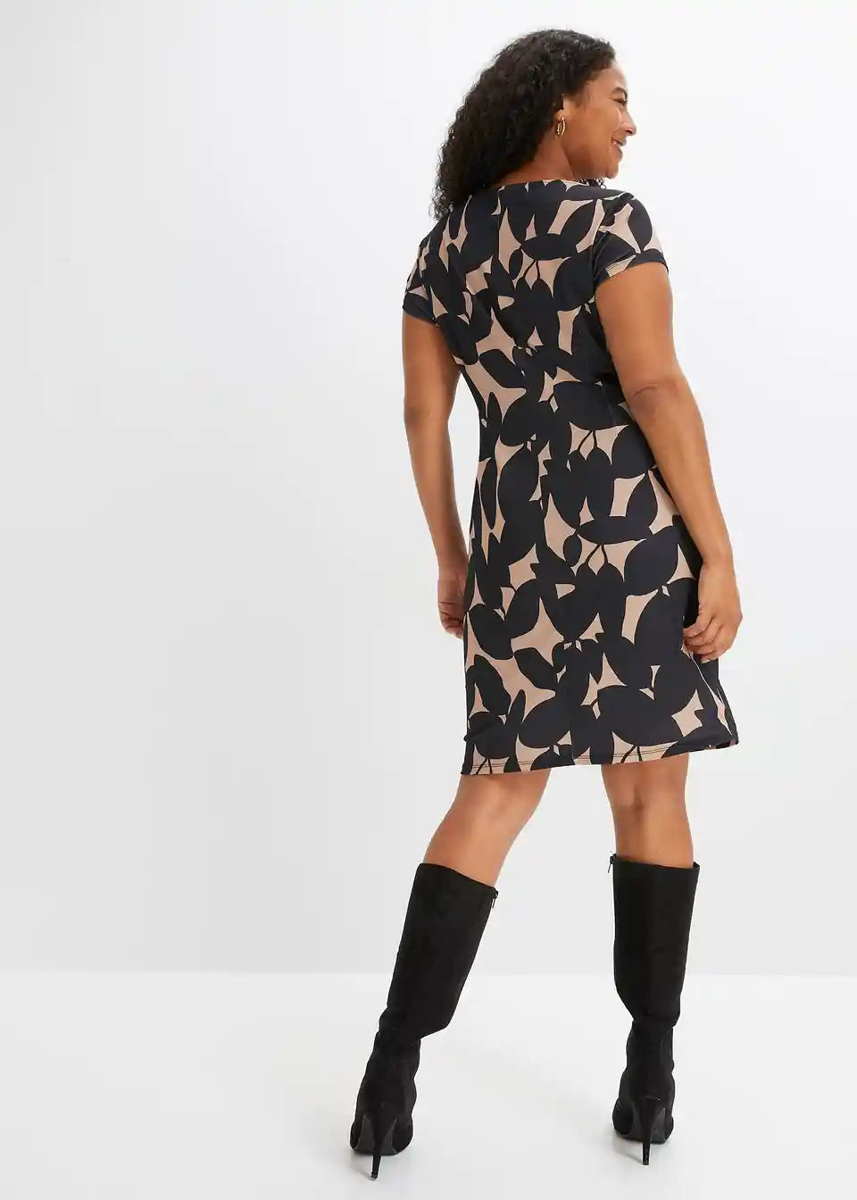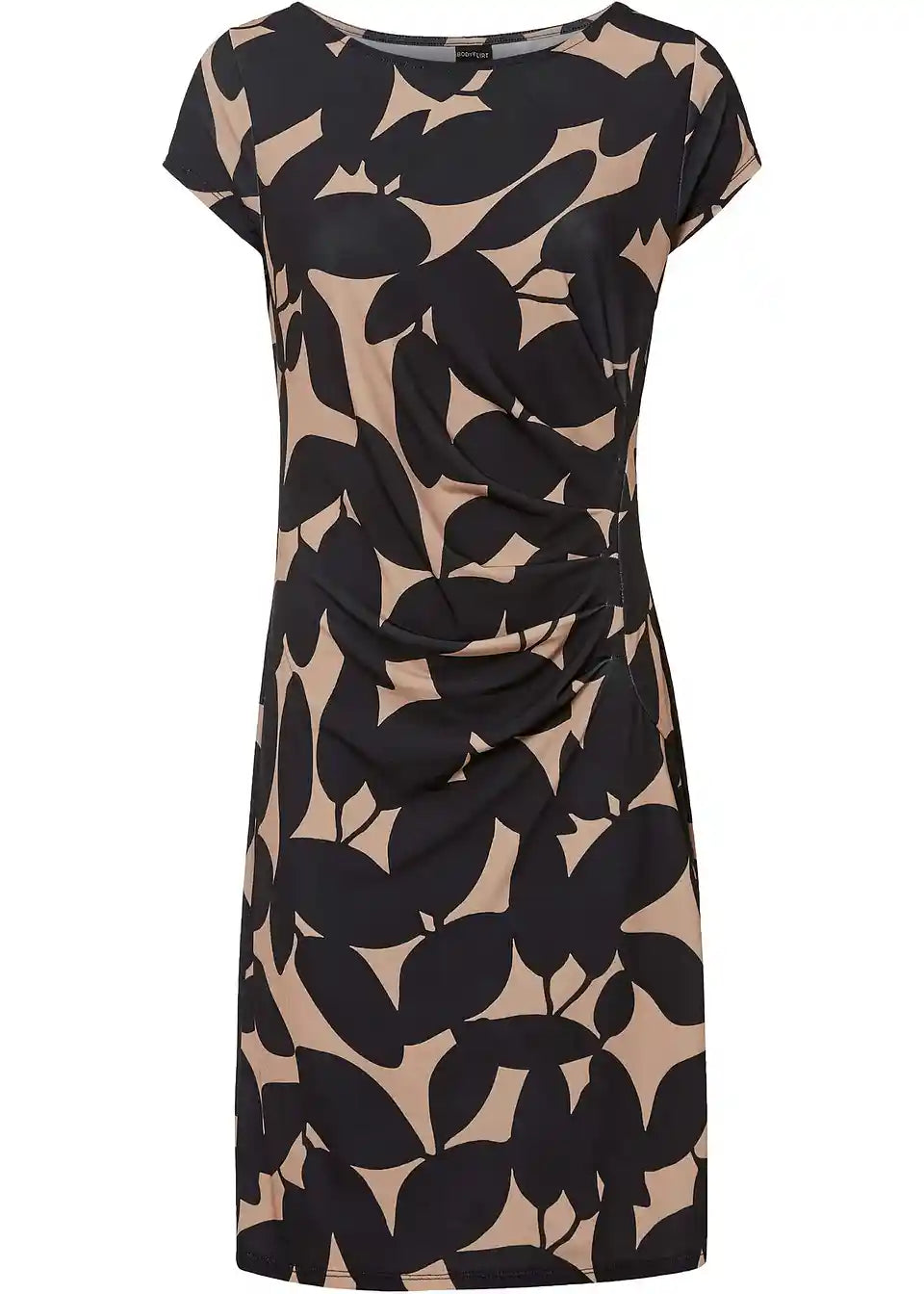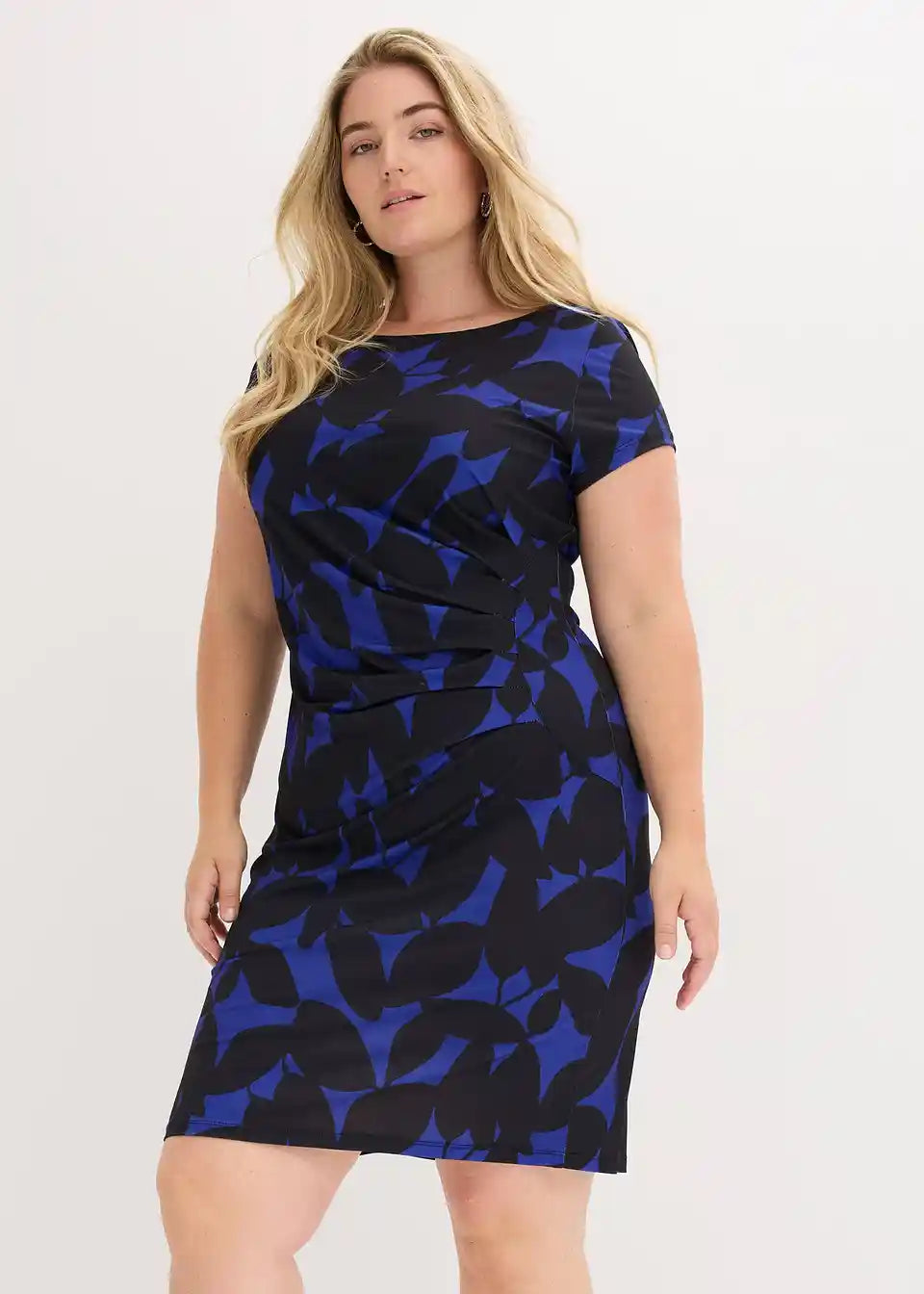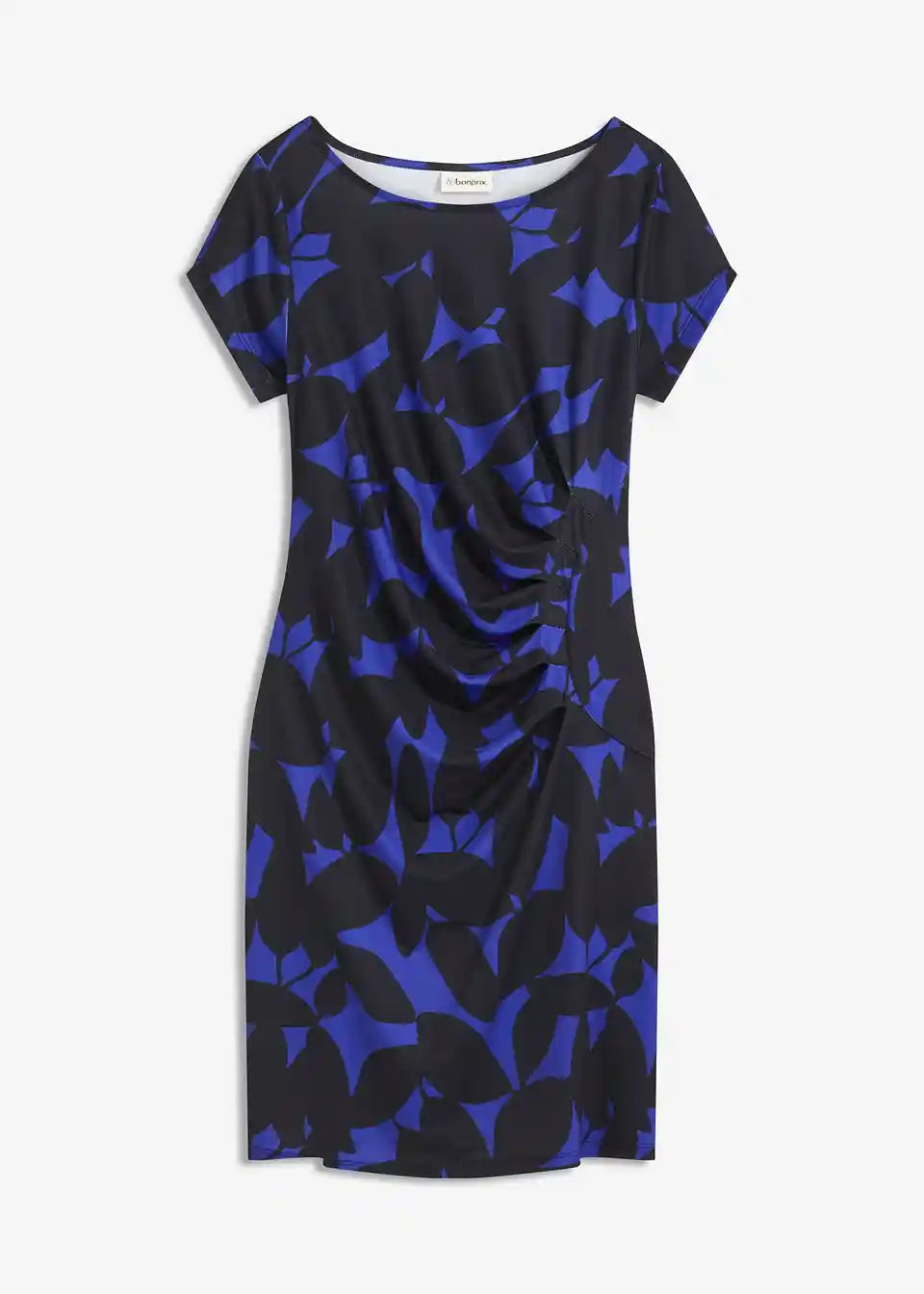 Lepa jersey obleka iz recikliranega poliestra z nabiranjem spredaj