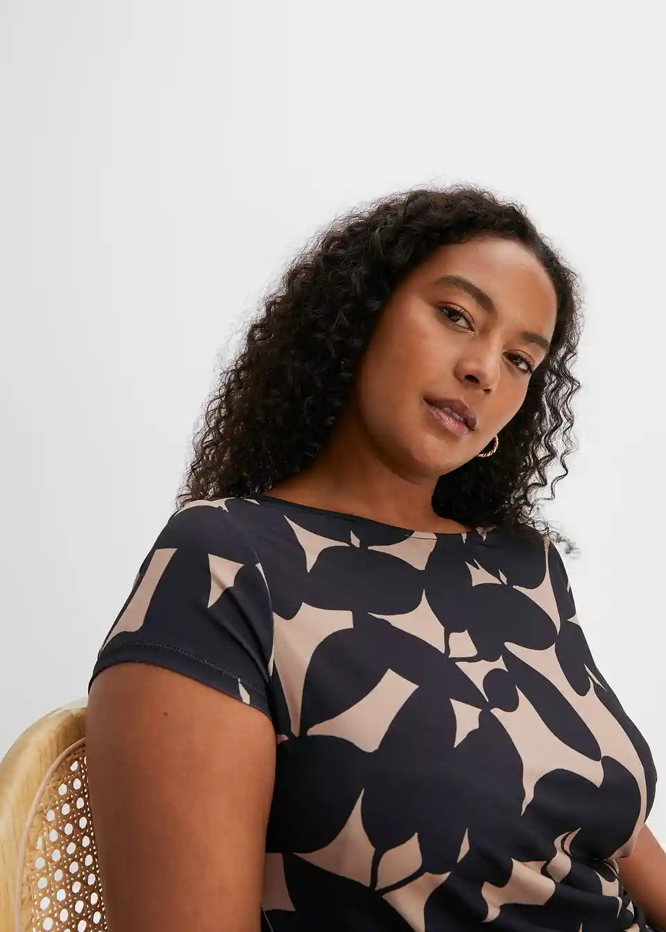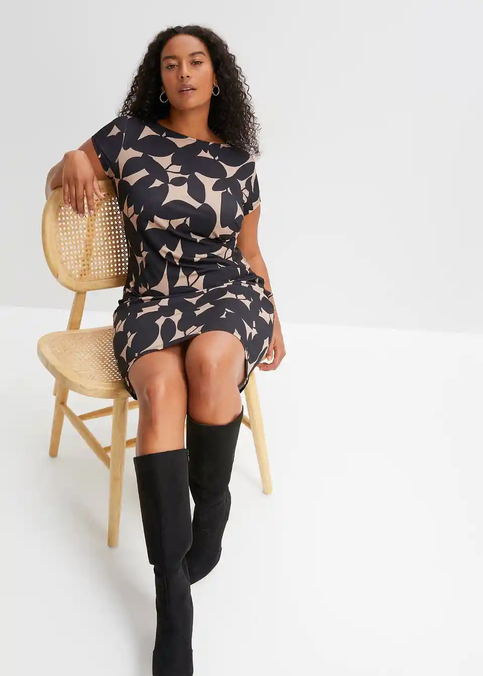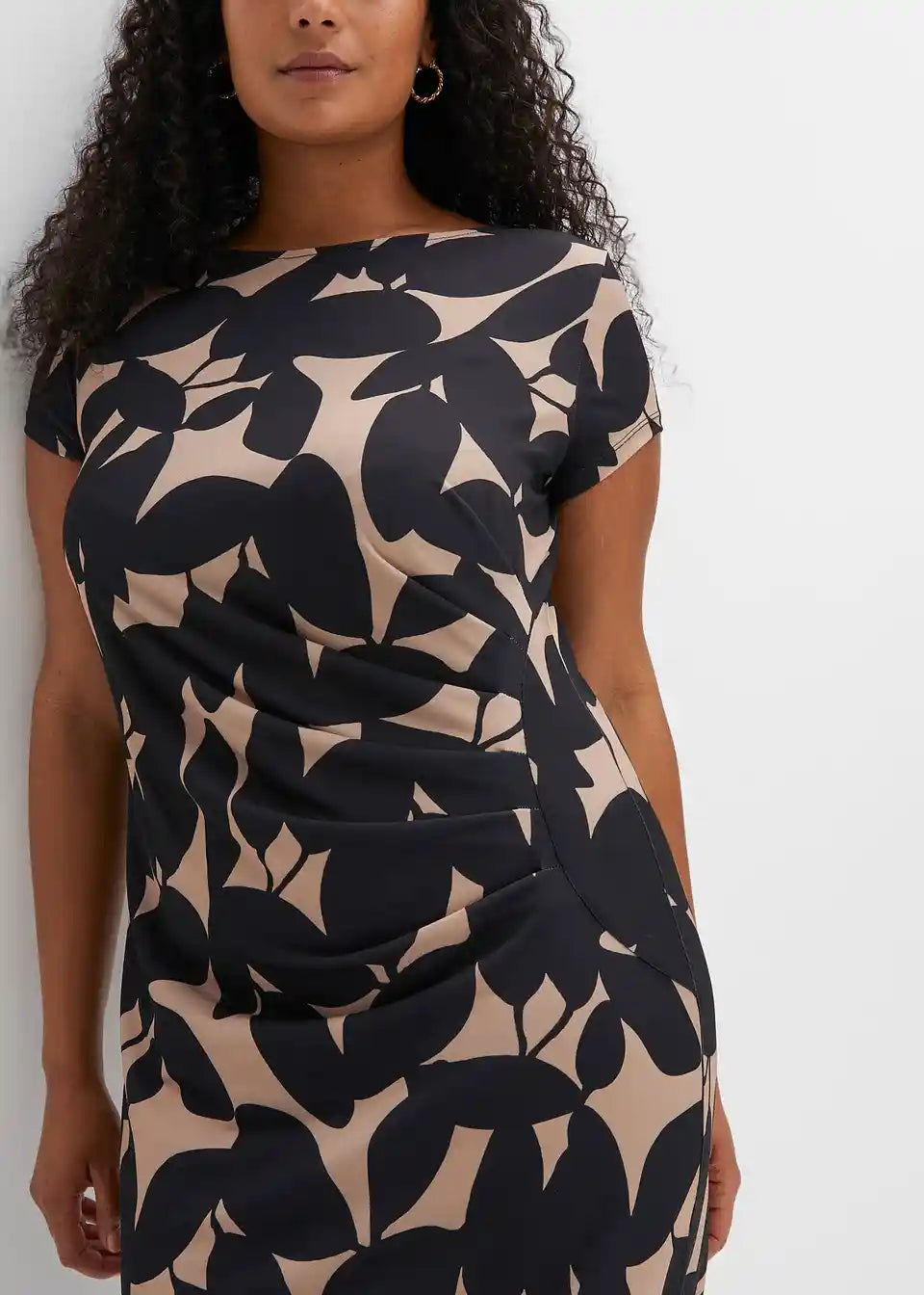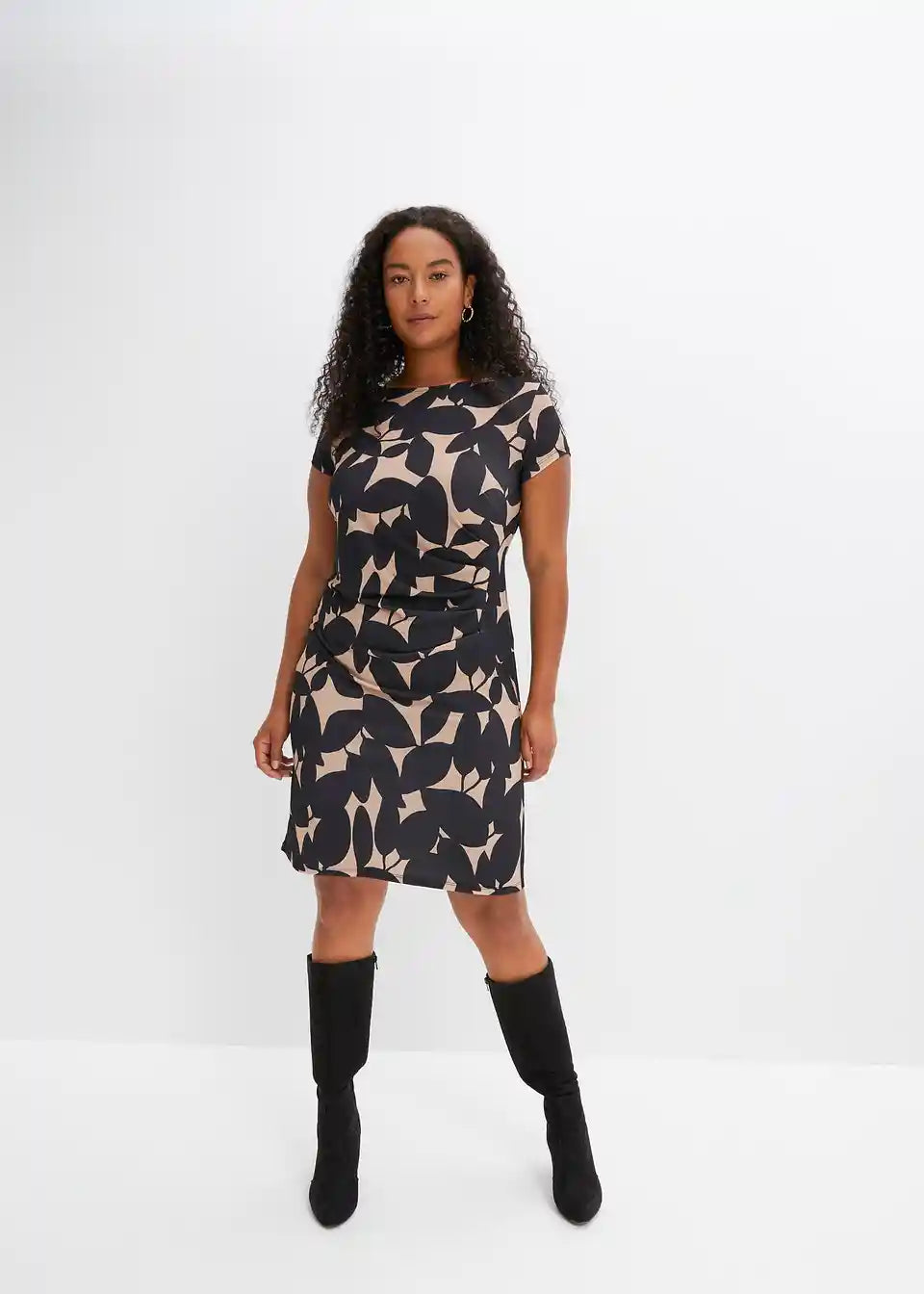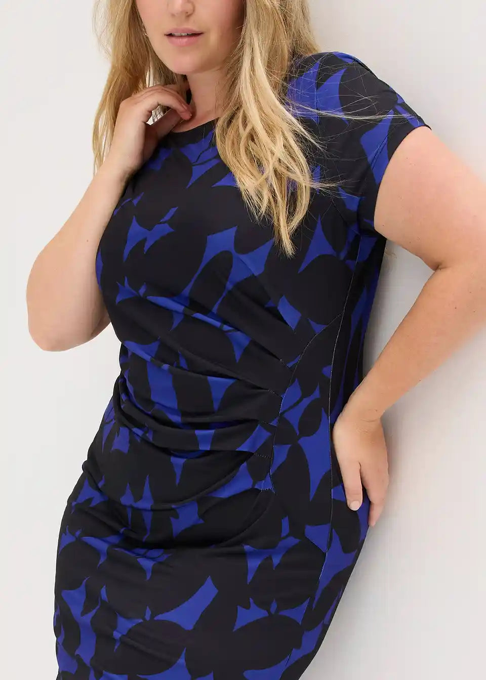 Lepa jersey obleka iz recikliranega poliestra z nabiranjem spredaj