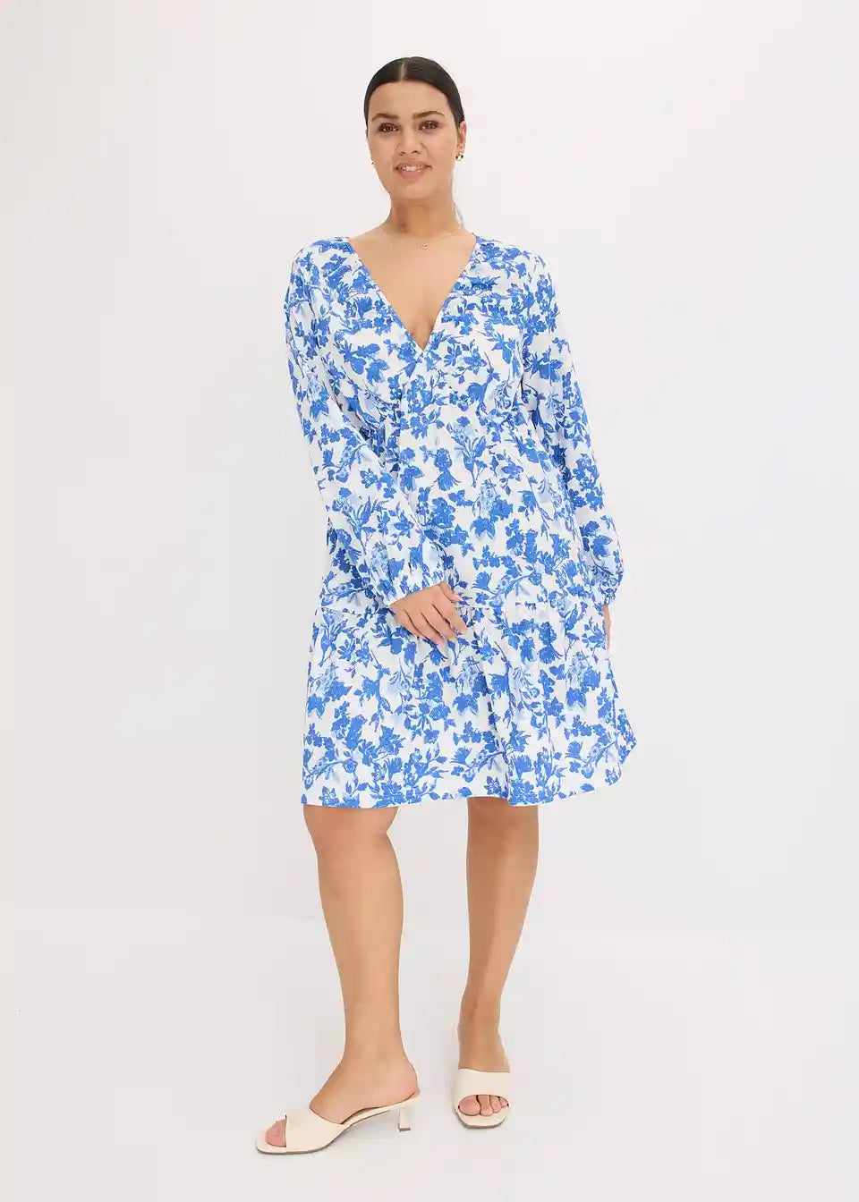 Midi obleka iz mehkega jerseya z majhnimi naborki