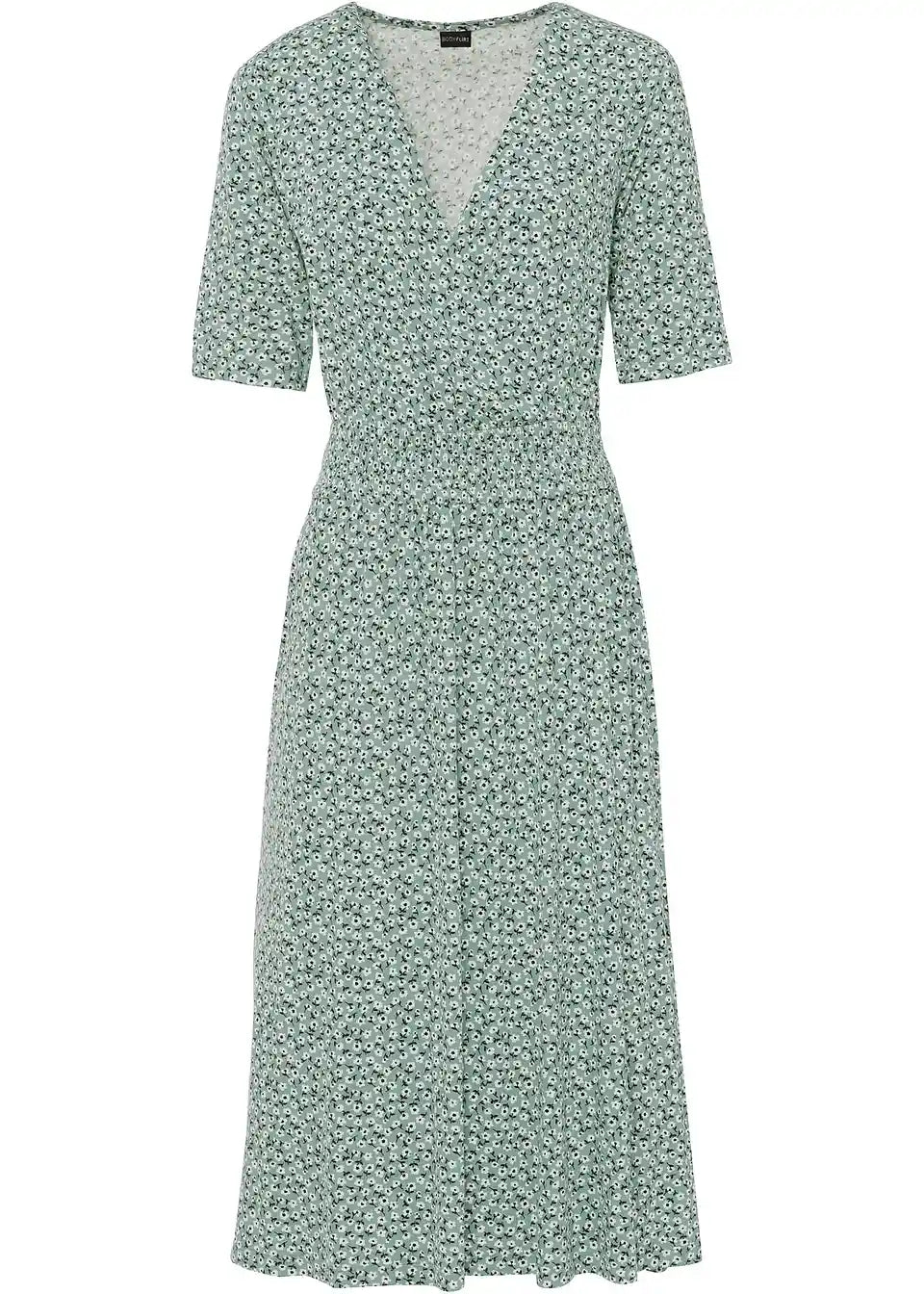 Poletna Jersey obleka iz trajnostne viskoze z elastičnim pasom v predelu pasu.