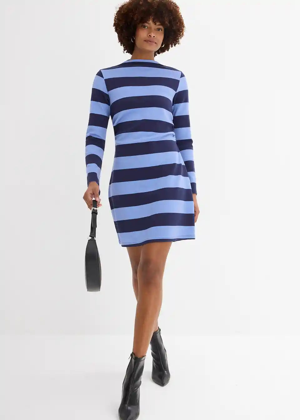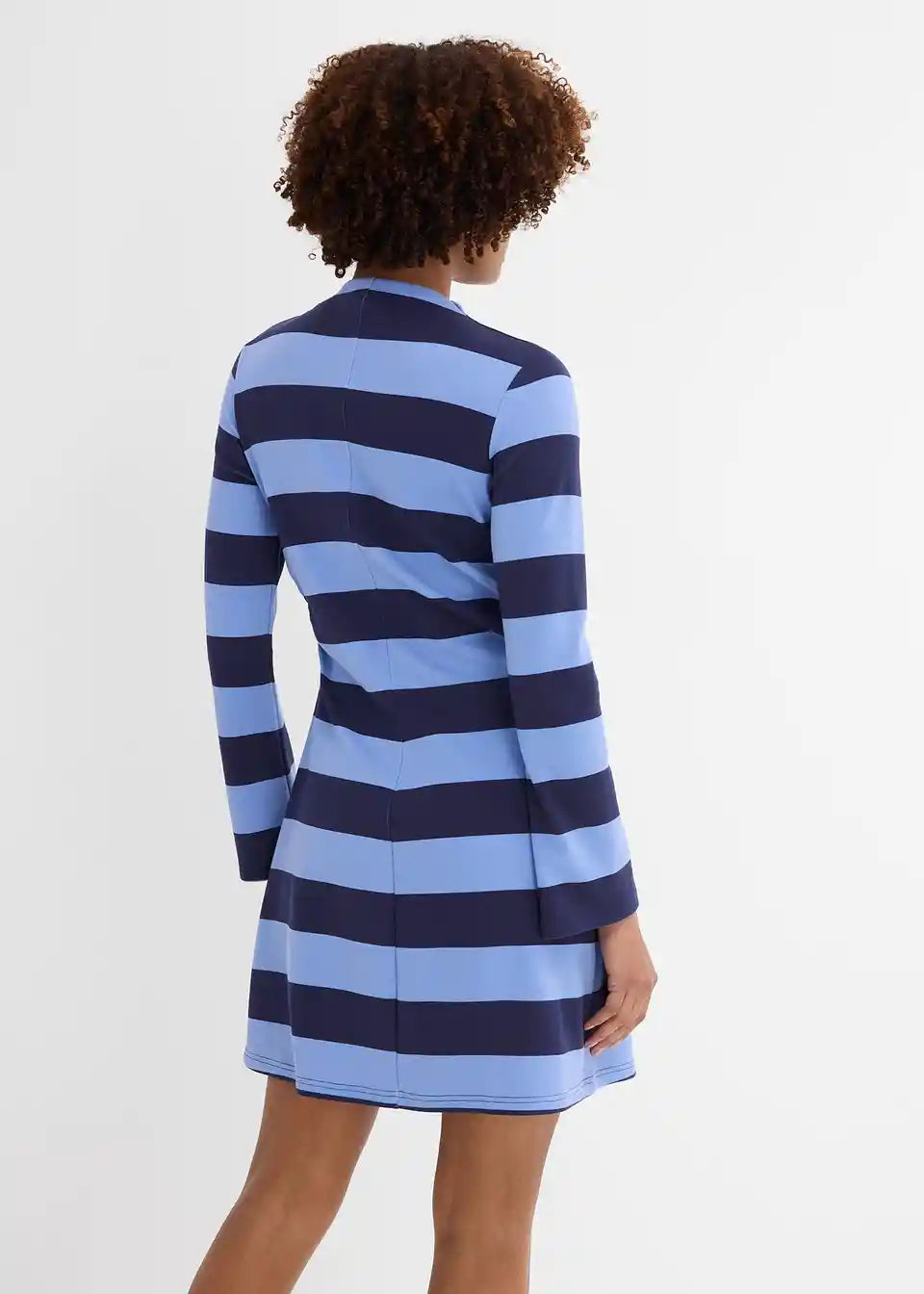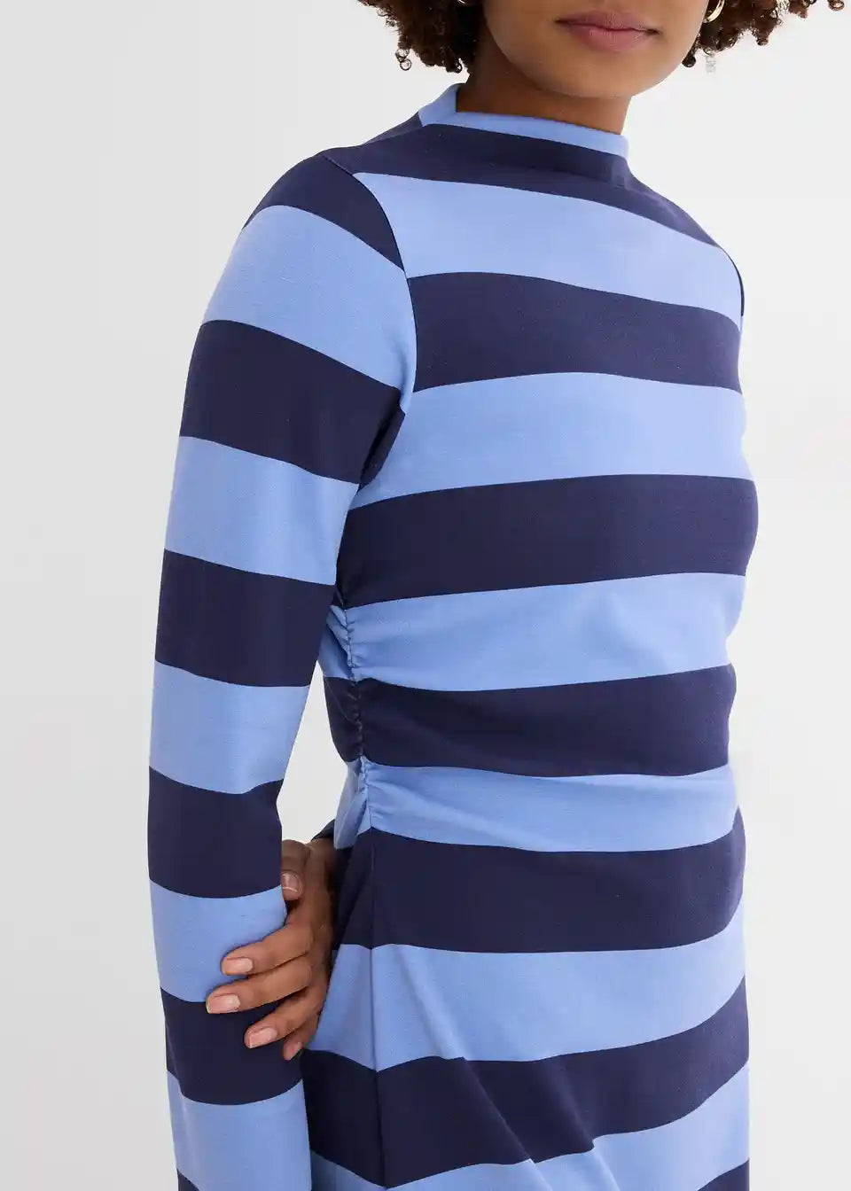 Modna Jersey obleka s stoječim ovratnikom in stranskim nabiranjem