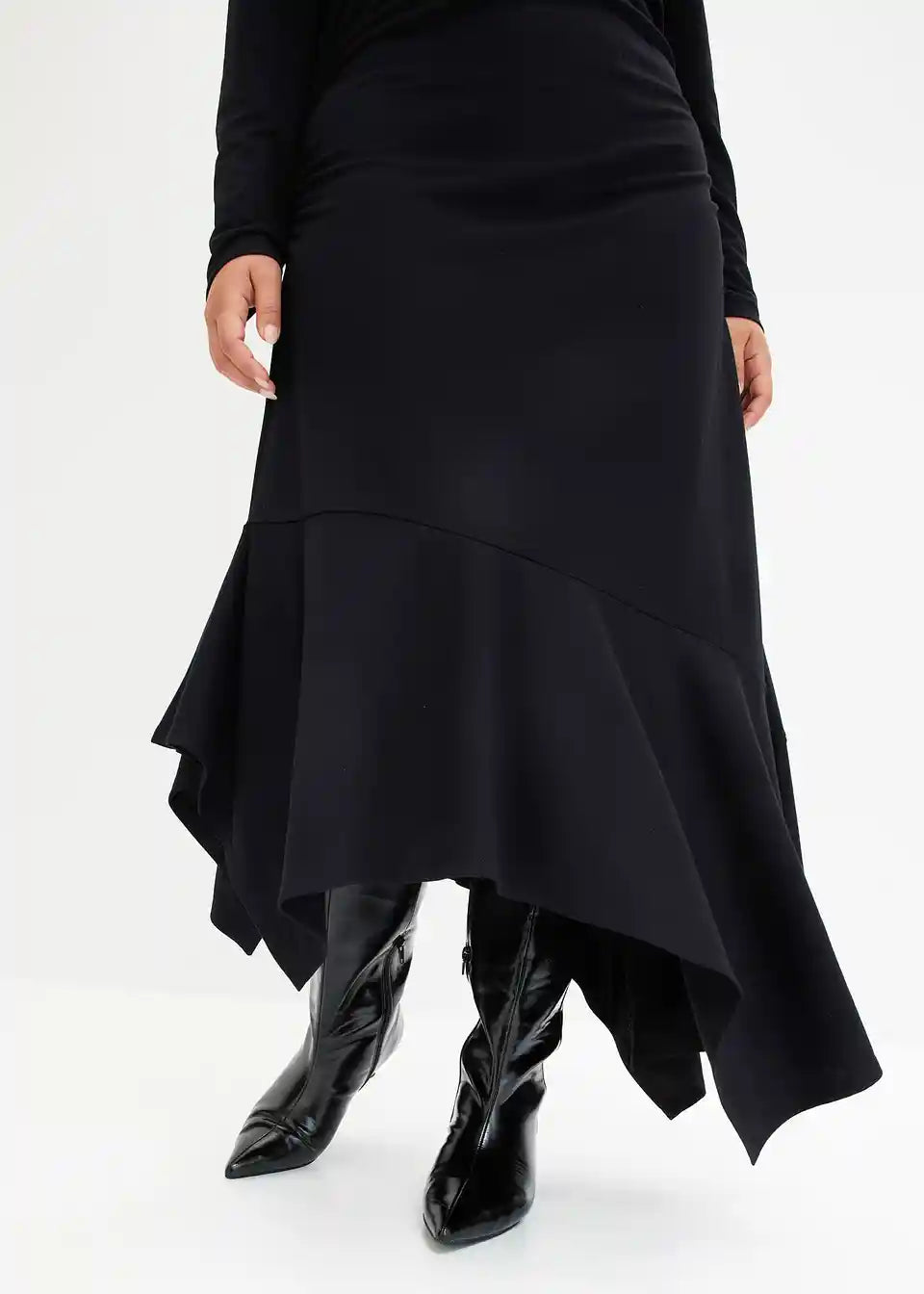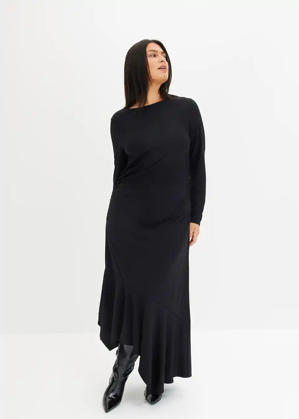 Jersey obleka z asimetričnim robom in dolgimi rokavi