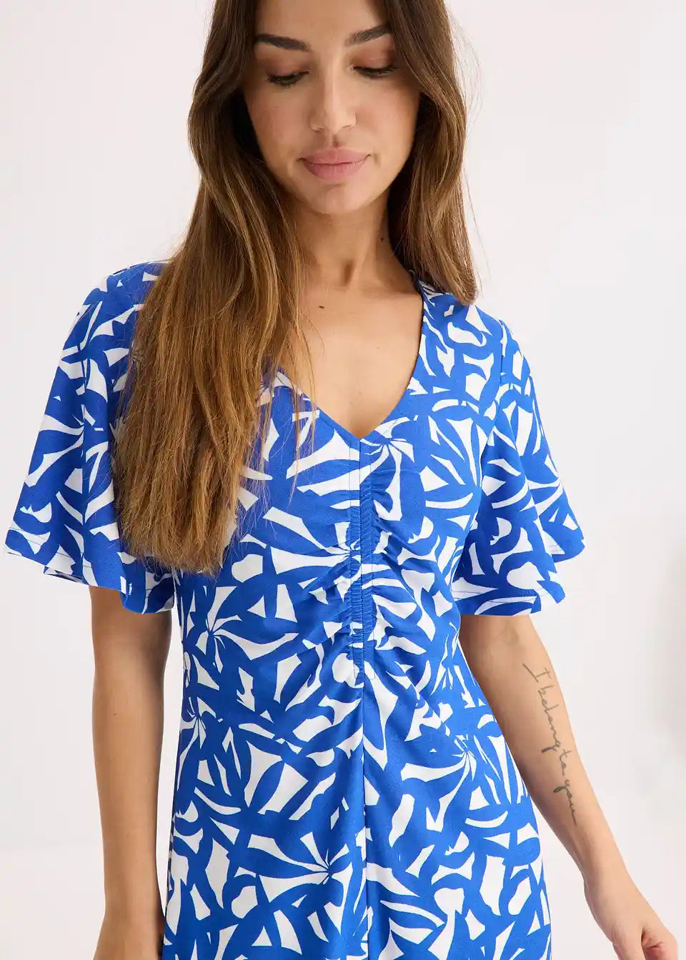 Lepa poletna obleka s širokimi rokavi in naborki ob izrezu