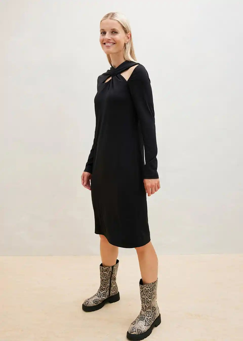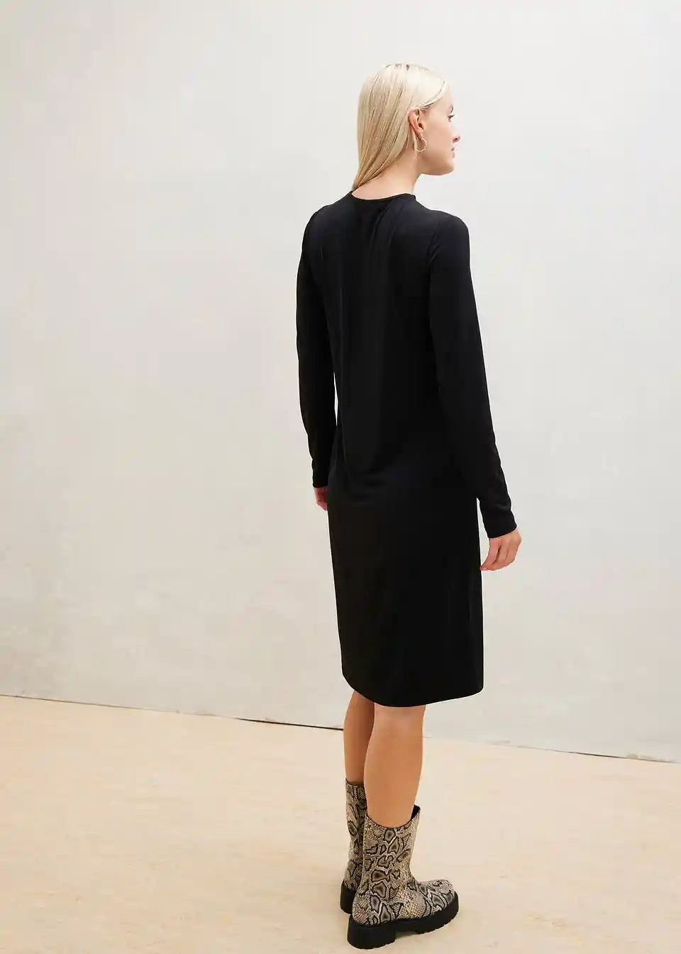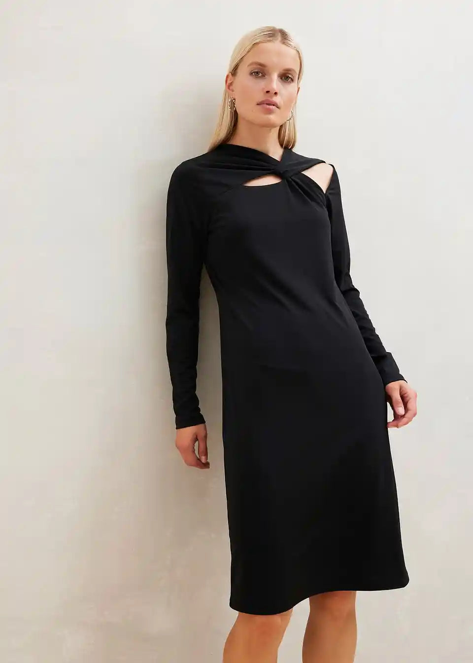 Obleka iz jerseyja z izrezom