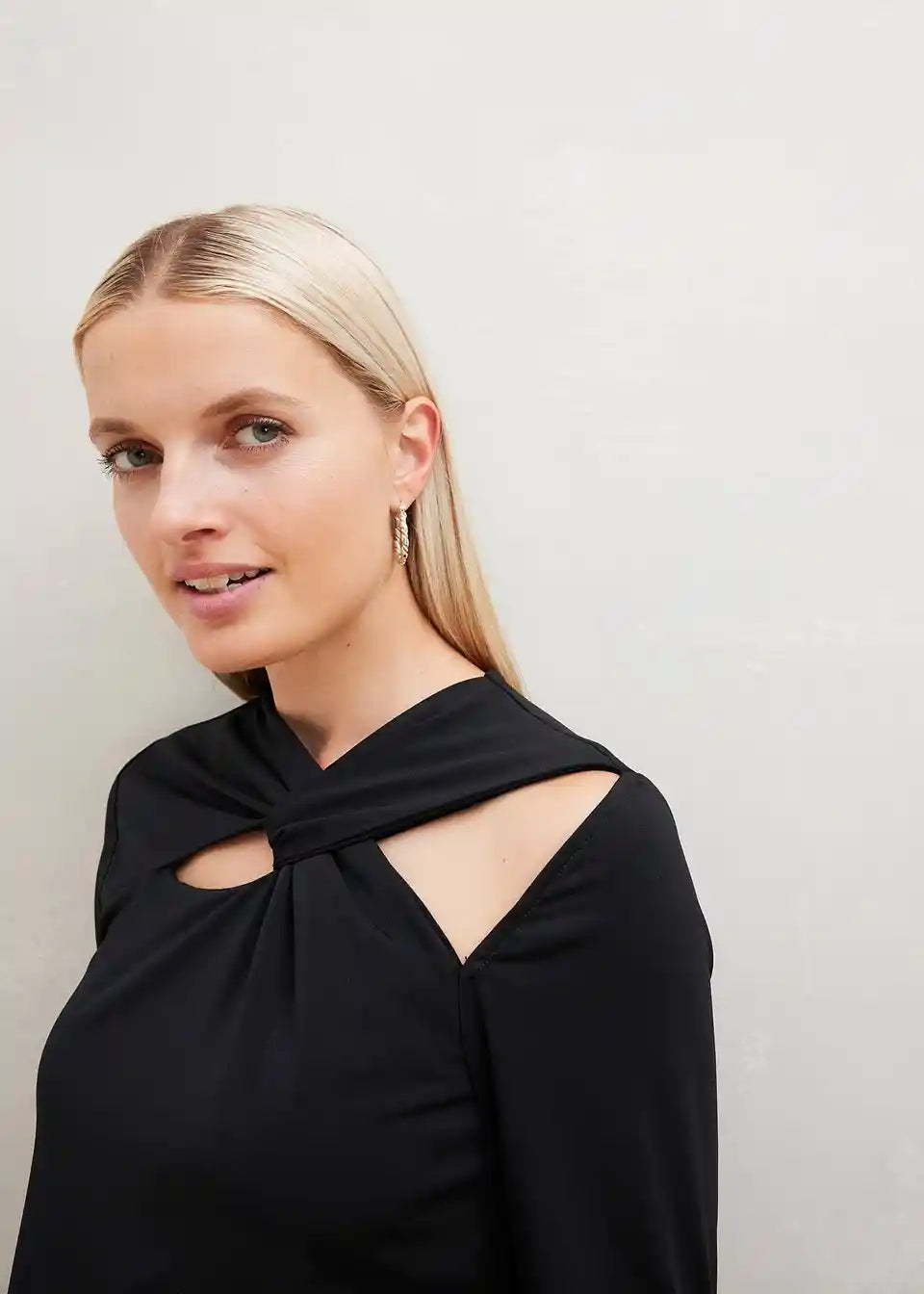 Ženska jersey obleka z odličnim izrezom in zavitim učinkom.