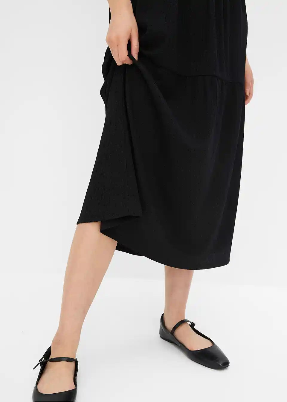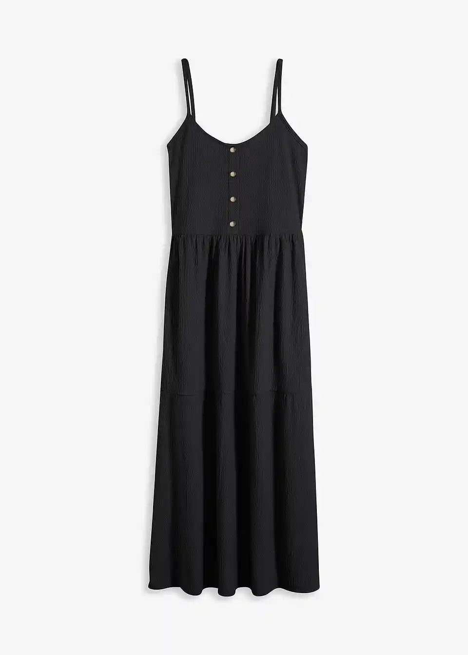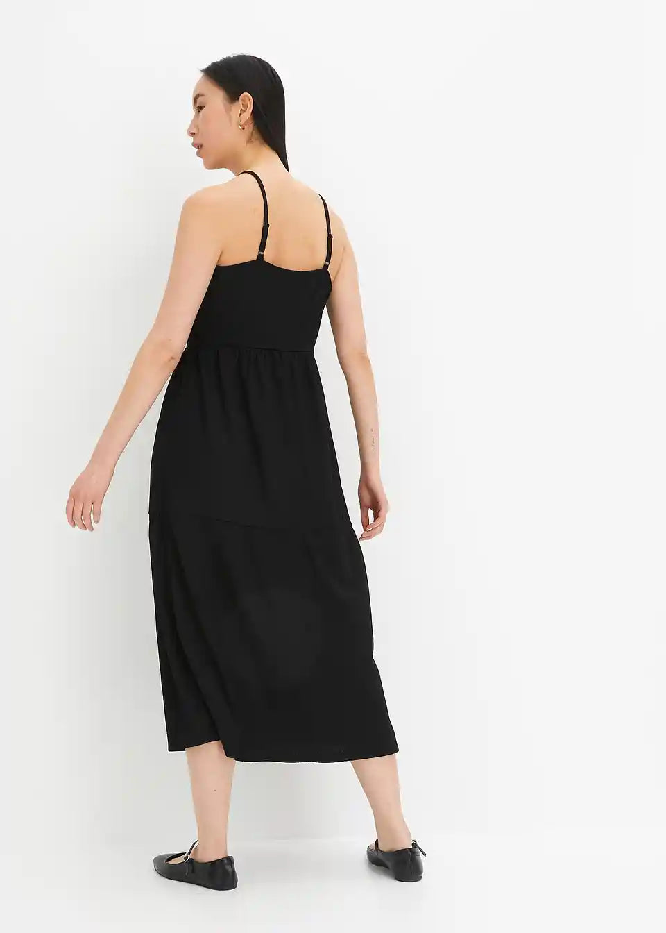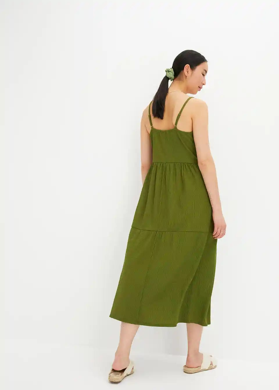 Obleka z volani iz jerseyja z okrasno letvijo za zapenjanje z gumbi
