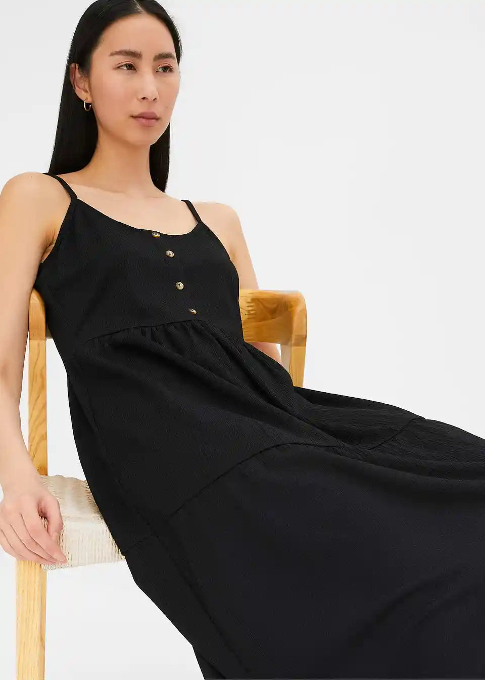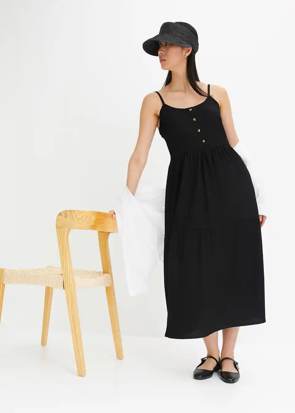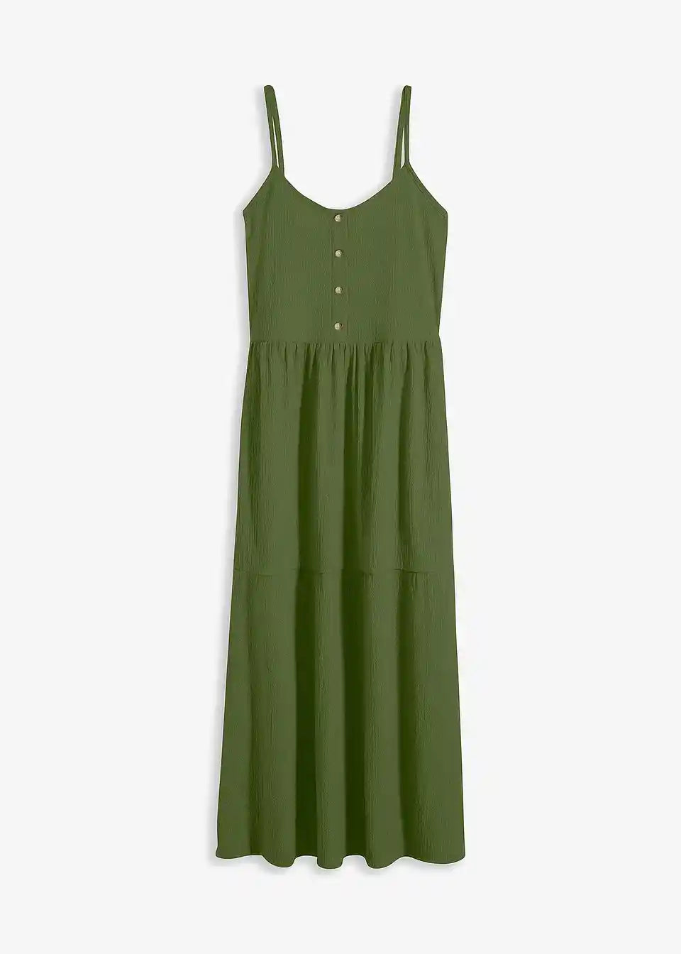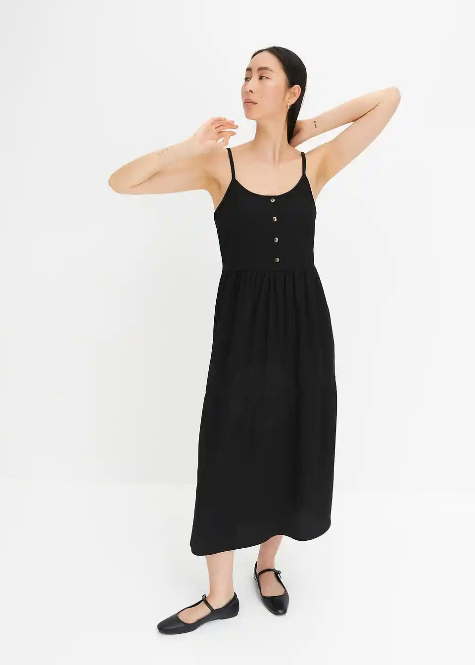 Obleka z volani iz jerseyja z okrasno letvijo za zapenjanje z gumbi