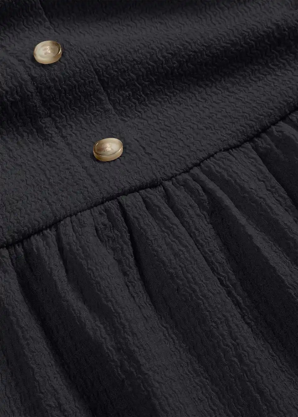 Jersey-obleka z volančki in dekorativnimi gumbi