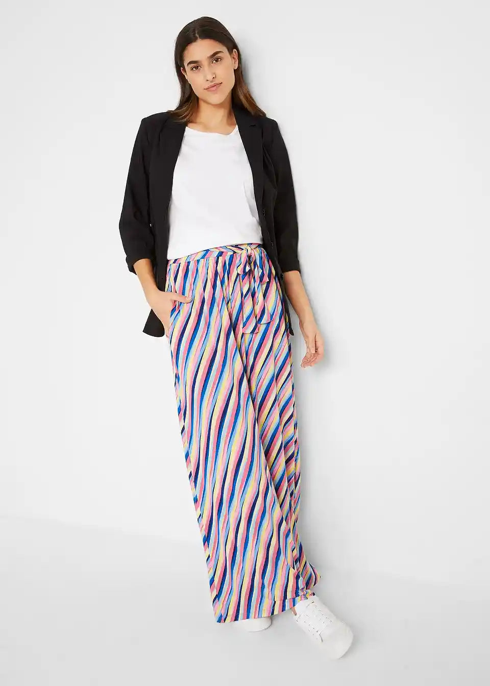 Palazzo hlače iz jerseyja z udobnim pasom in stranskimi žepi