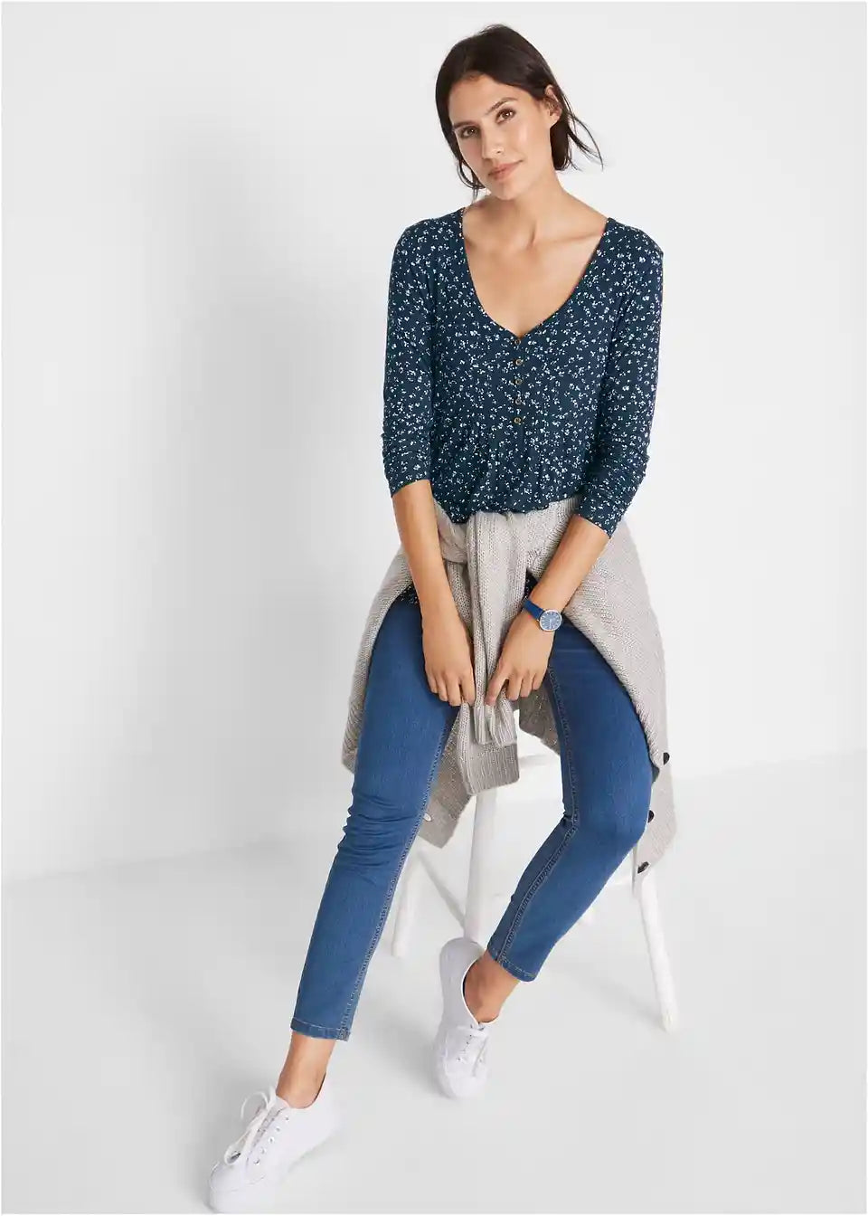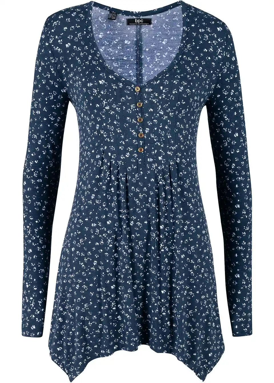 Majica iz jerseyja s koničastim robom in dolgimi rokavi