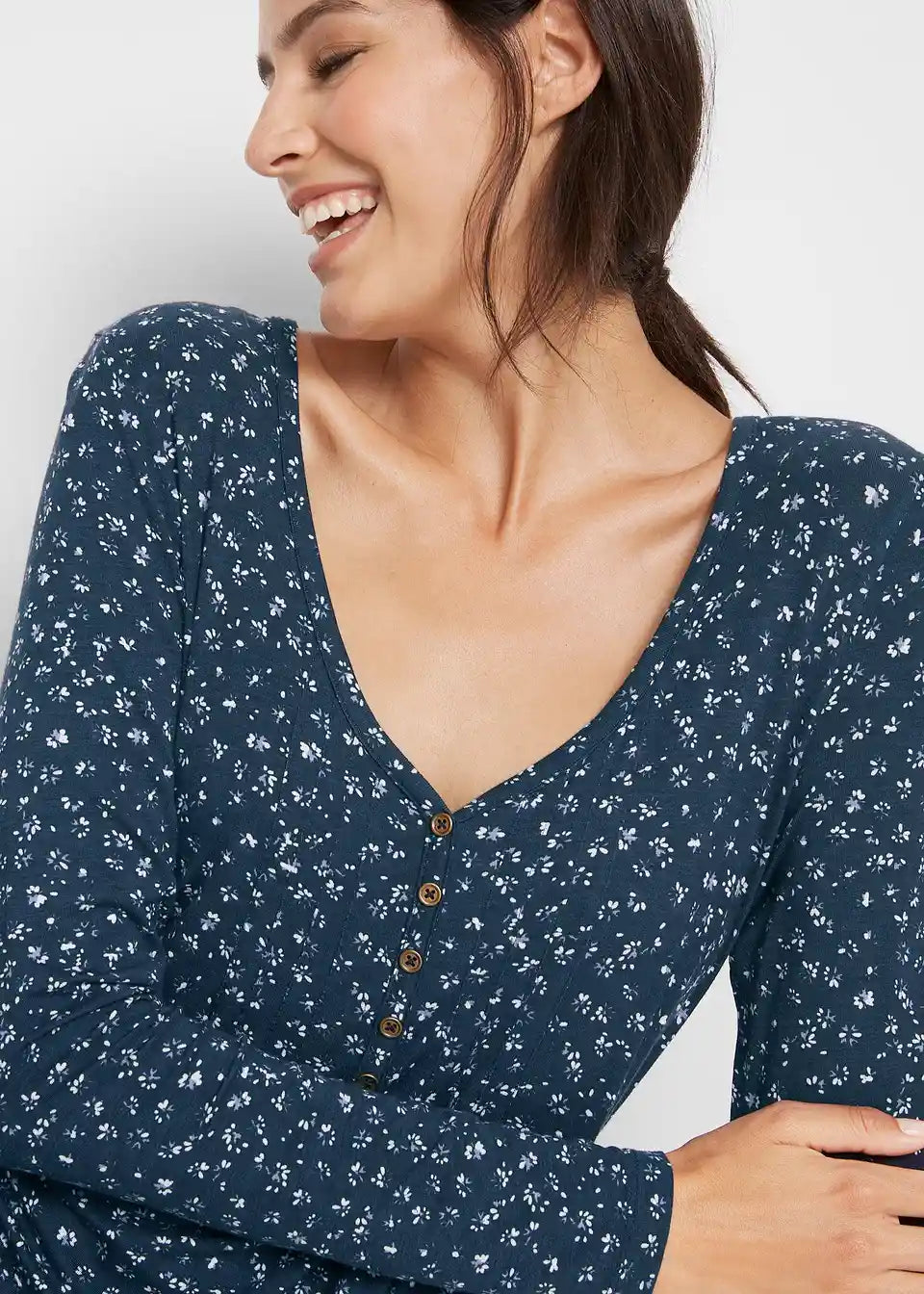 Očarljiva asimetrična bluza z dolgimi rokavi in gumbi
