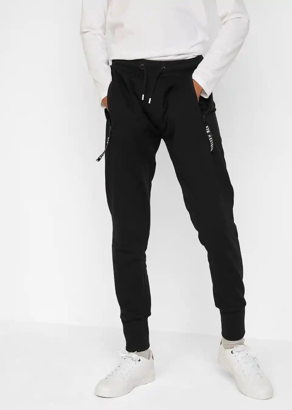 Te moderne športne hlače navdušujejo z opaznimi potiski na zaključkih hlačnic in z žepi z zadrgo. Elastičen pas z vrvico in mehki bombažni material zagotavljajo prijetno udobje pri nošenju. Te hlače so odlične za športne in prostočasne aktivnosti ali za doma na kavču.