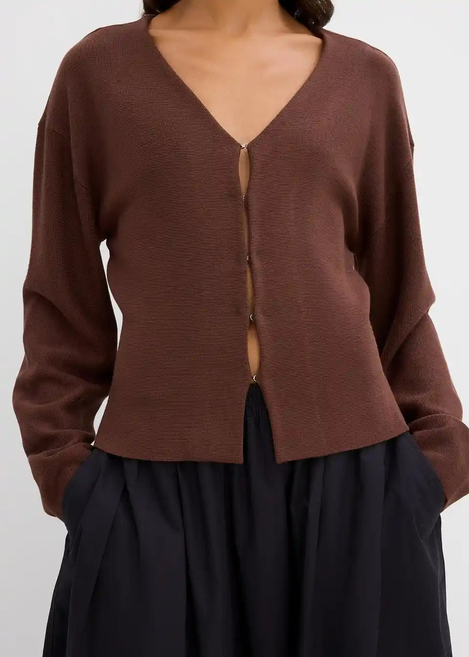 Jopica s voluminoznimi rokavi, V-izrezom in sprednjim zapenjanjem s kaveljčkom