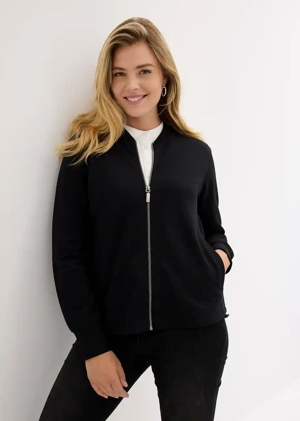 Jopa iz trikoja v stilu pilotske jakne z dolgimi rokavi