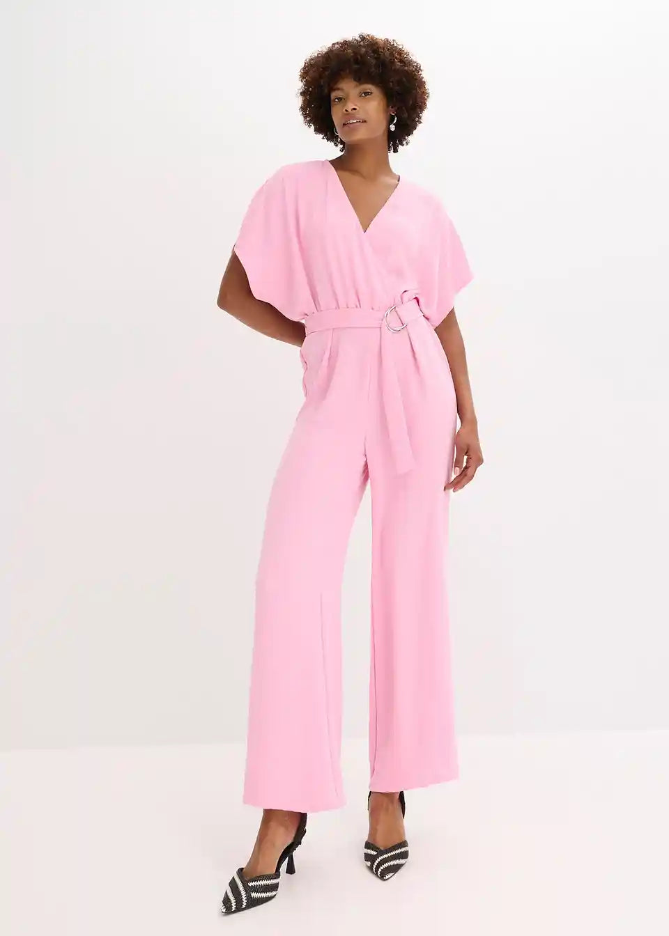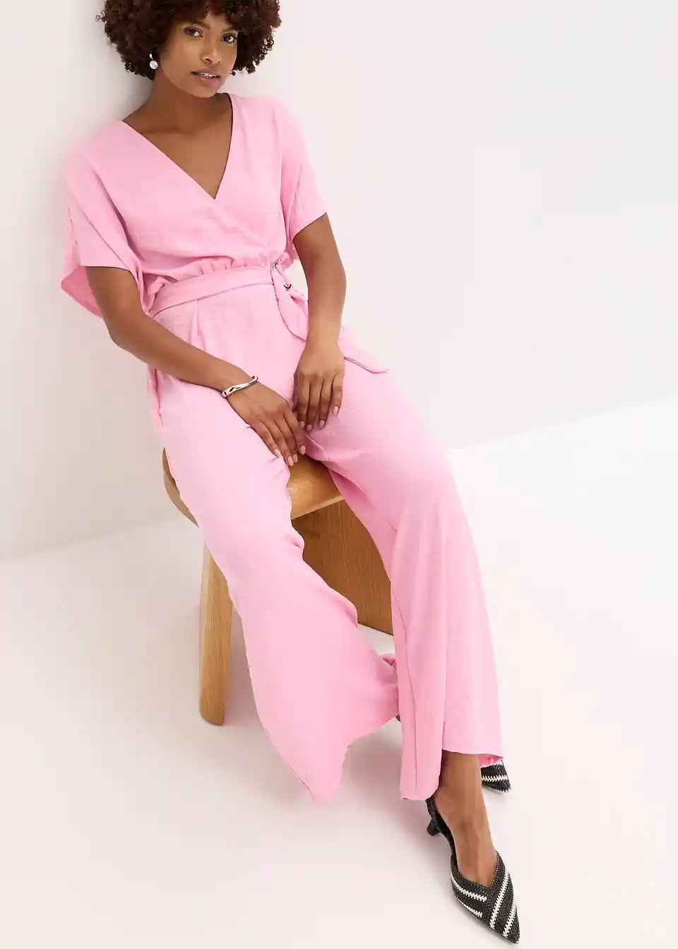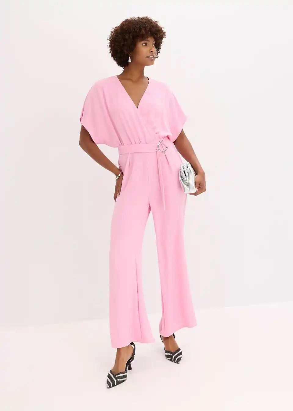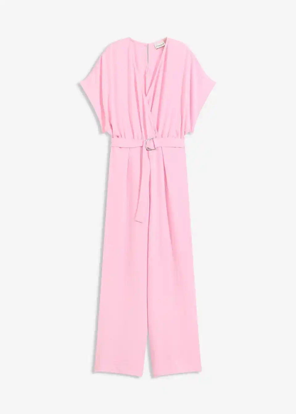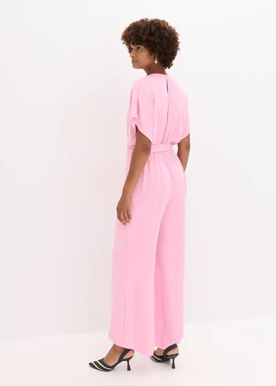 Ohlapno krojen jumpsuit z modnim vezalnim detajlom v pasu in gumbom na hrbtni strani izreza