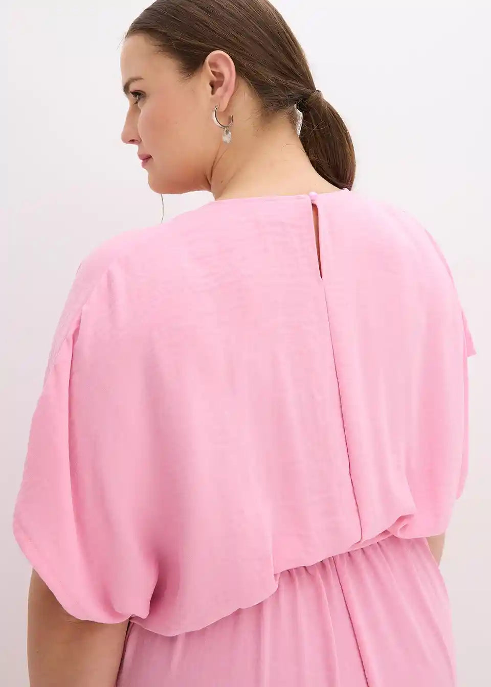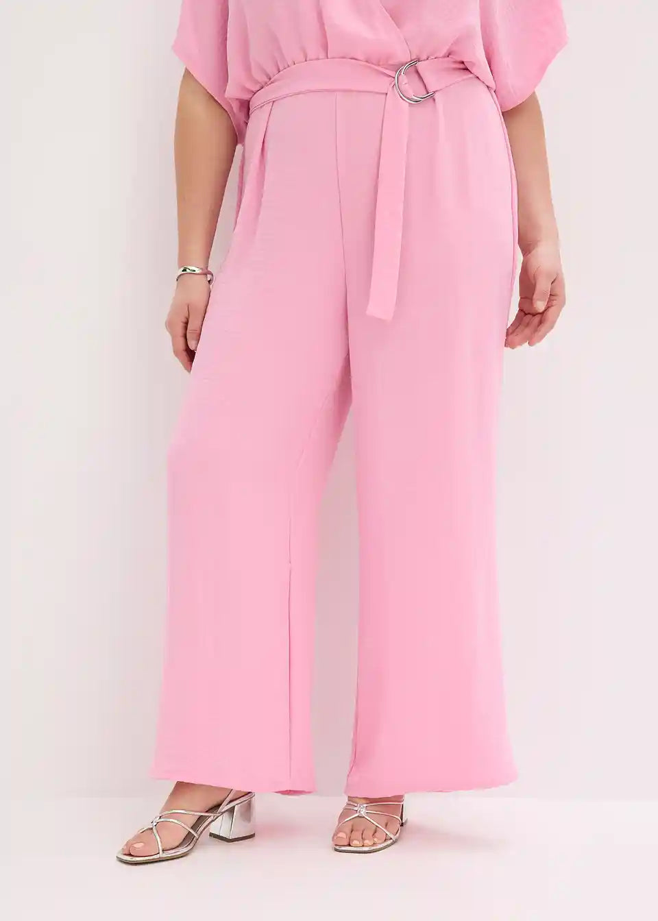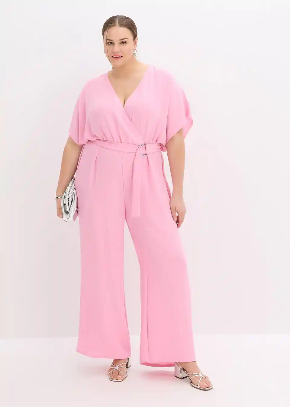 Ohlapno krojen jumpsuit z modnim detajlom zavezovanja v pasu in gumbom na zadnji strani izreza